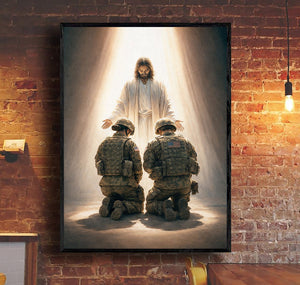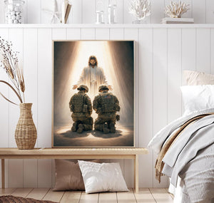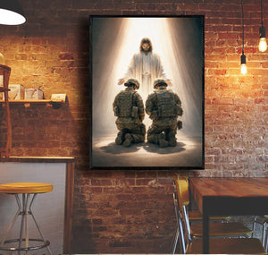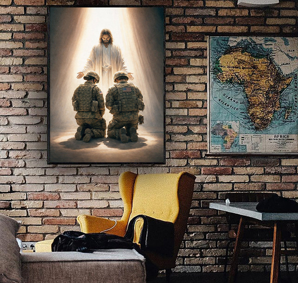 Jesus With Soldiers Wall Art Canvas Print, Christian Military Decor, Faith Based Canvas For Veteran, Patriotic Gift For Family Home Decor