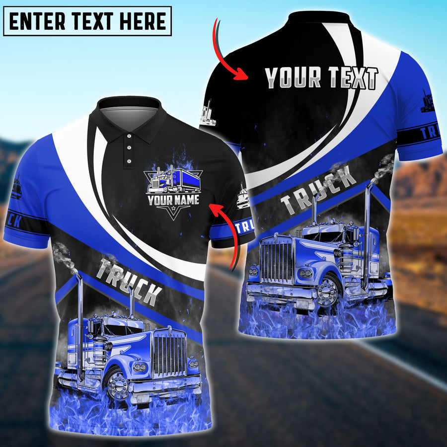 Personalized Name Lasfour Truck Flame Pattern Shirt, 3D Polo Shirt For Truck Driver 4 Colors, Gift For Truck