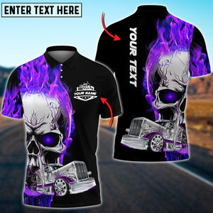 Personalized Name Lasfour Truck Flaming Skull Shirt, 3D Polo Shirt For Truck Driver, Gift For Him