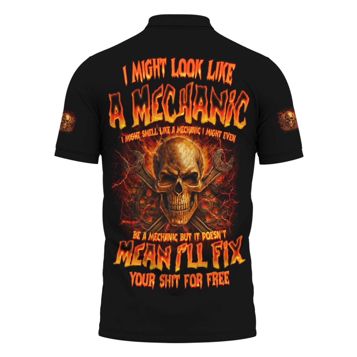 The print is awesome and the shirt fits just right. Perfect for any mechanic who loves bold style.