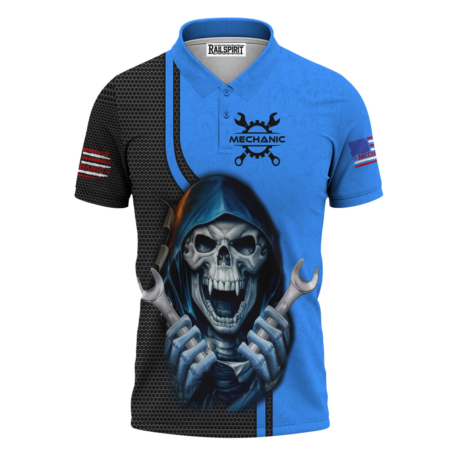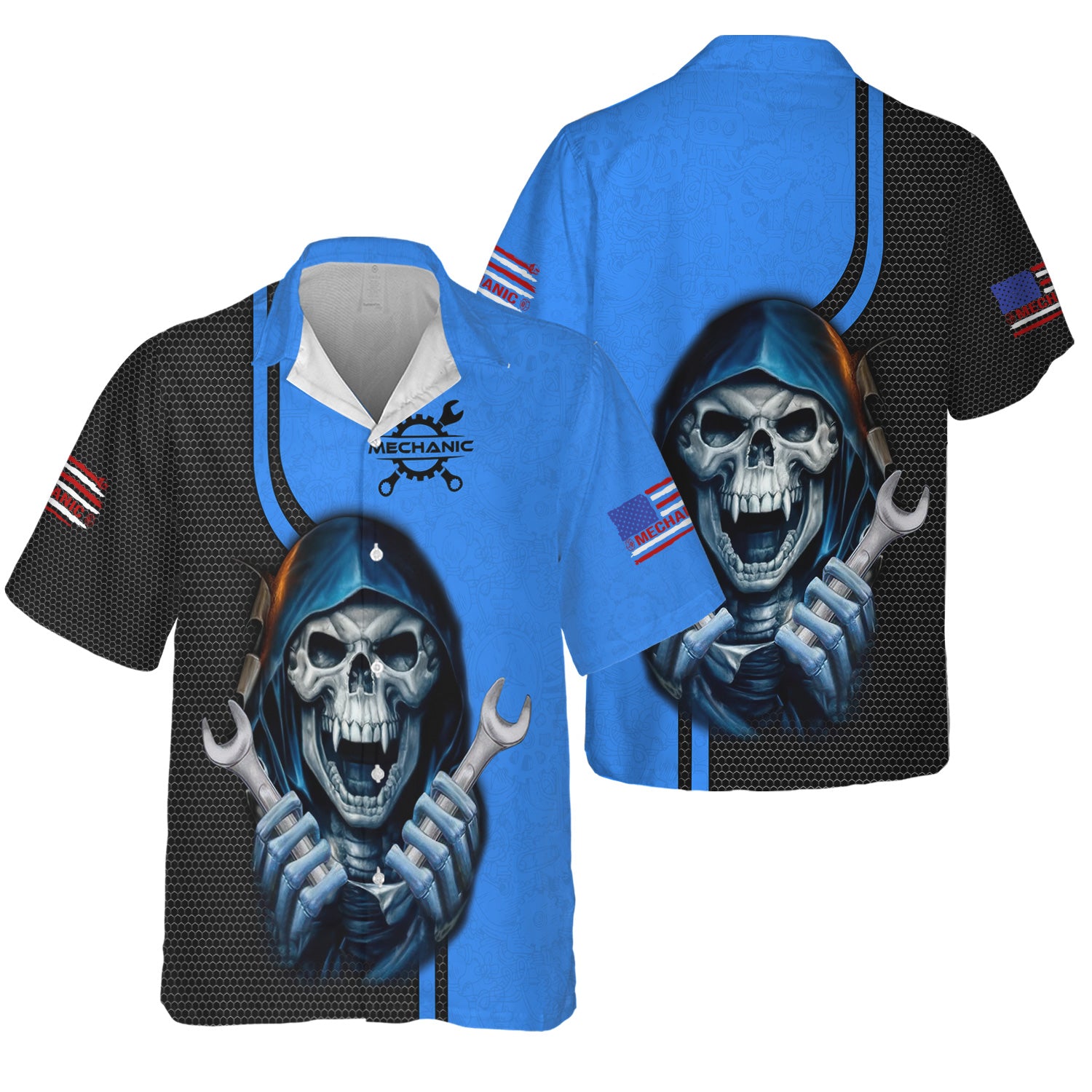 Mechanic Skull Shirt with Wrenches, Cool Automotive Apparel for Car Lovers, Gift for Mechanics & DIY Enthusiasts