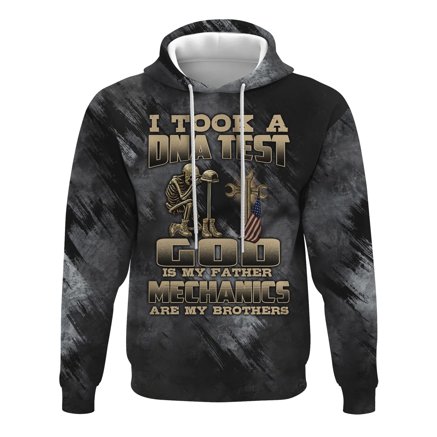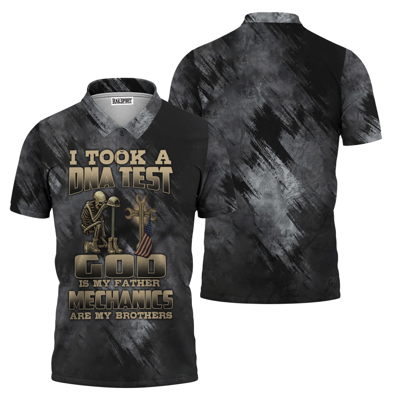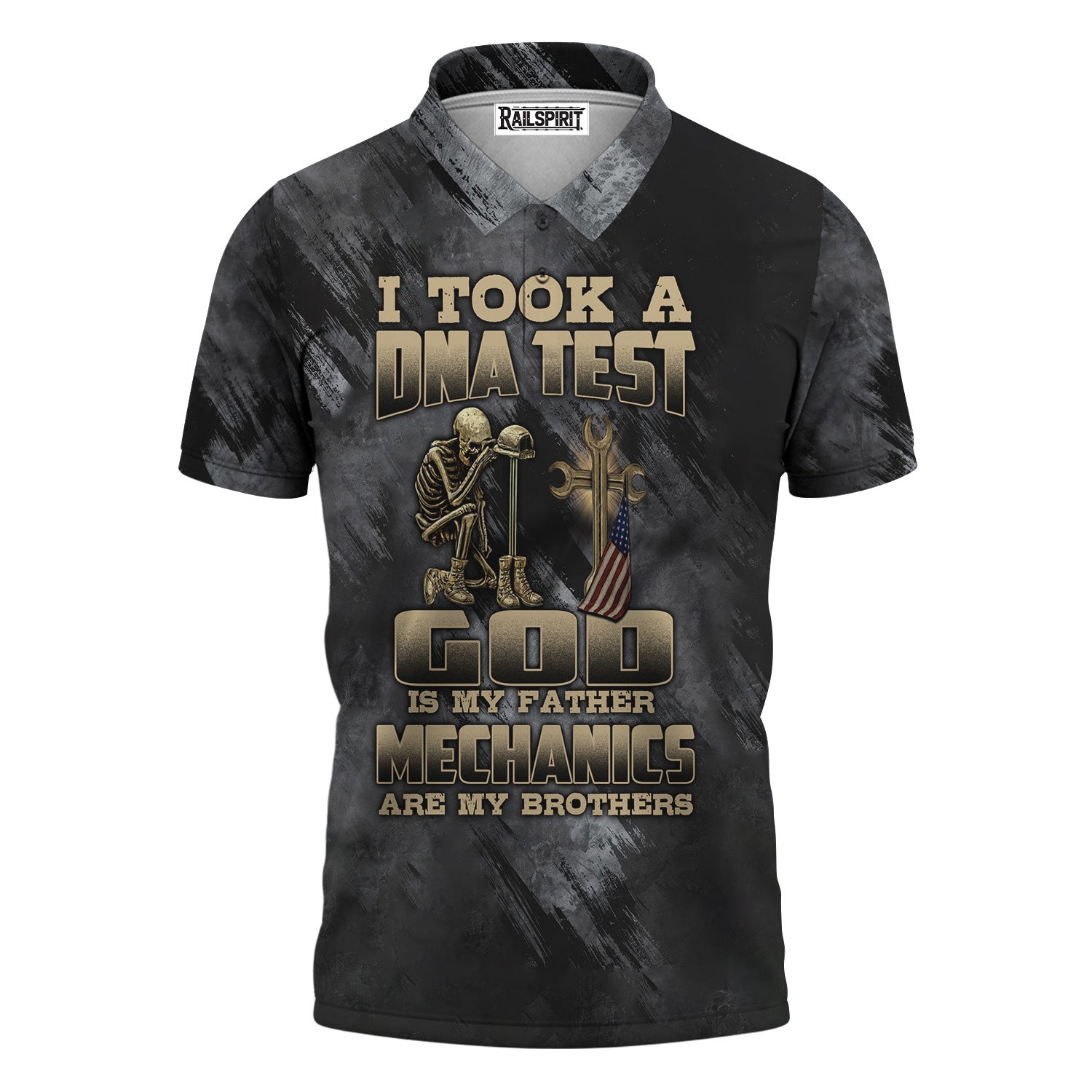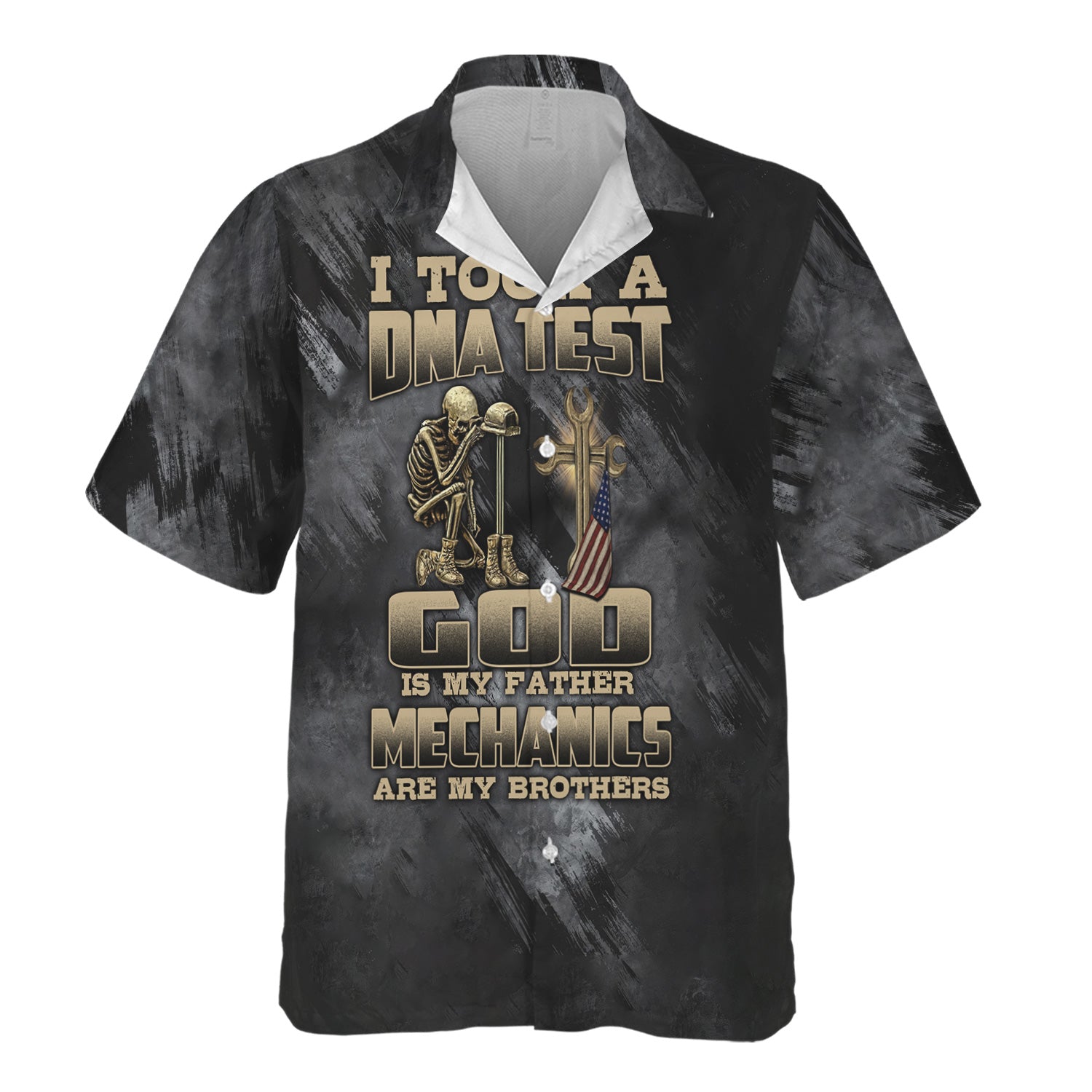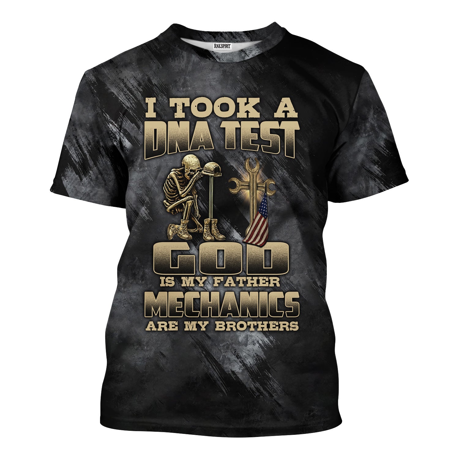 Mechanic T-Shirt, DNA Test Quote, God Father, Mechanics Brother, Funny Skeleton & Cross Design, Unique Gift for Mechanics & Fathers