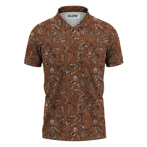Mechanic Tool Pattern Brown T Shirt Mechanic Orange Polo Shirt Hoodie All Over Print