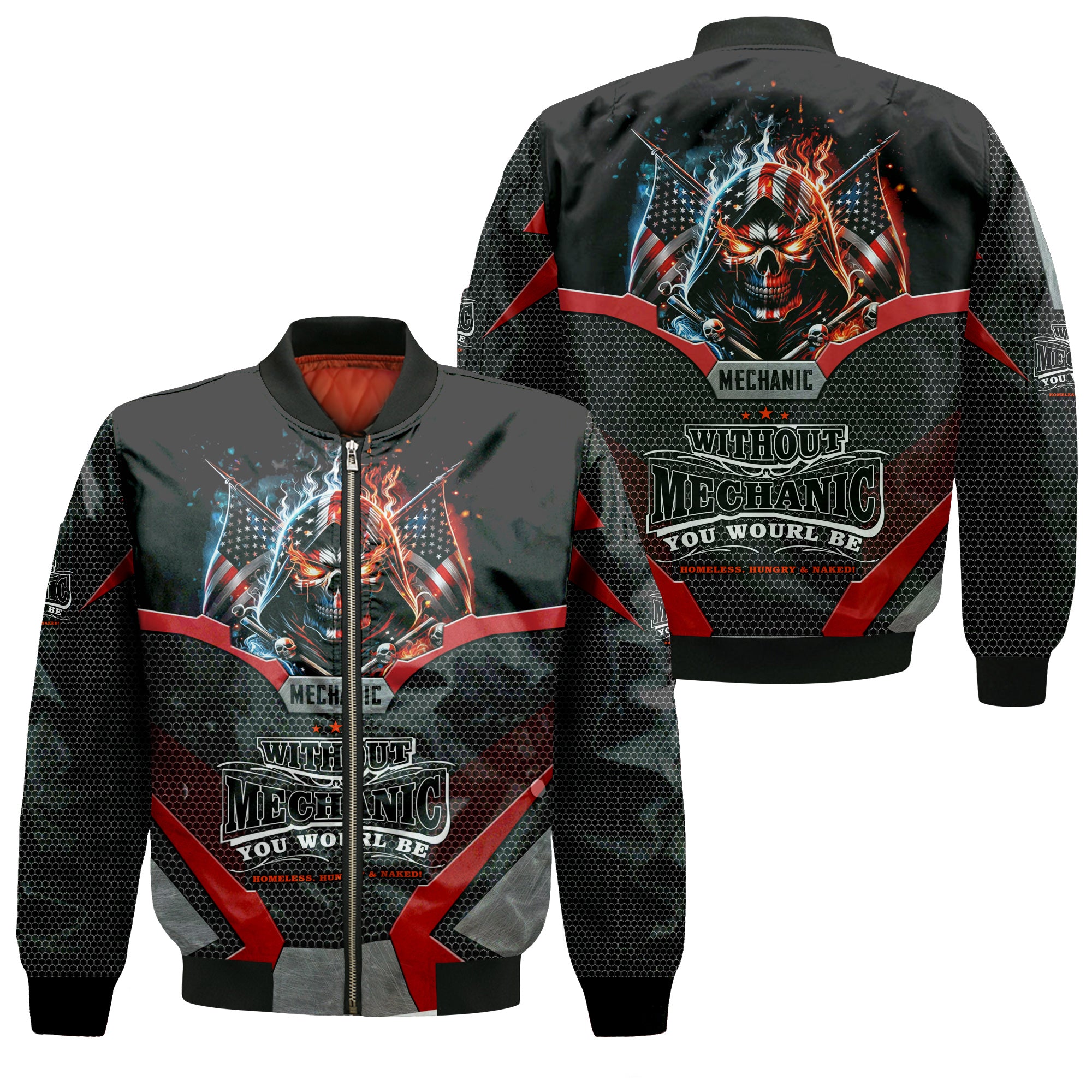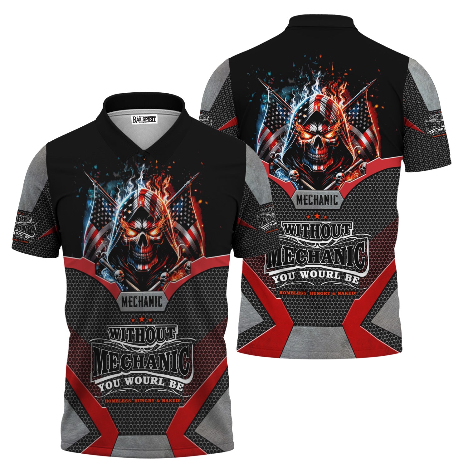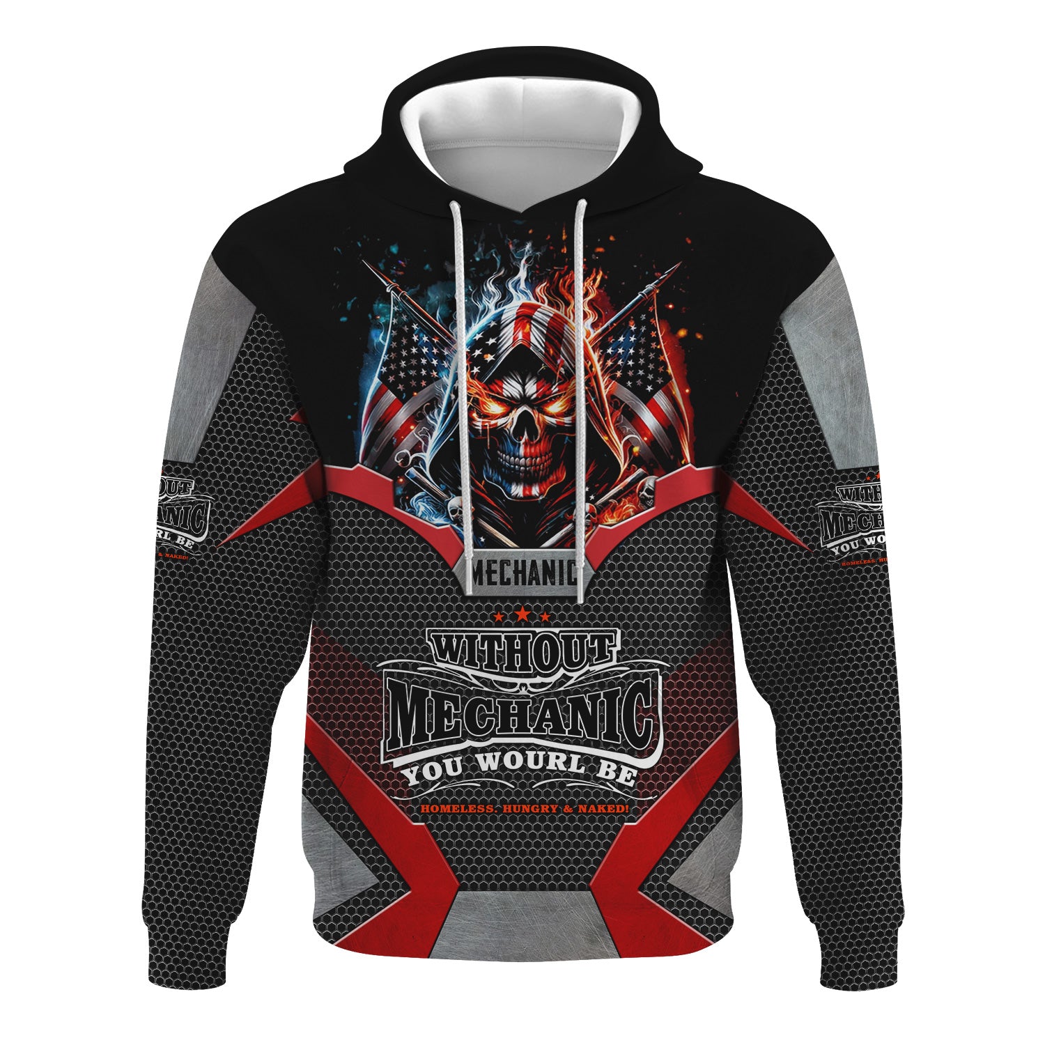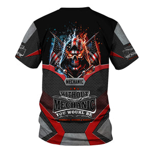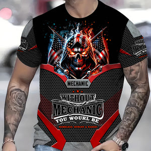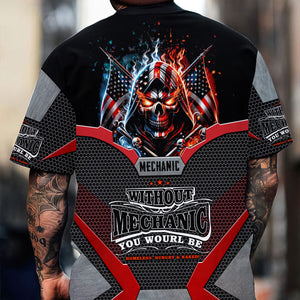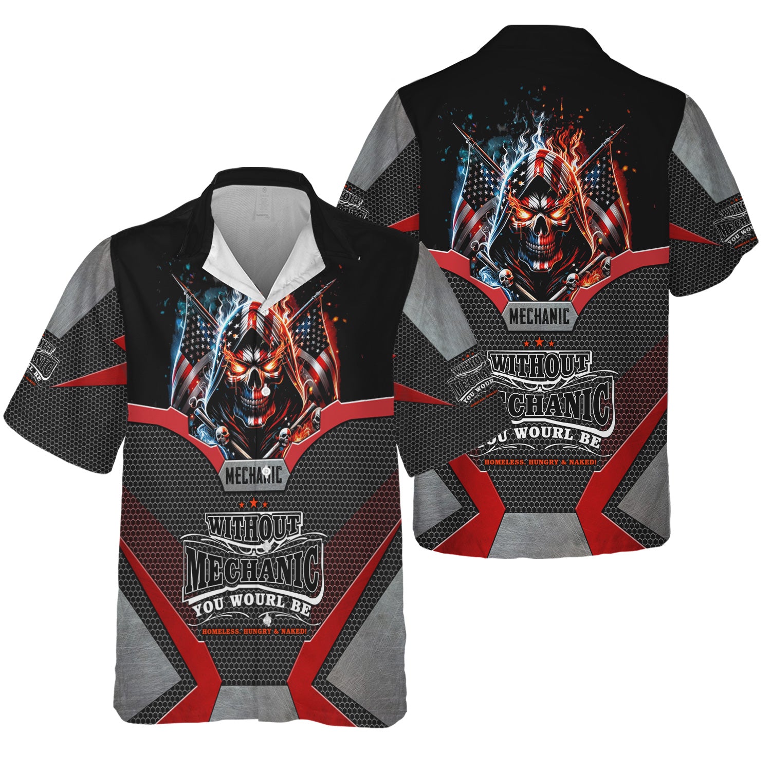Mechanic Without Mechanic You Wourl Be Shirt, American Flag Design, Perfect Gift for Mechanics, Unique Skull Graphic Tee, Homeless Hungry Naked