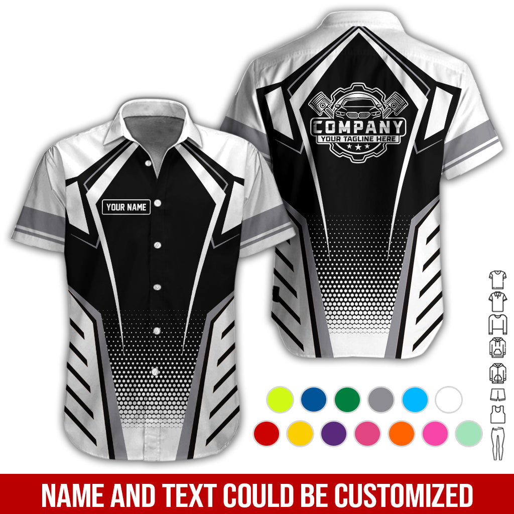 Mechanic Work Shirt for Men and Women, Personalized Garage Uniform in Classic White, Perfect for Birthday or Husband, or Boyfriend