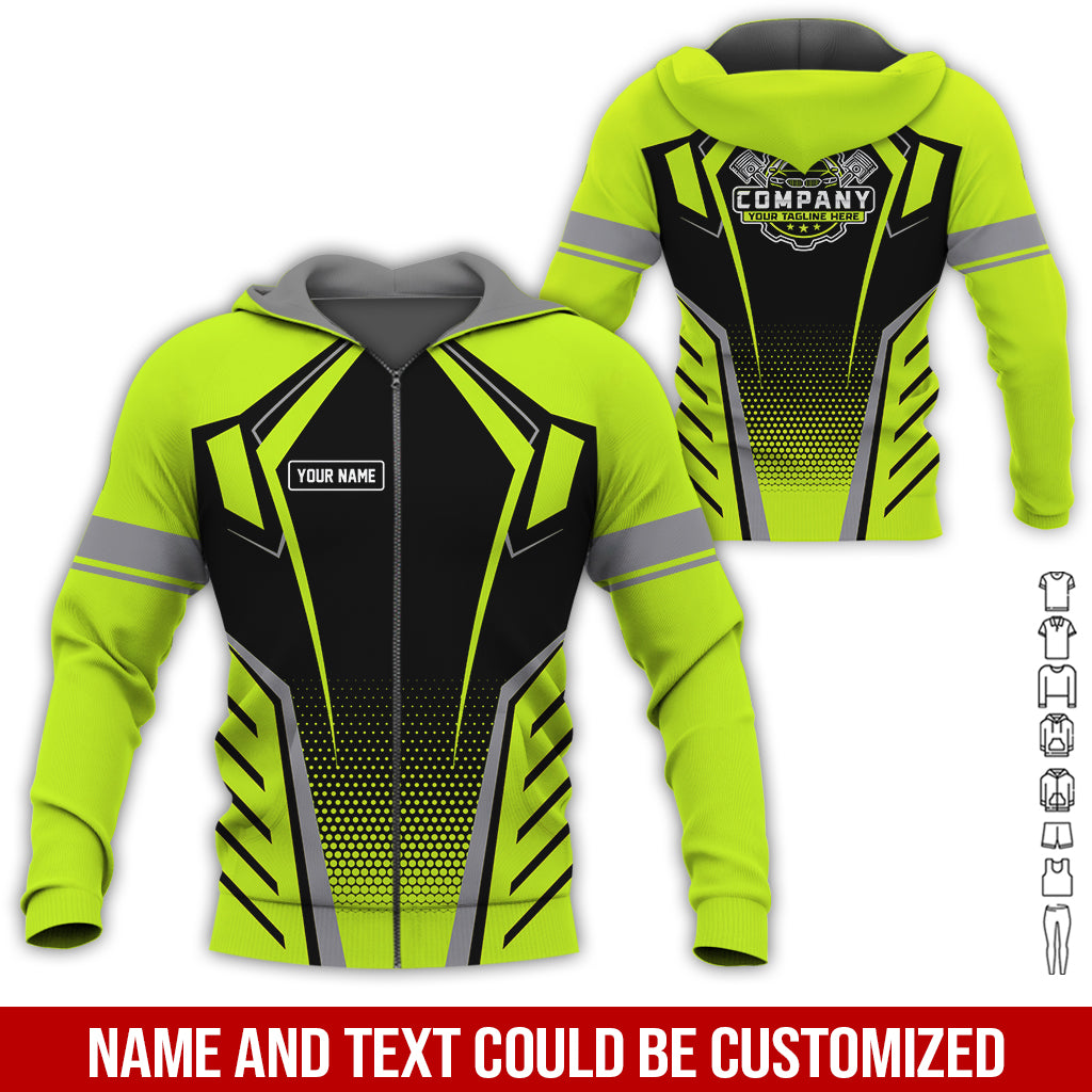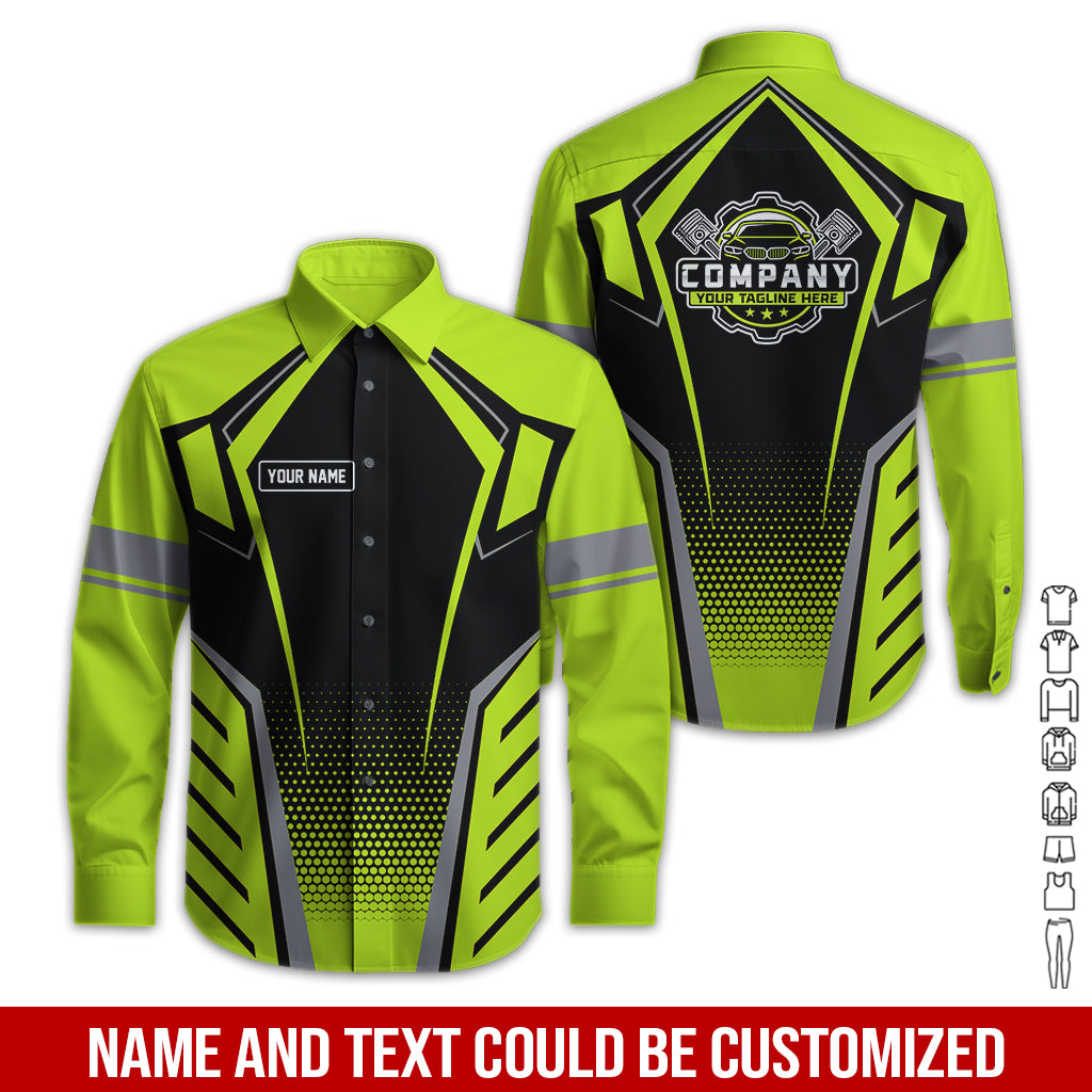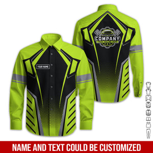 Mechanic Work Shirt for Men and Women, Personalized Garage Uniform in Classic Yellow Green, Perfect for Birthday or Husband, or Boyfriend