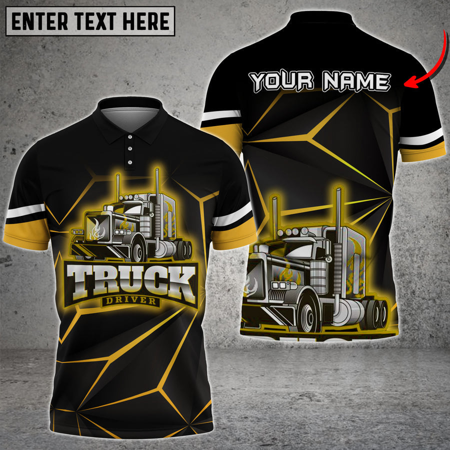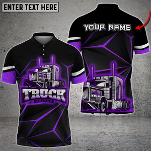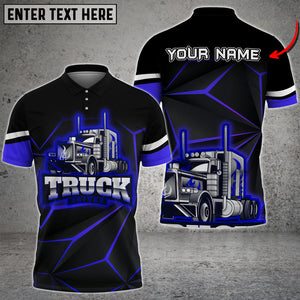Personalized Name Truck Neon Light Pattern Shirt, 3D Polo Shirt For Truck Driver, Gift For Men & Women
