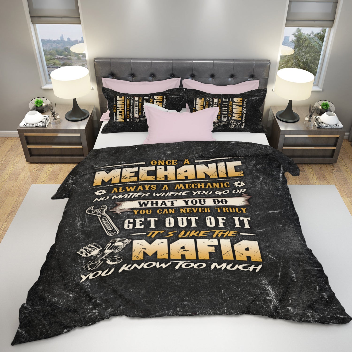 Once a Mechanic Always a Mechanic Bedding Set, Funny Mechanic Apparel, Car Repair Mafia Bedding Set for Mechanics