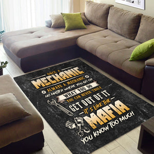 Once a Mechanic Always a Mechanic Rug, Funny Mechanic Home Decor, Car Repair Mafia Tee for Mechanics, Gift for Auto Technicians