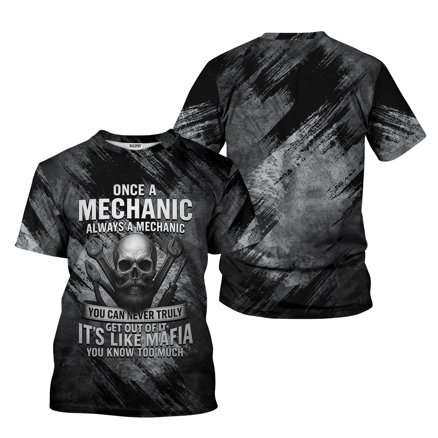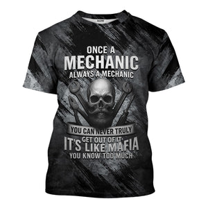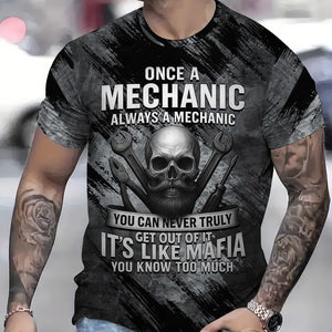 Once A Mechanic Always A Mechanic Shirt Funny Printed Vintage Mechanic Unisex T Shirt Skull and Mechanic Tools Design