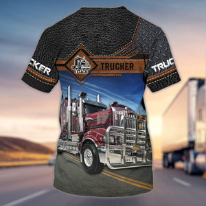 Personalized 3D Truck On Shirt, Leather Pattern Trucker Uniform Shirts, Gifts For Truck Drivers