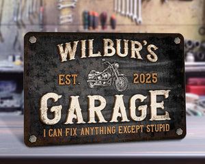 Personalized Garage Sign For Fathers Day Gift For Dad, Custom I Can Fix Anything Except Stupid Garage Sign