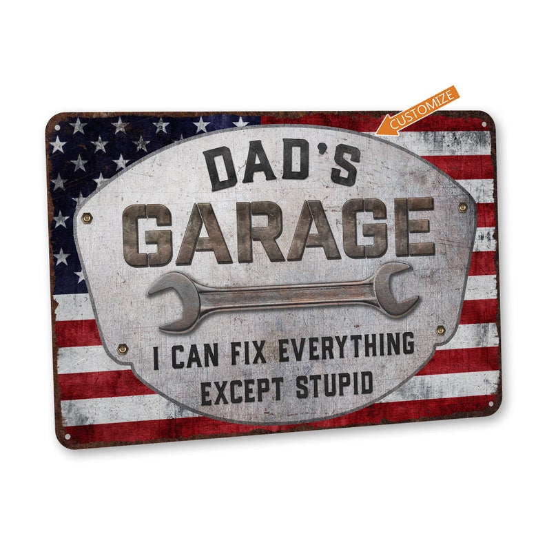 Personalized Garage Sign, Garage Decor, Workshop Sign, Custom Garage Sign, Fathers Day Gift, Gifts for Dad, Gift for Him, Custom Metal Sign