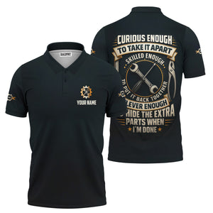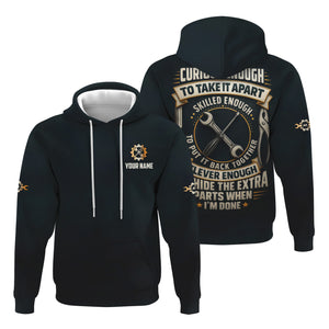 Personalized Mechanic Shirt, Clever Enough To Hide The Extra Parts When I'm Done, Funny Quote Design, Gift For Men