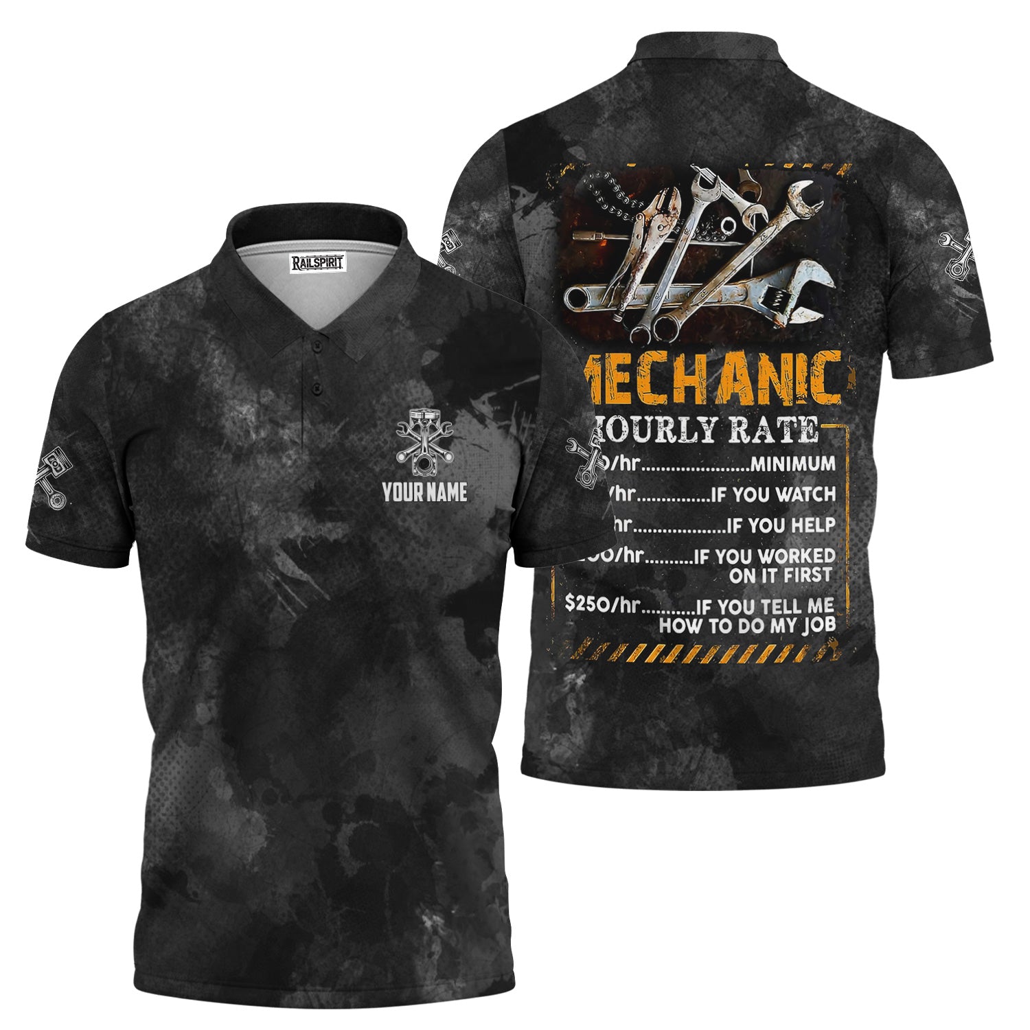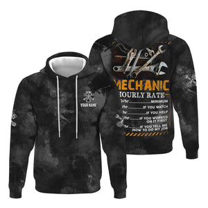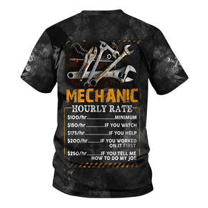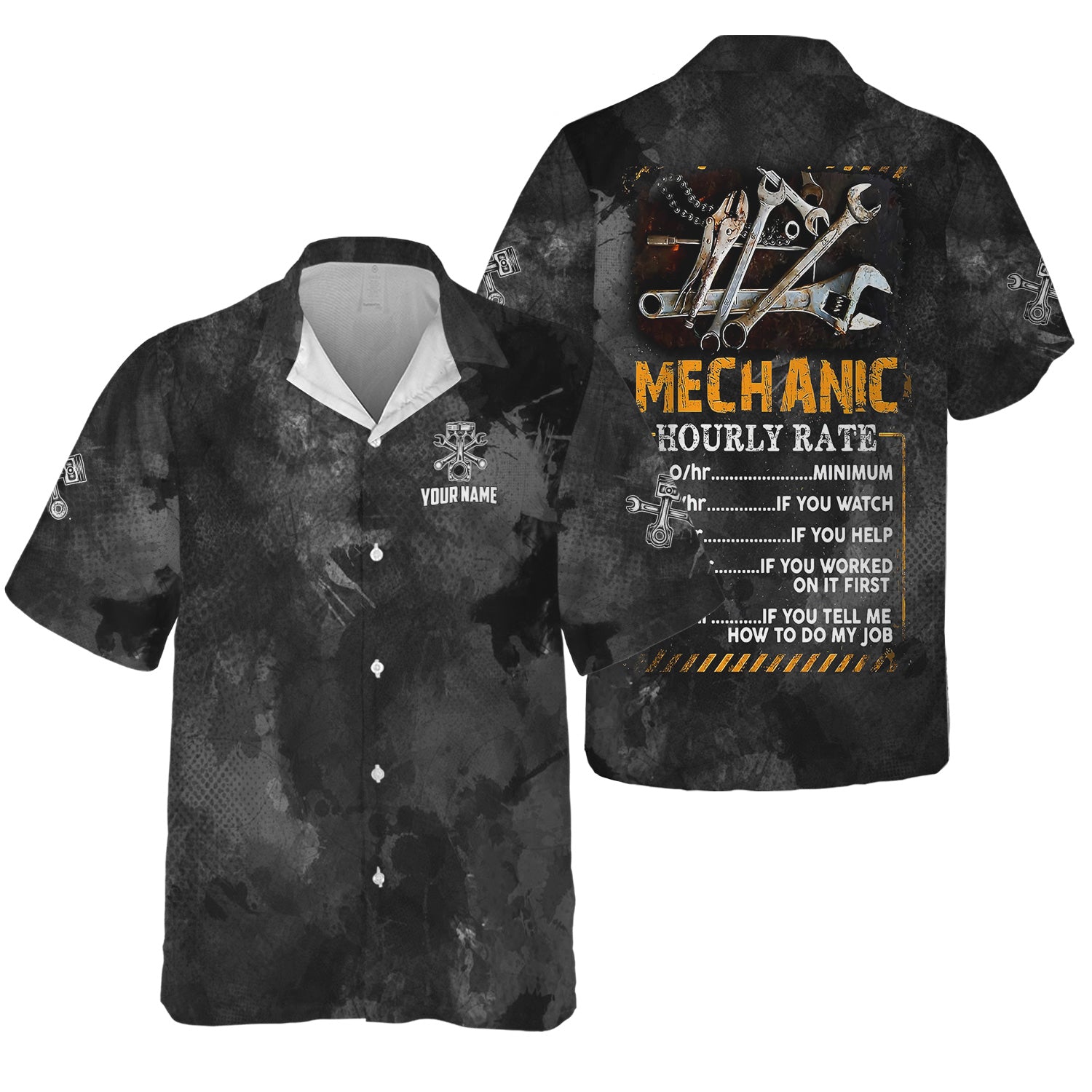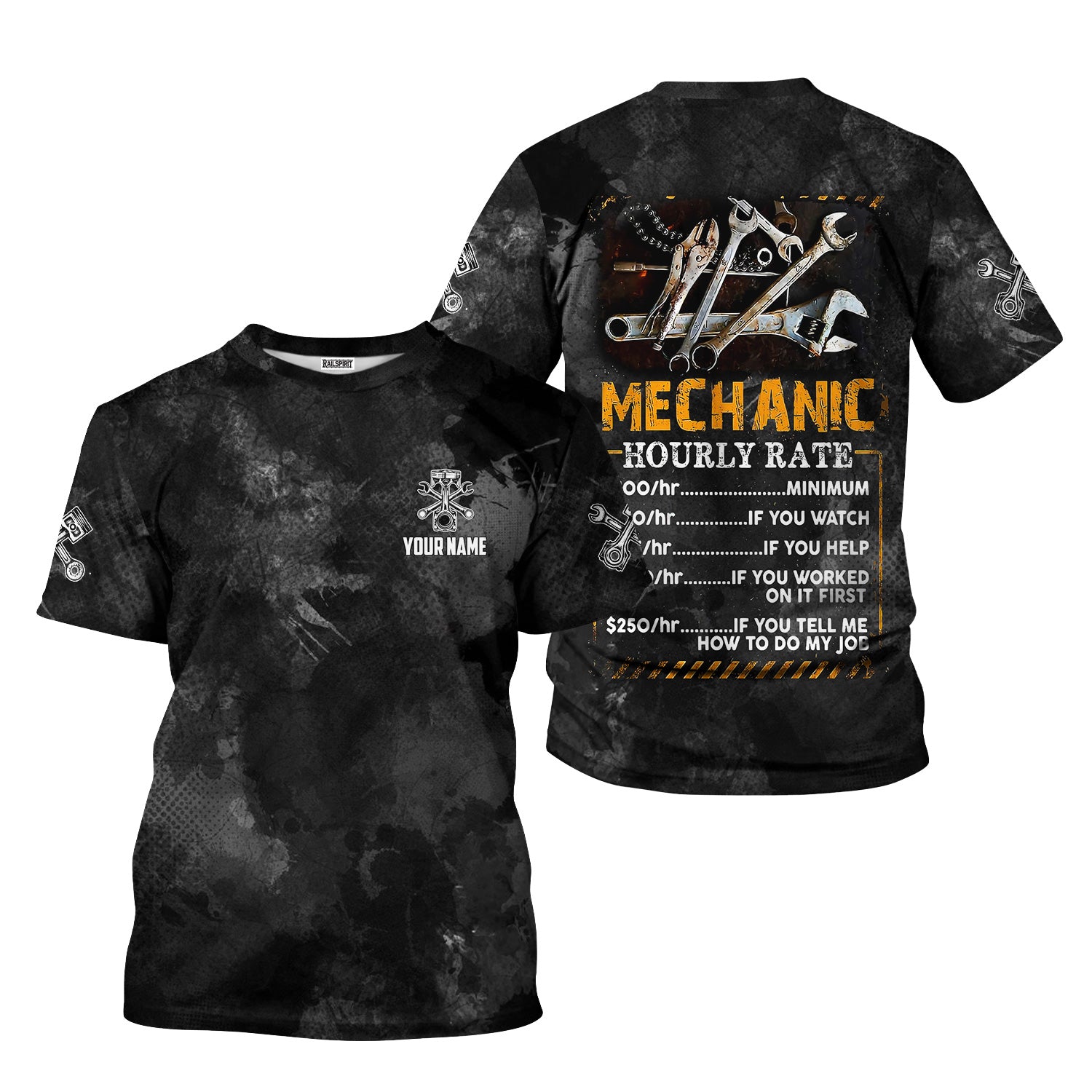 Personalized Mechanic T Shirt Custom Name Hourly Rate Funny Auto Repair Garage Workwear Tee Car Repair Wrench Shirt Gift For Men Dad
