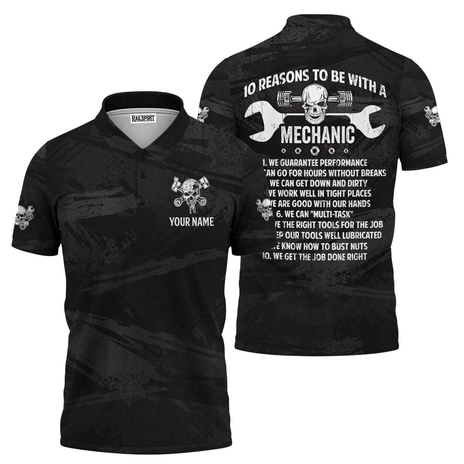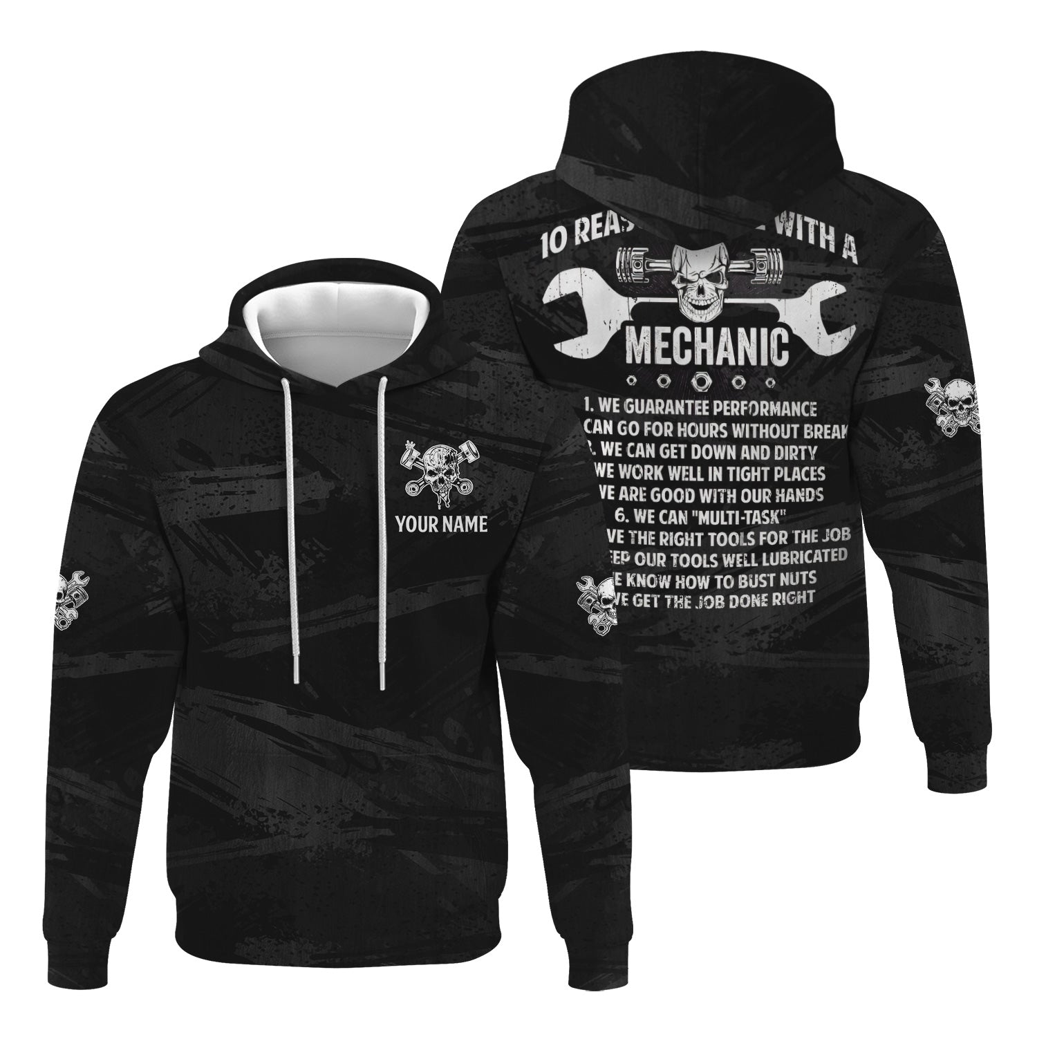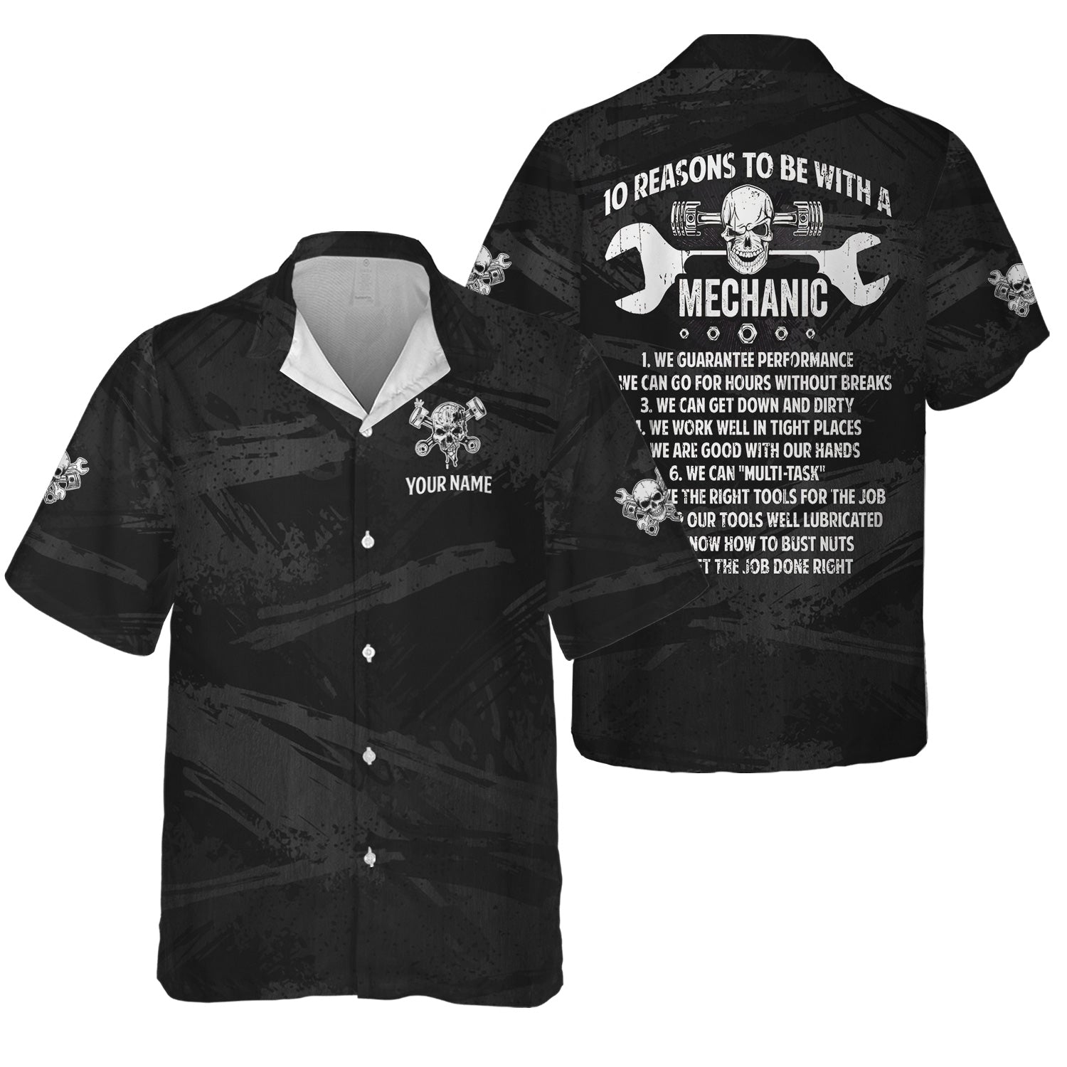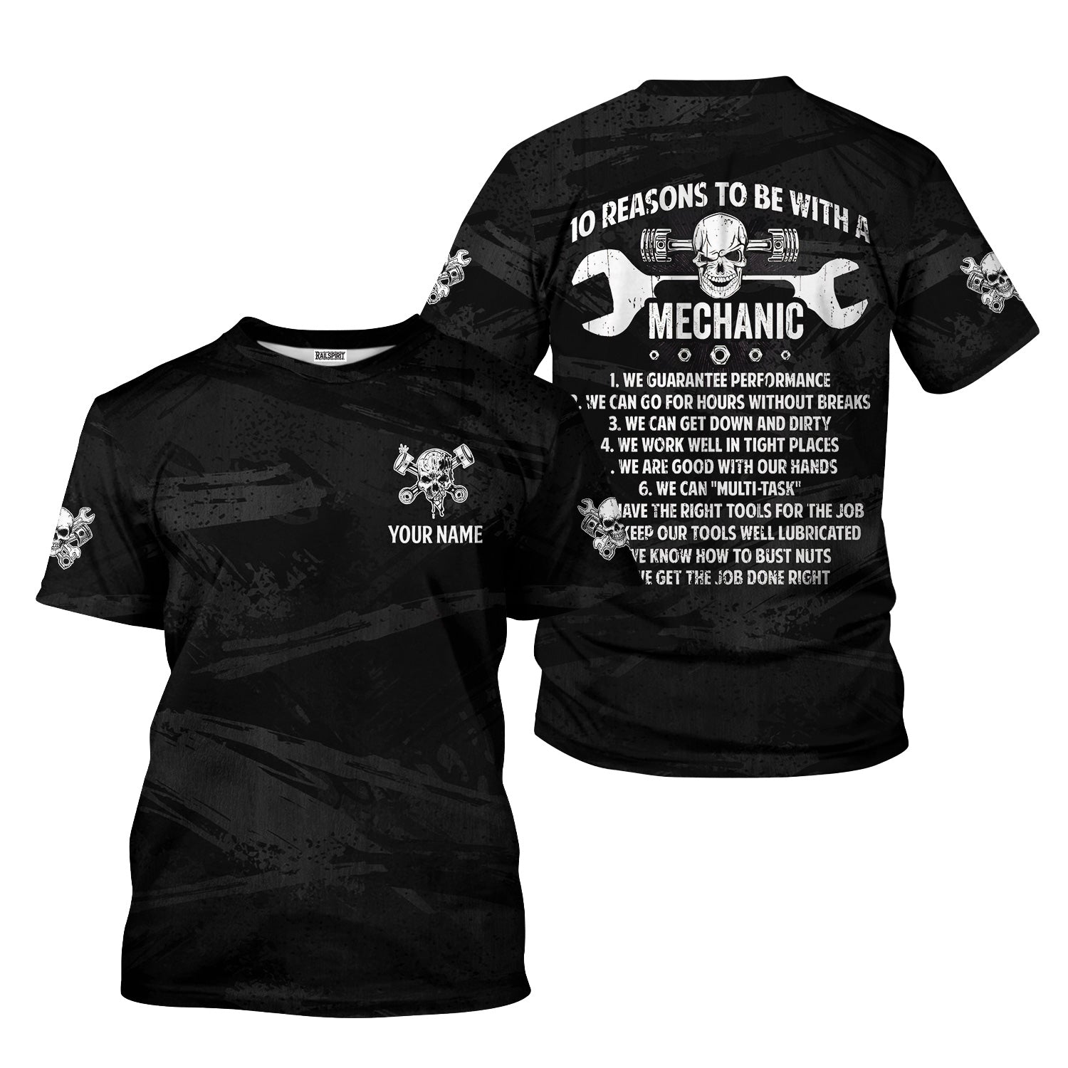 Custom Name Mechanic Shirt 10 Reasons To Be With A Mechanic Skull Wrench Auto Repair Garage Workwear Tee Car Repair Shirt Gift For Men Dad