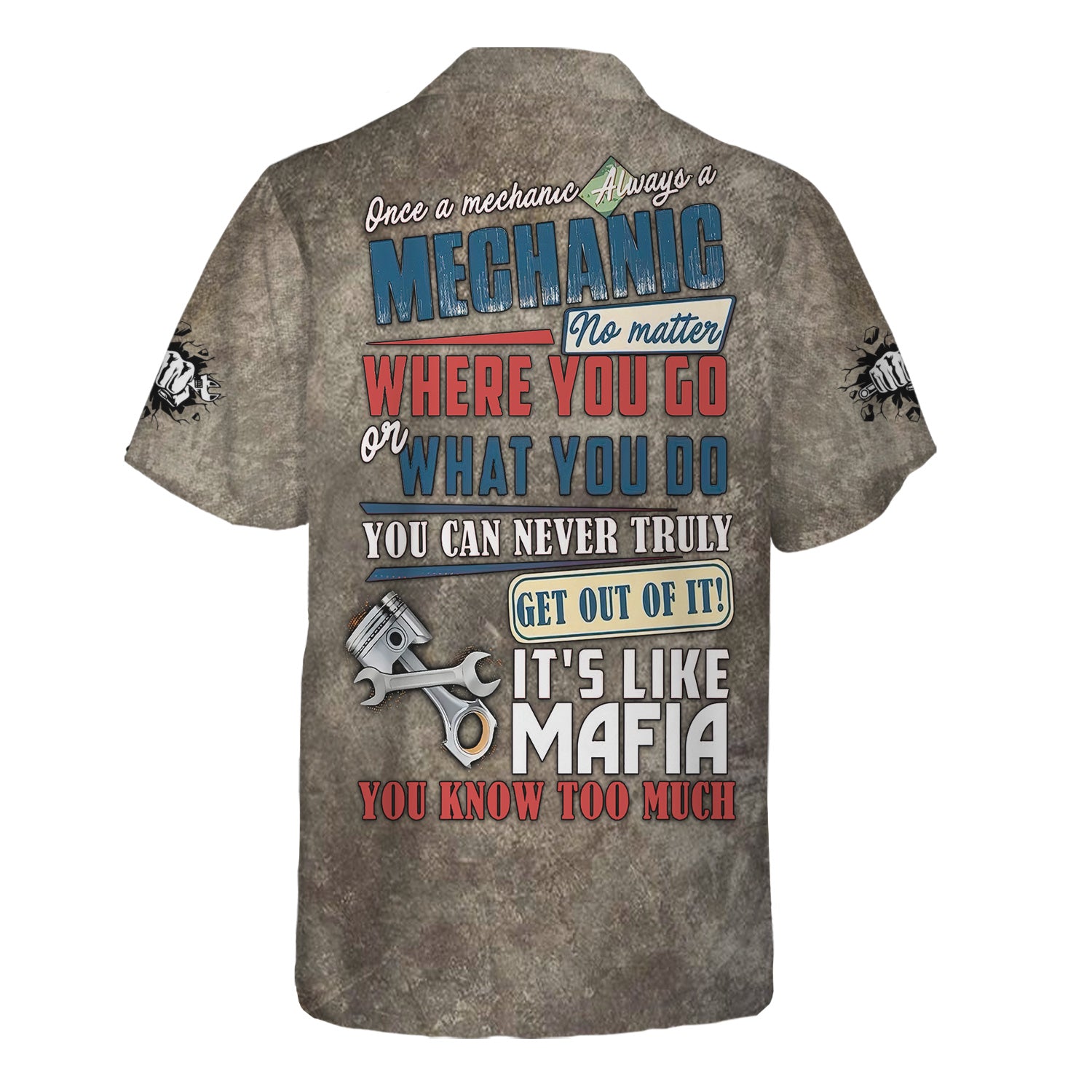 The print is awesome and the shirt fits just right. Perfect for any mechanic who loves bold style.