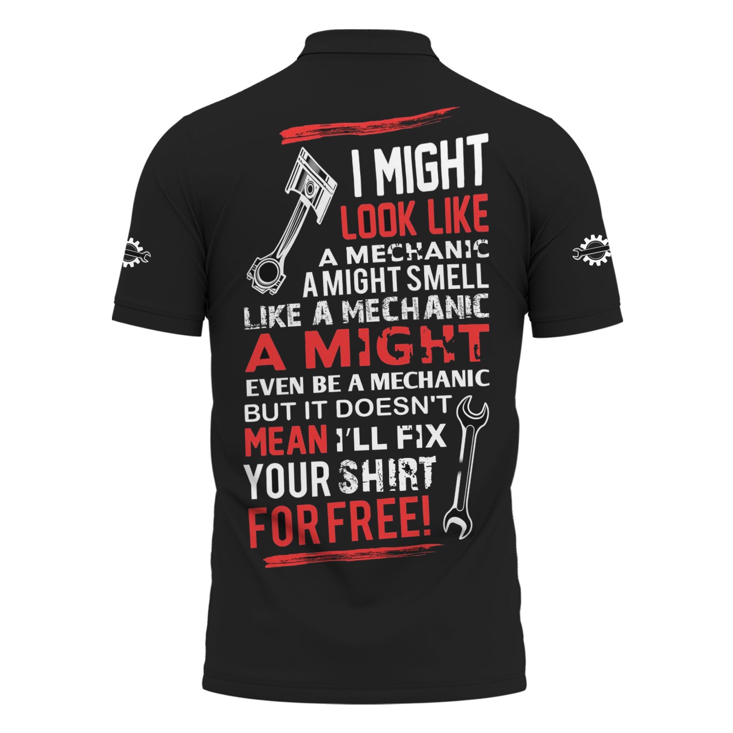 The print is awesome and the shirt fits just right. Perfect for any mechanic who loves bold style.