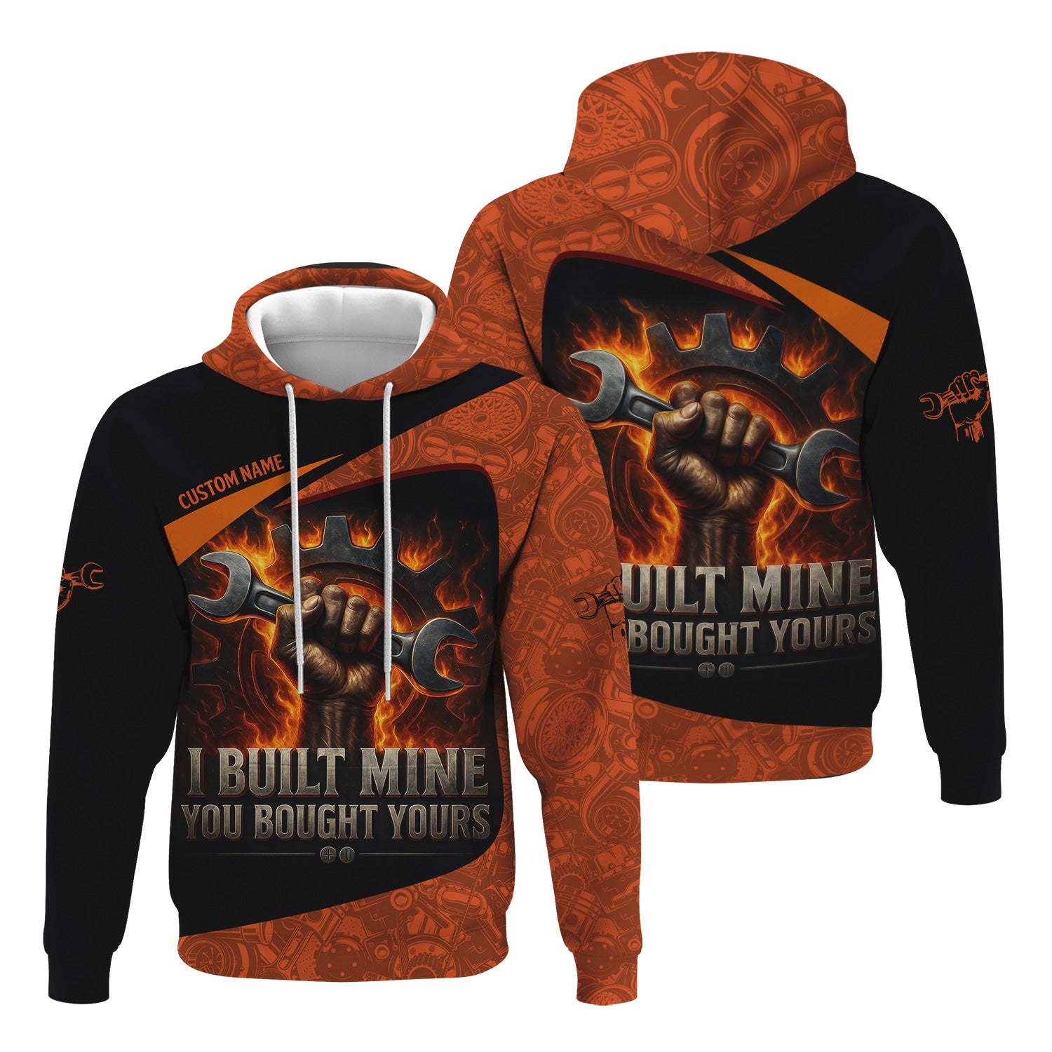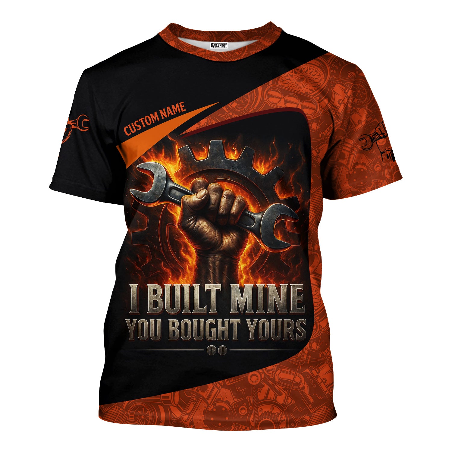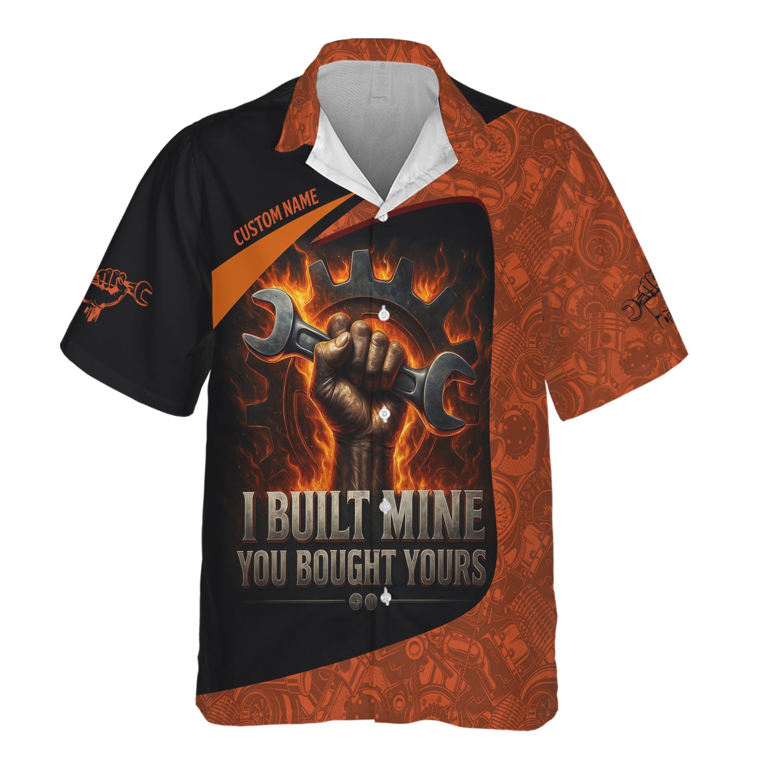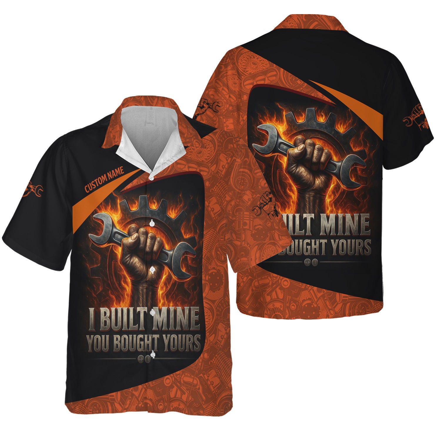 Personalized Mechanic Shirt, I Built Mine You Bought Yours, Flame Design, Gift For Men