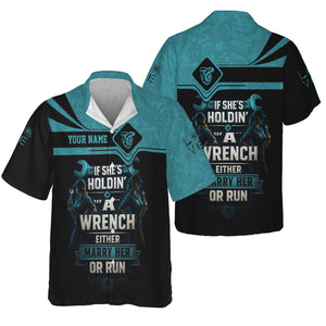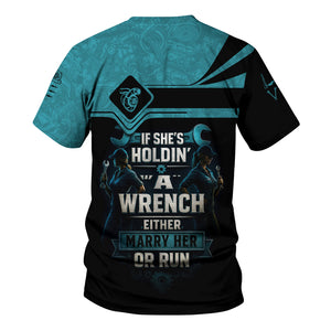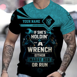 Personalized Mechanic Shirt, If She Holding A Wrench Either Marry Her Or Run, Gift For Men