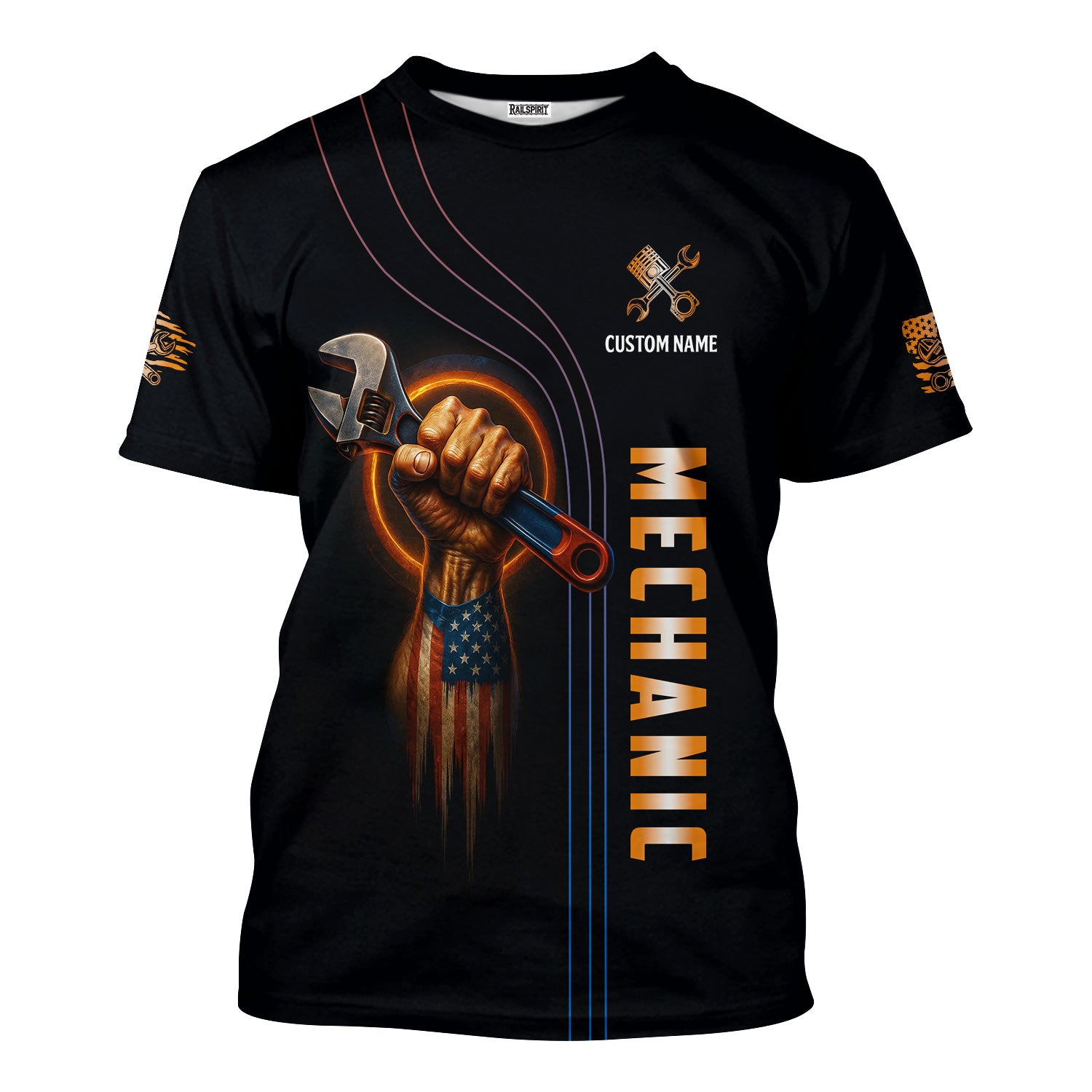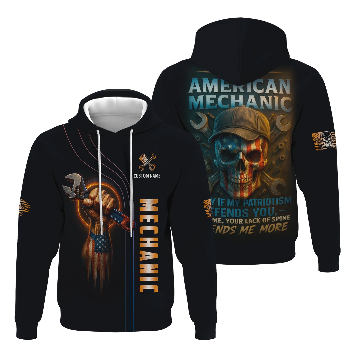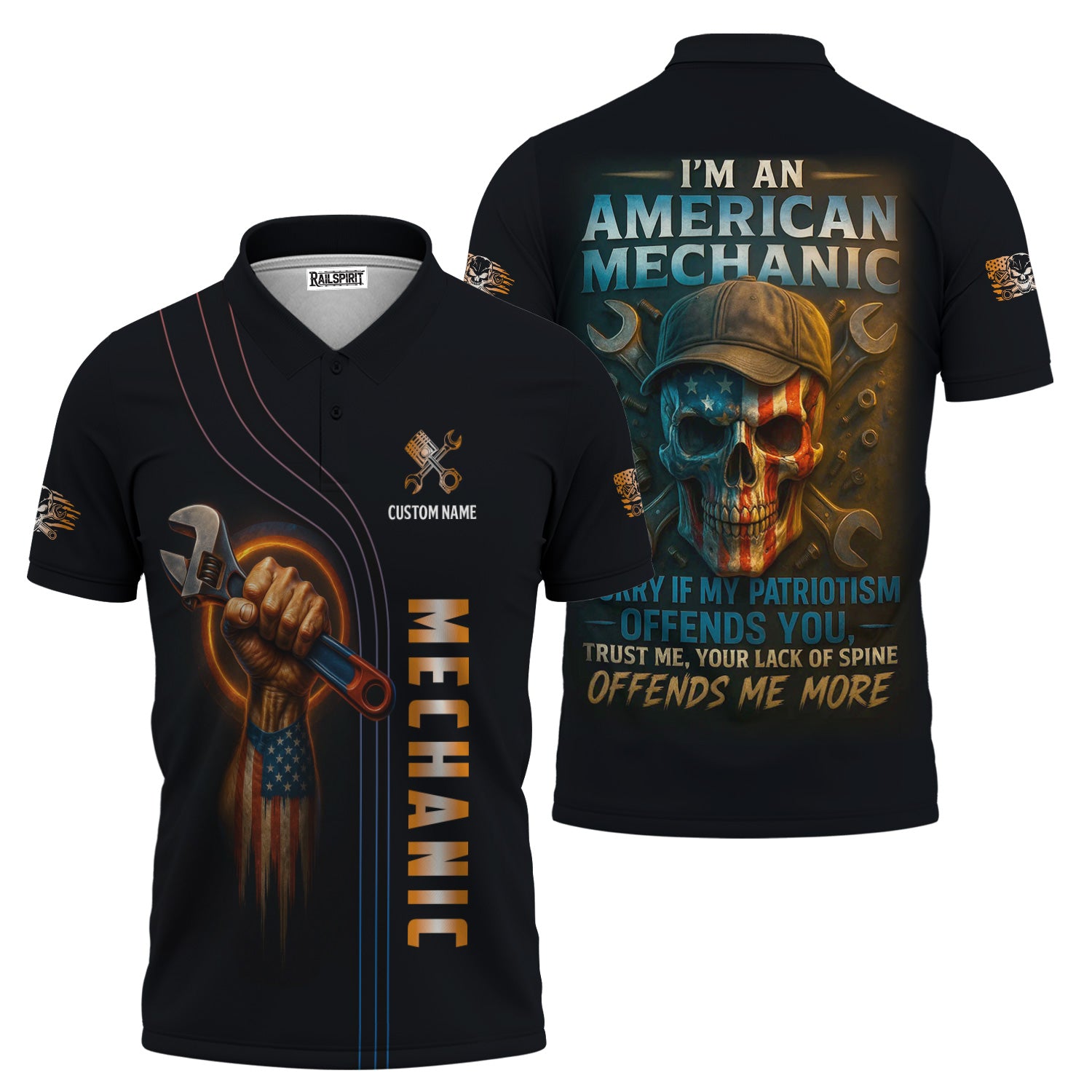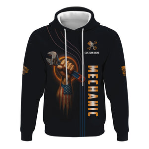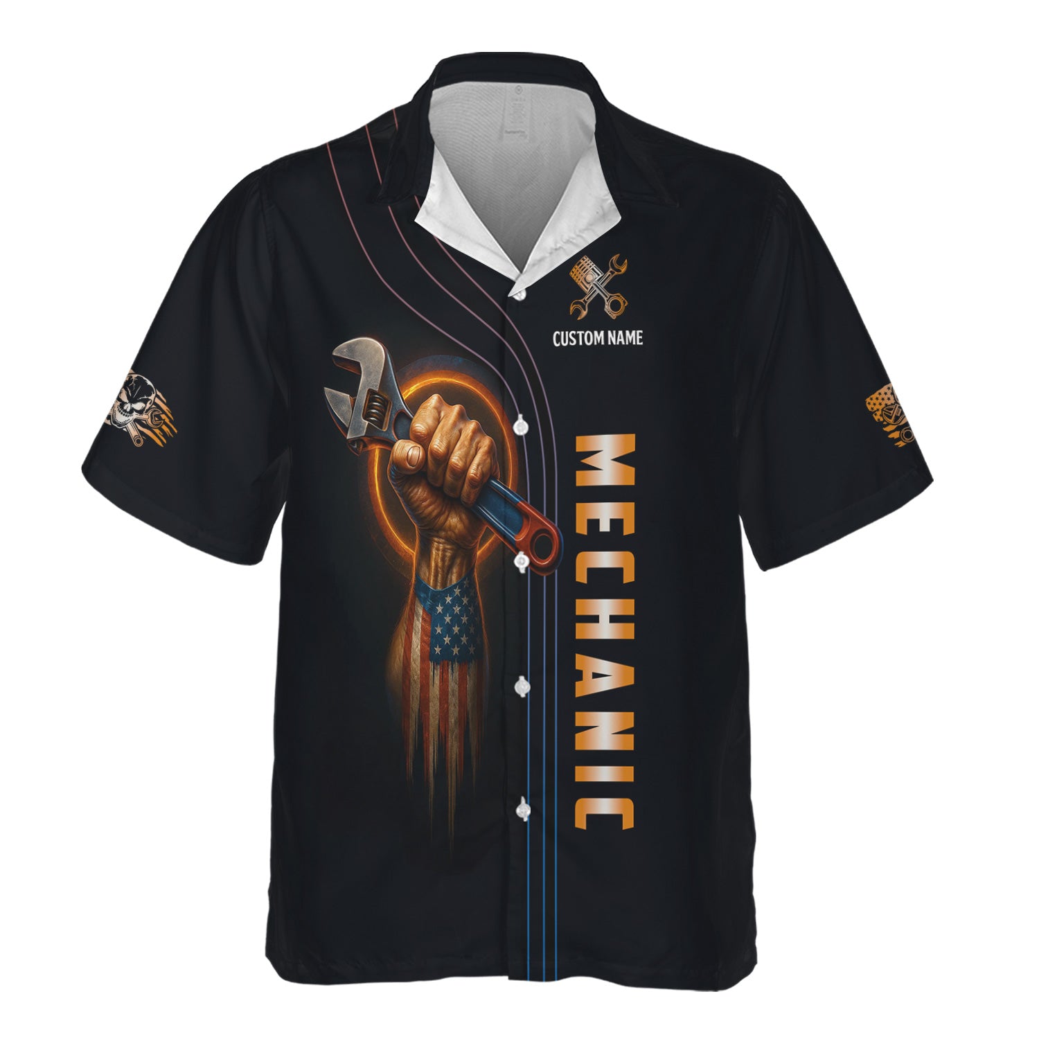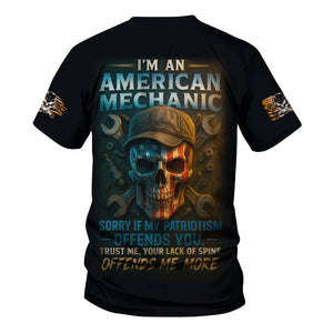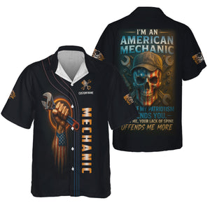 Personalized Mechanic Shirt, I'm An American Mechanic, USA Flag Skull Design, Gift For Men