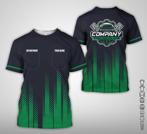 Personalized Mechanic Shirt in Green, 3D Printed Pocket Mechanic Shirt, Custom Name Work Shirt for Car Repair Technicians, Great Gift for Men