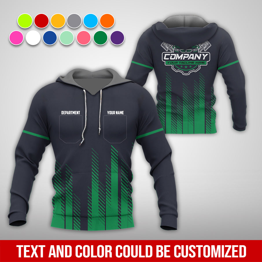 Personalized Mechanic Shirt in Green, 3D Printed Mechanic Shirt, Custom Name Work Shirt for Car Repair Technicians, Great Gift for Men