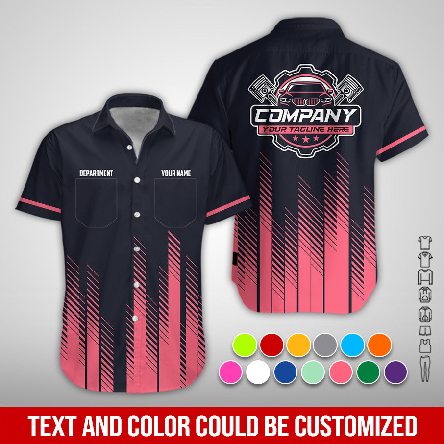 Personalized Mechanic Shirt in Neon Pink, 3D Printed Mechanic Shirt, Custom Name Work Shirt for Car Repair Technicians, Great Gift for Men