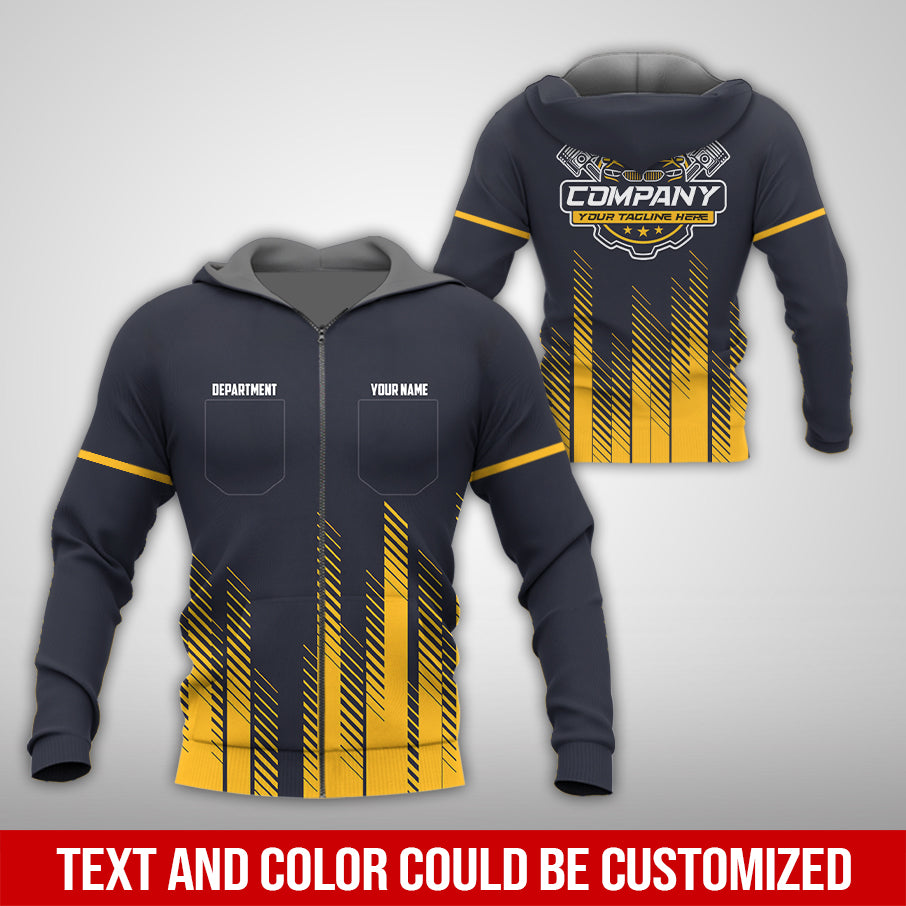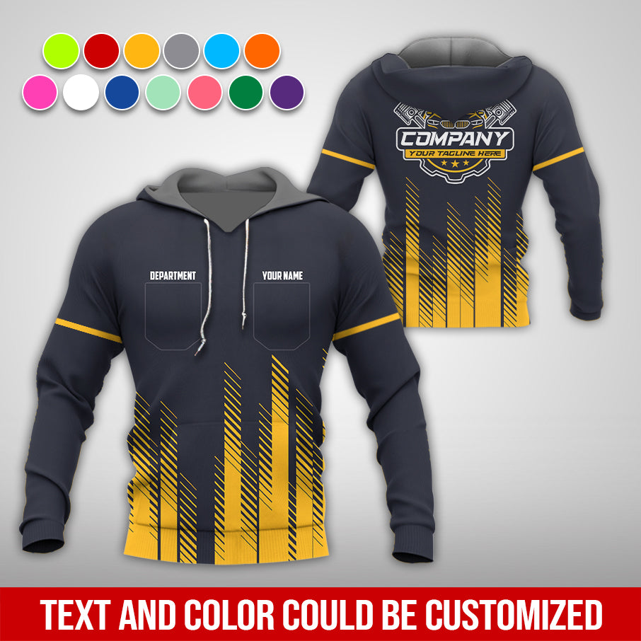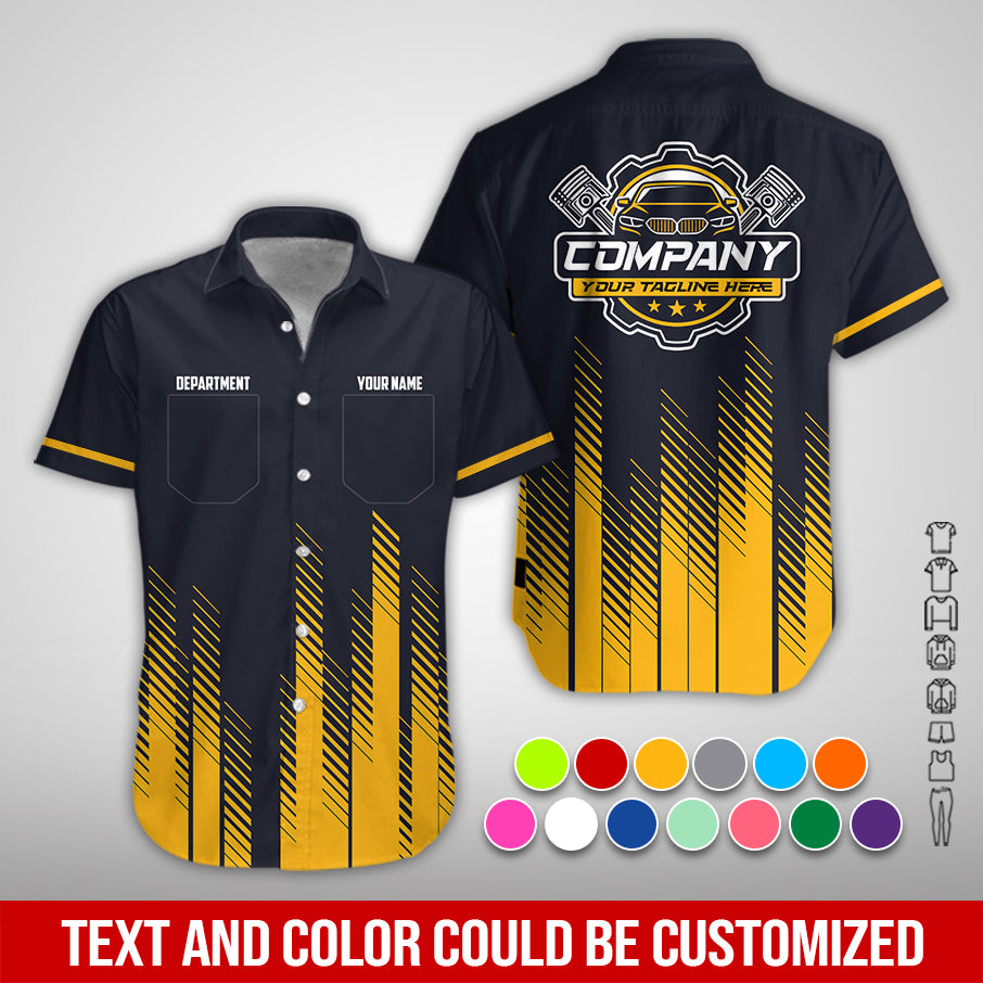 Personalized Mechanic Shirt in Yellow, 3D Printed Mechanic Shirt, Custom Name Work Shirt for Car Repair Technicians, Great Gift for Men