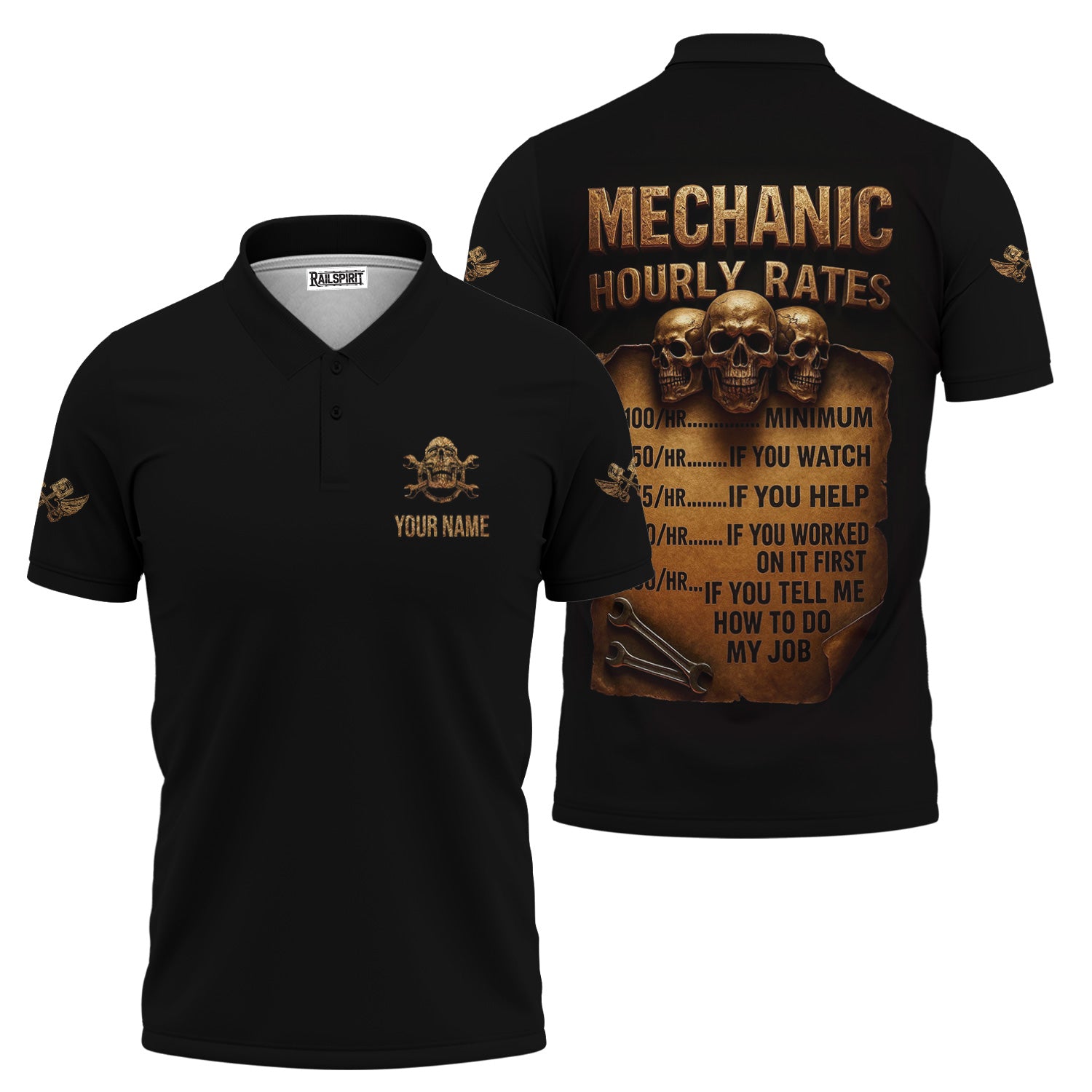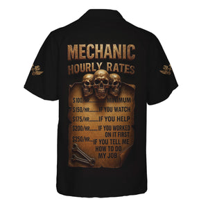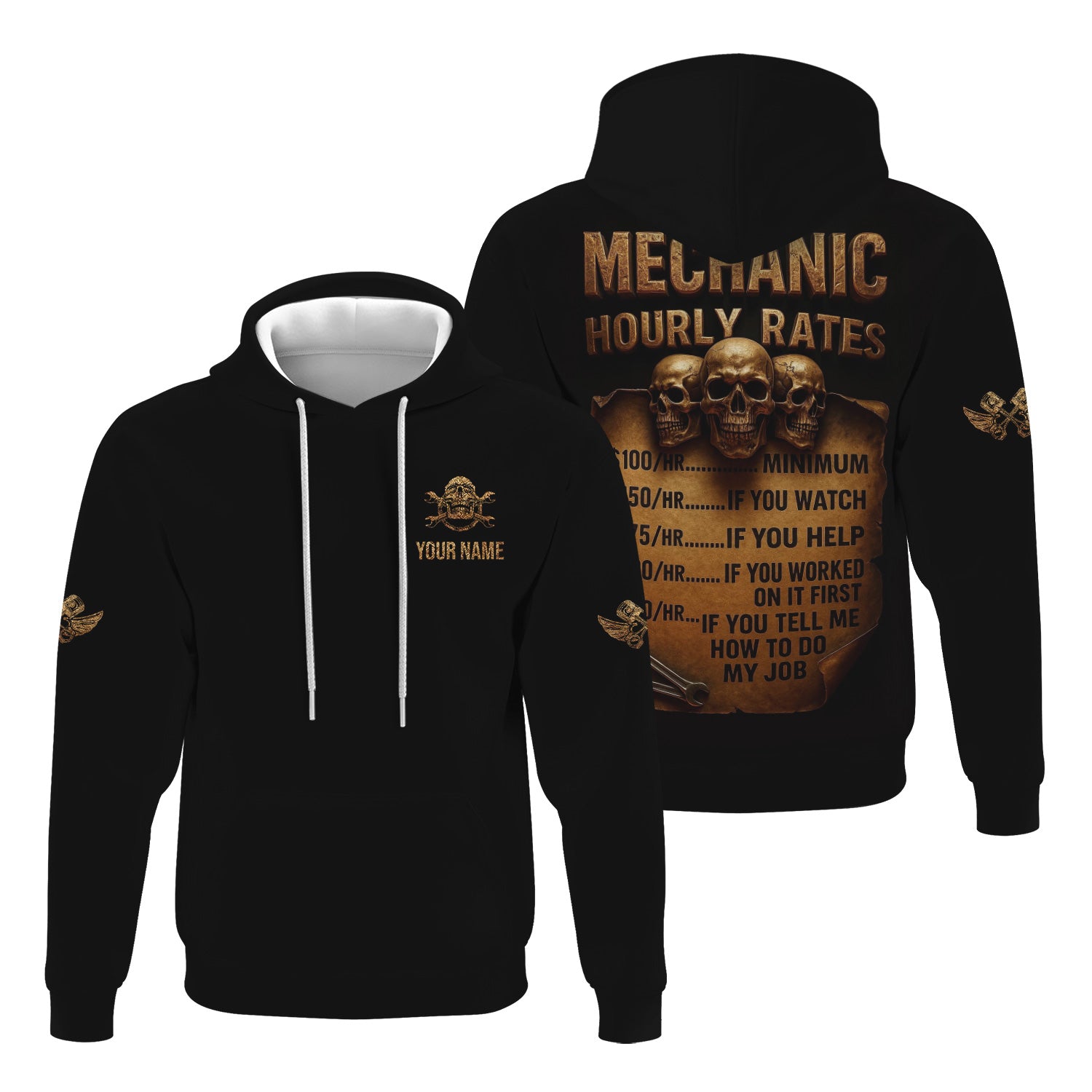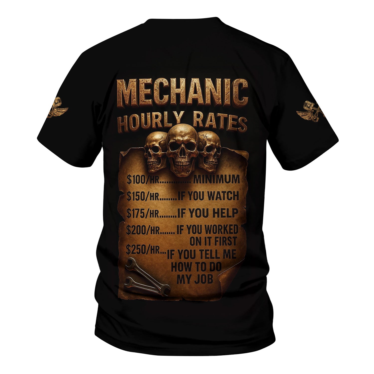 Personalized Mechanic Shirt, Mechanic Hourly Rates, Vintage Skull Design, Gift For Men