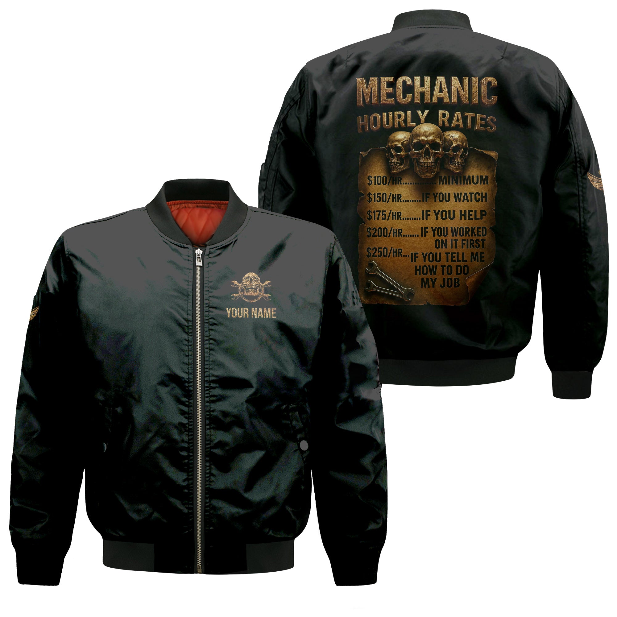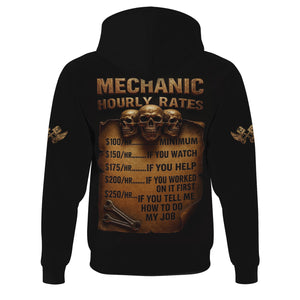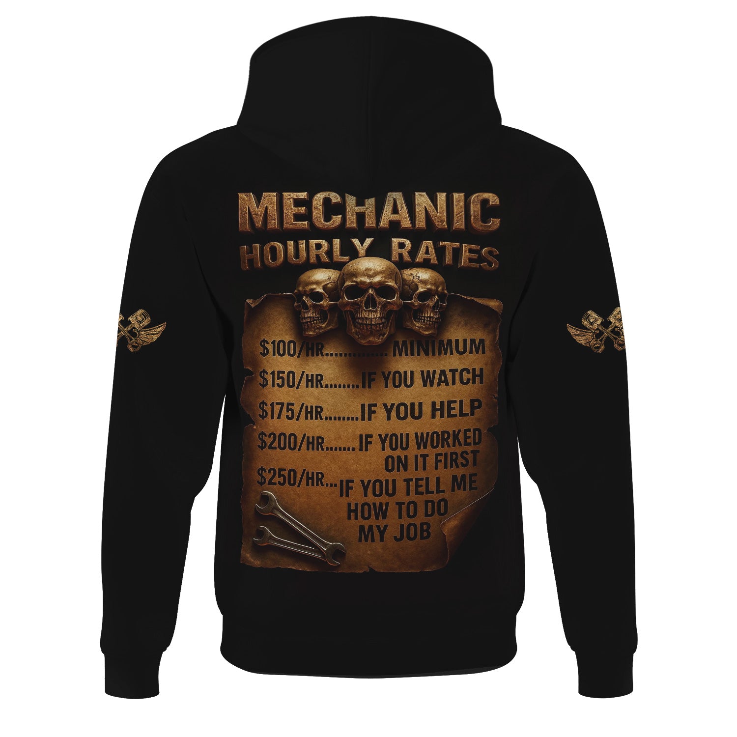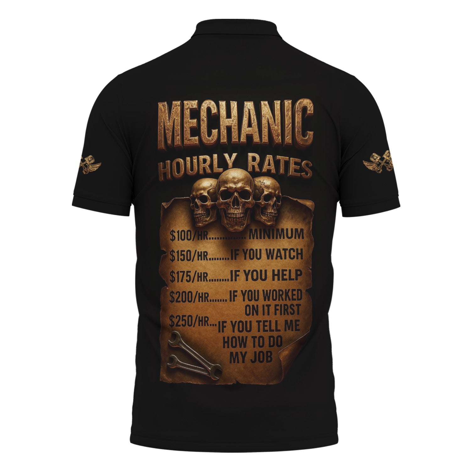 Personalized Mechanic Shirt, Mechanic Hourly Rates, Vintage Skull Design, Gift For Men
