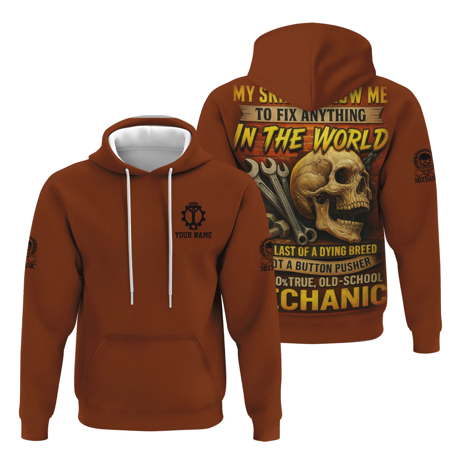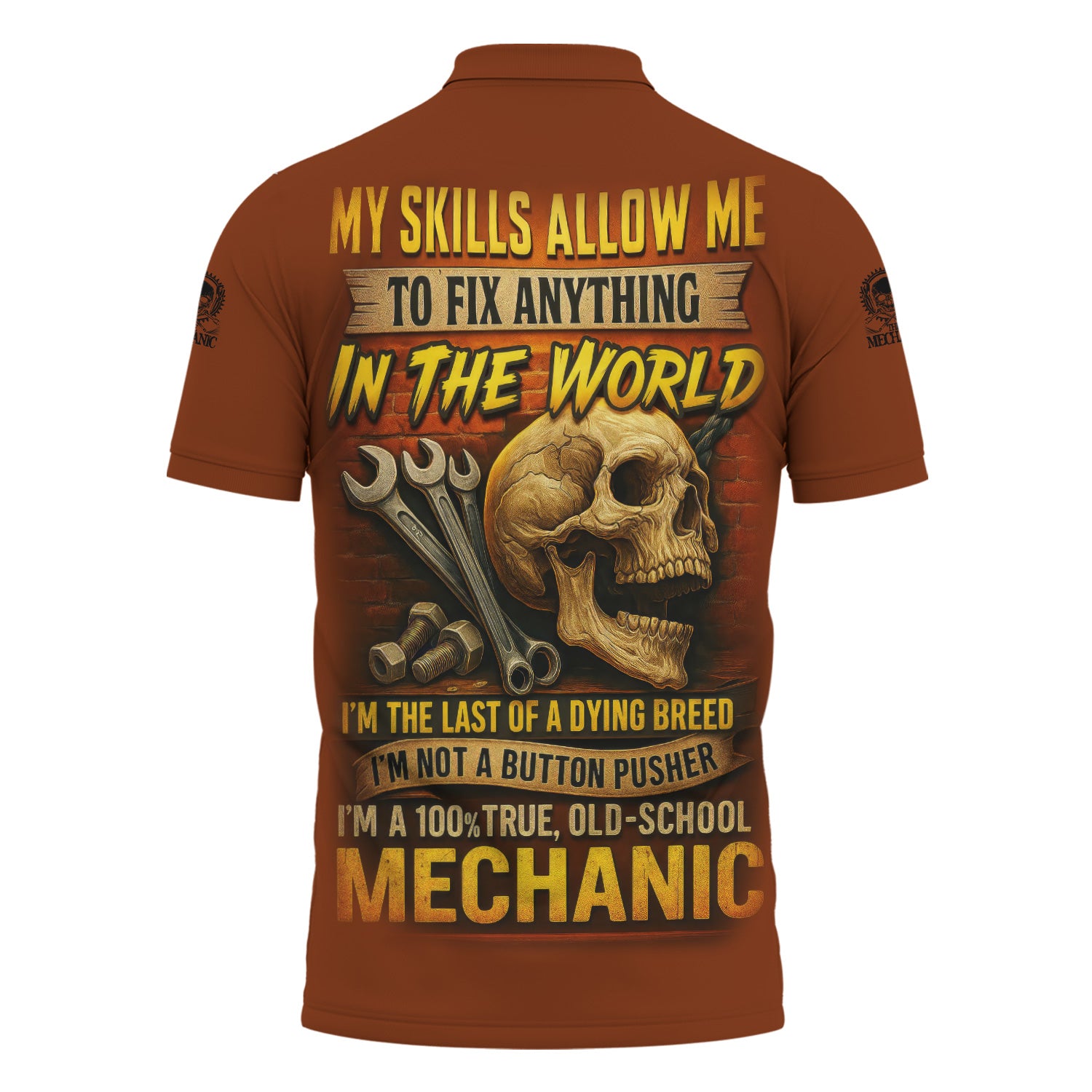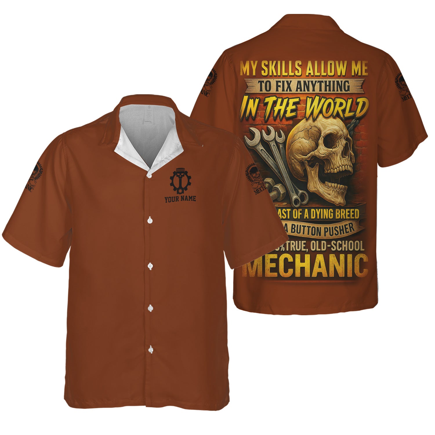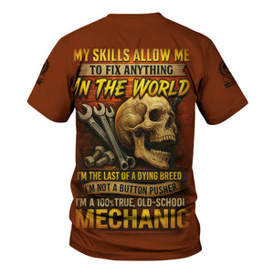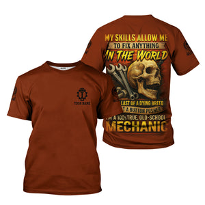 Personalized Mechanic Shirt, My Skills Allow Me To Fix Anything In The World, Skull and Wrench Design, Gift For Men