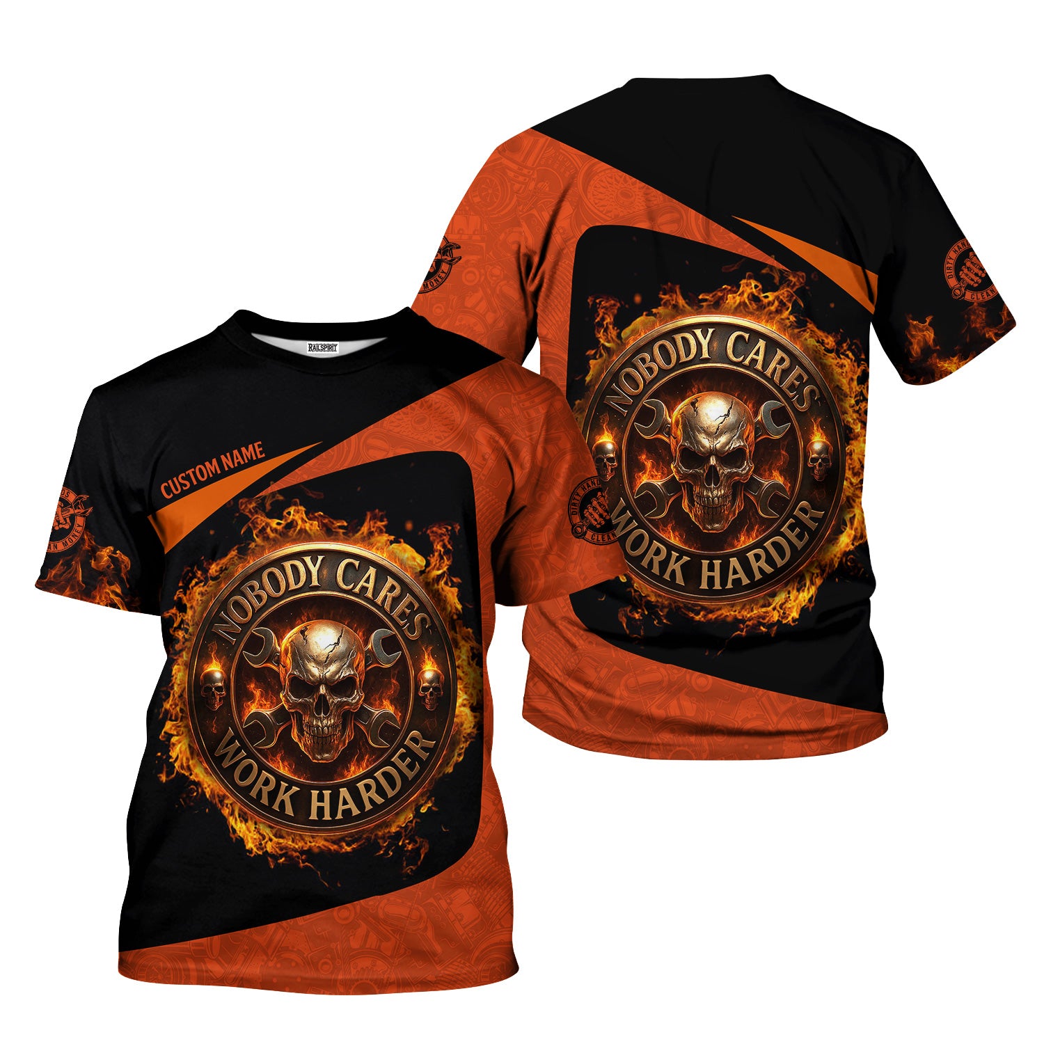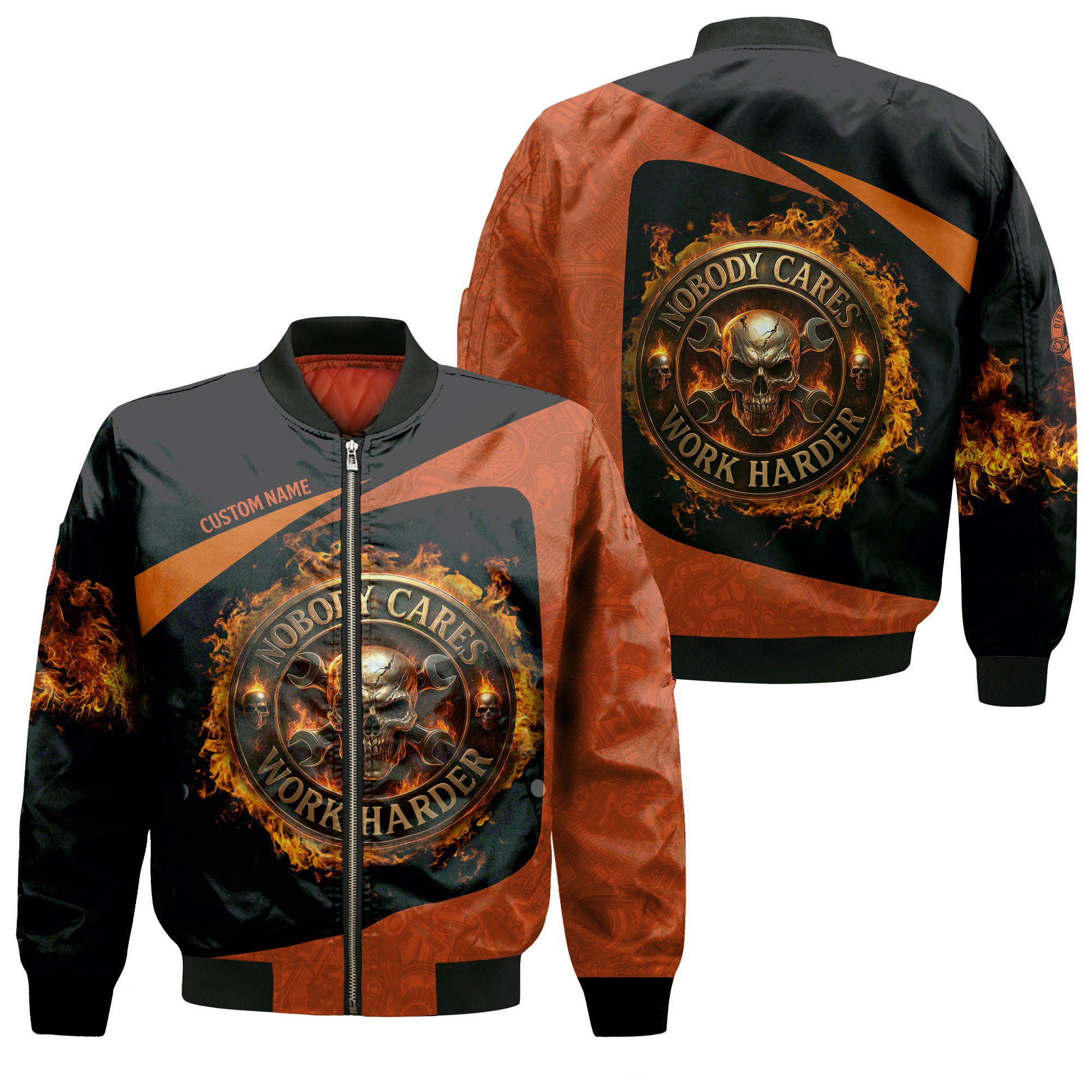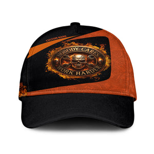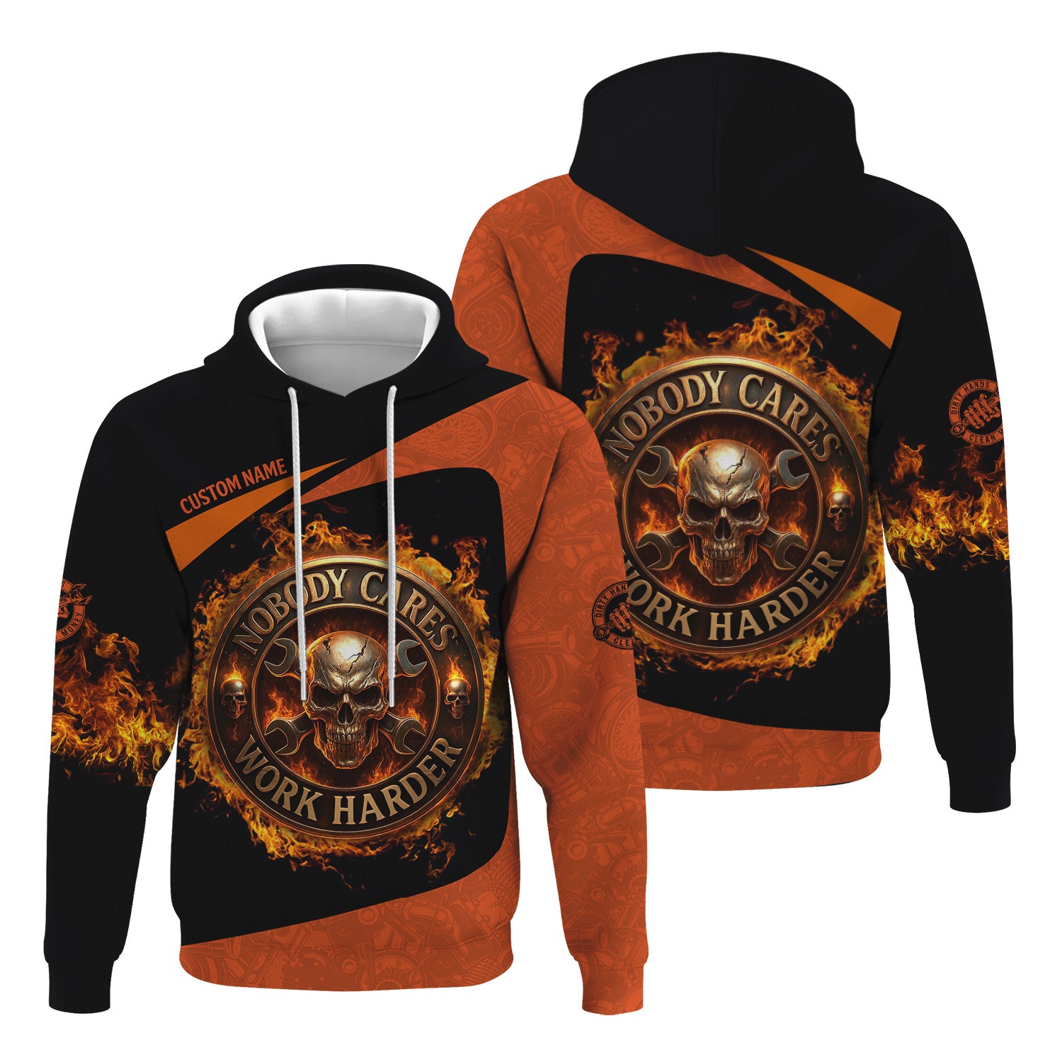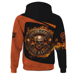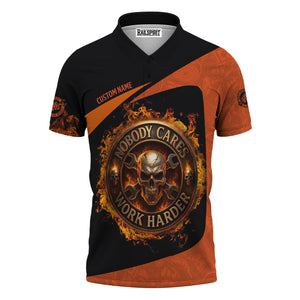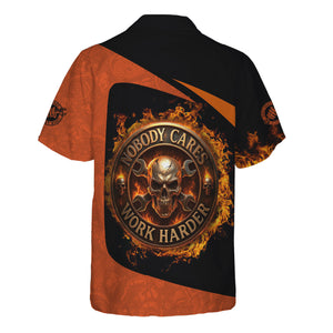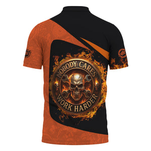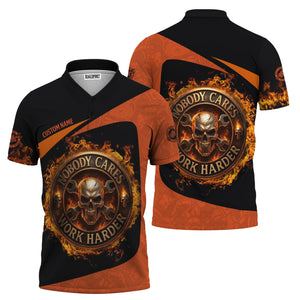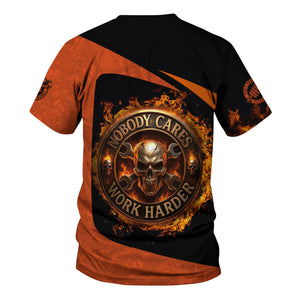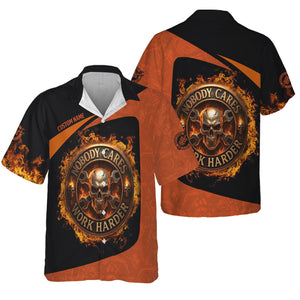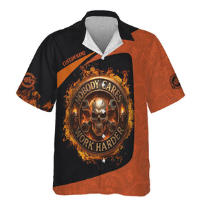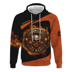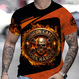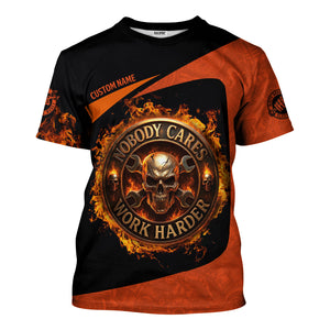 Personalized Mechanic Shirt, Nobody Cares Work Harder, Flame Skull Design, Gift For Men