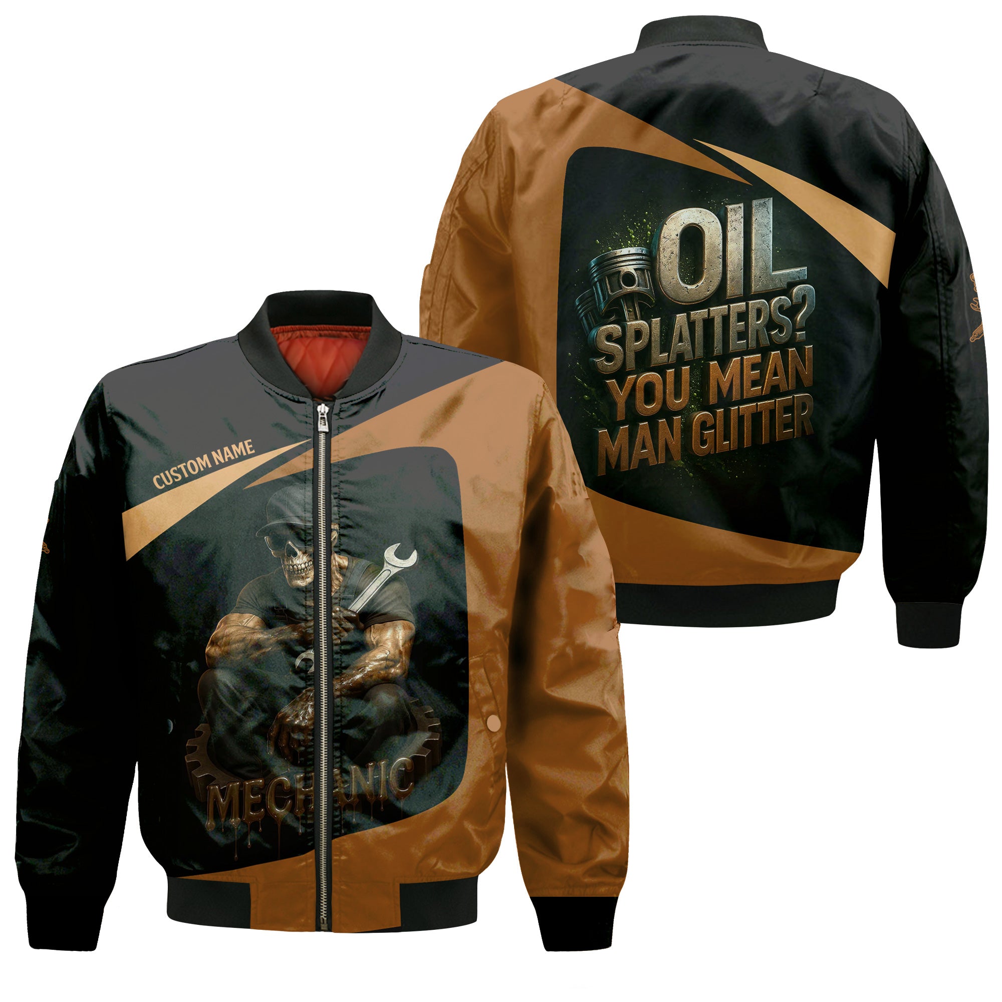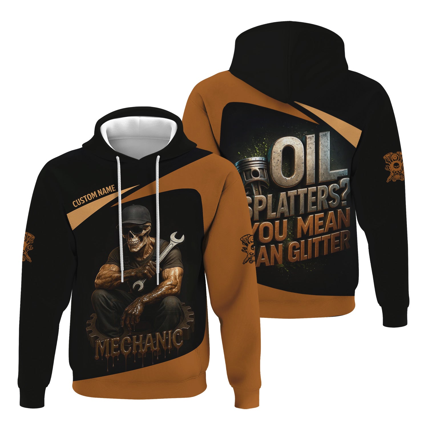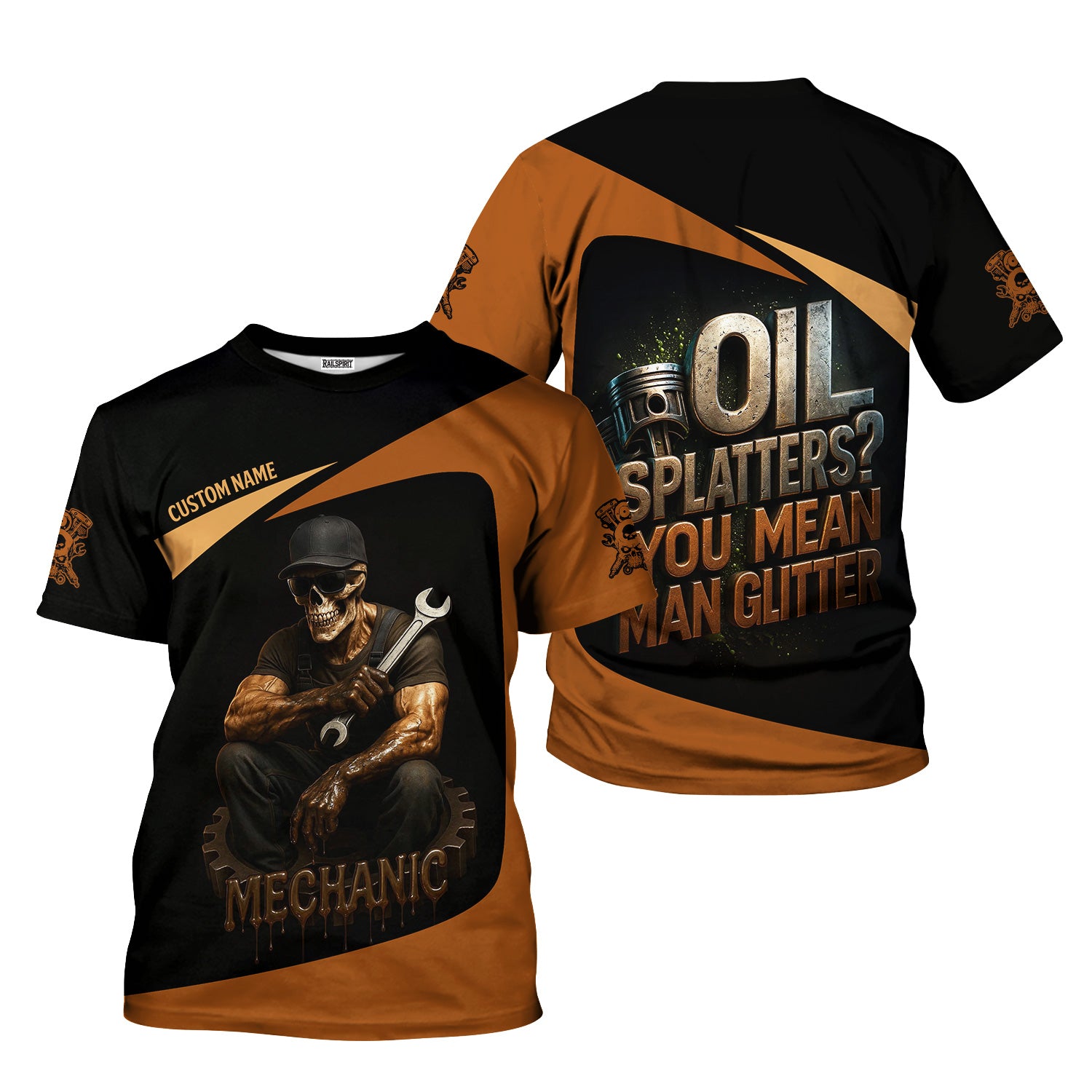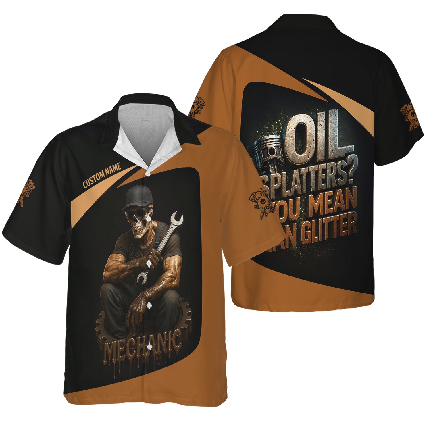Personalized Mechanic Shirt, Oil Splatters You Mean Man Glitter, Skull Mechanic Design, Gift For Men