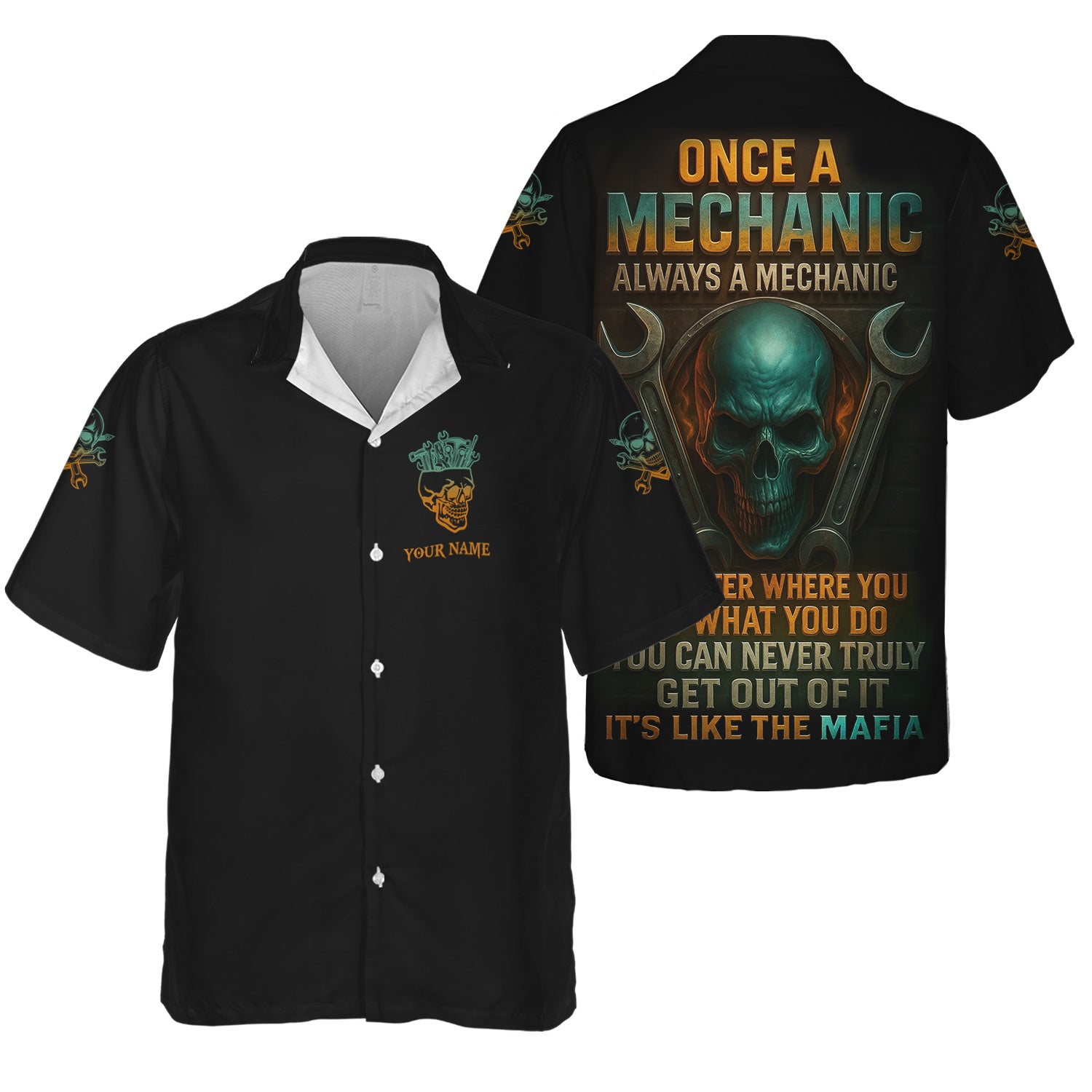 Personalized Mechanic Shirt, Once A Mechanic Always A Mechanic, Skull and Wrench Design, Gift For Men