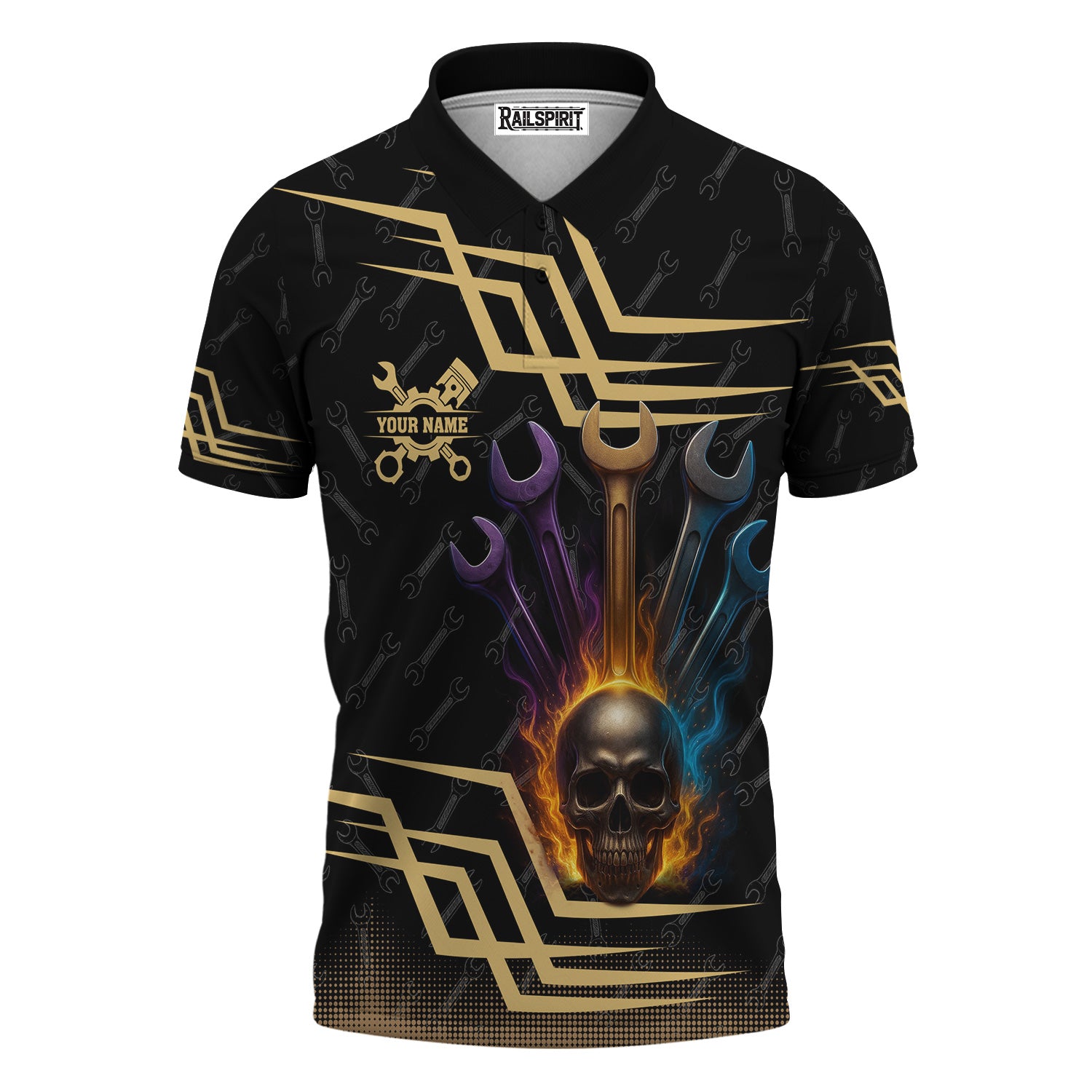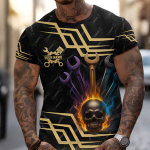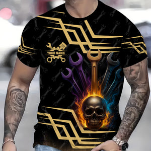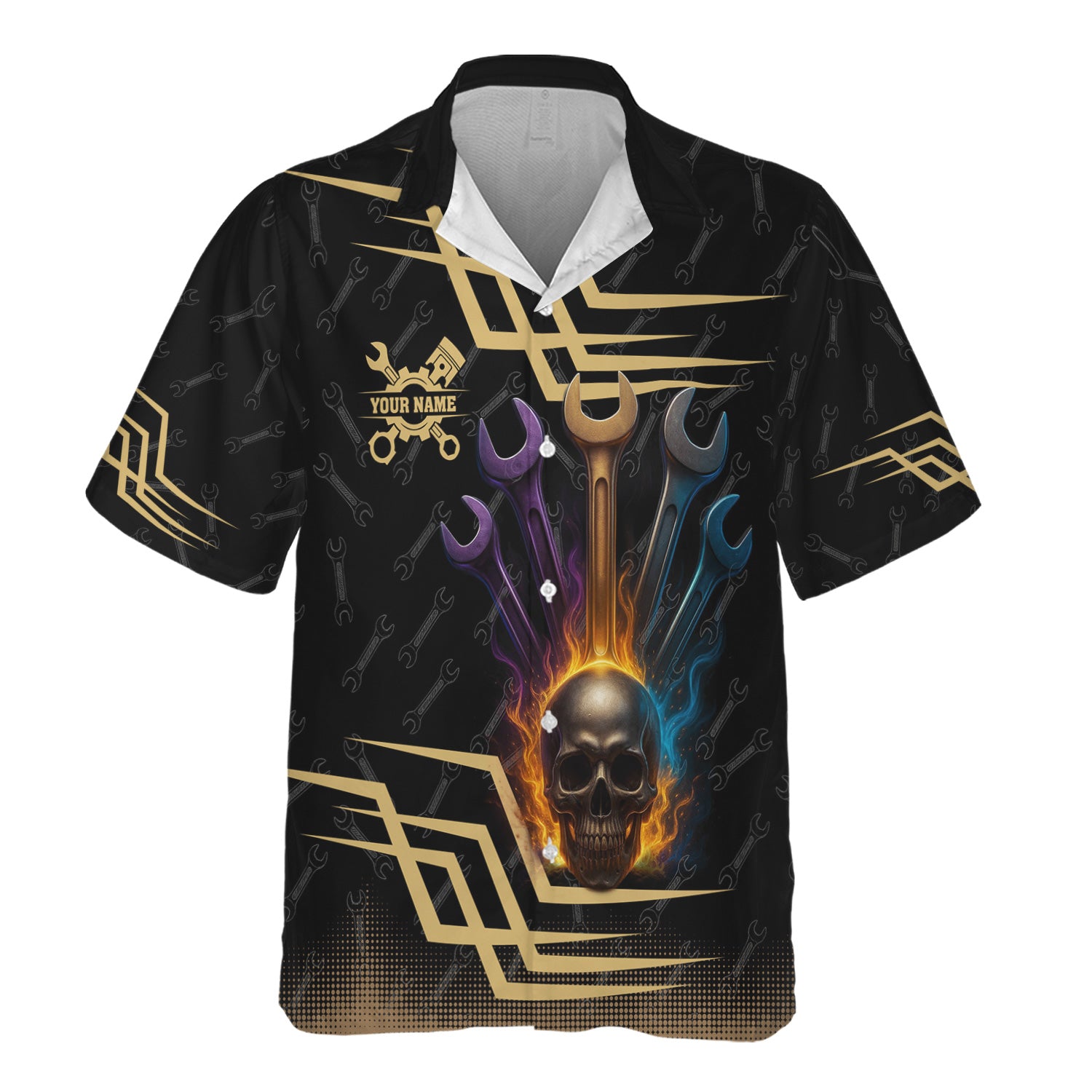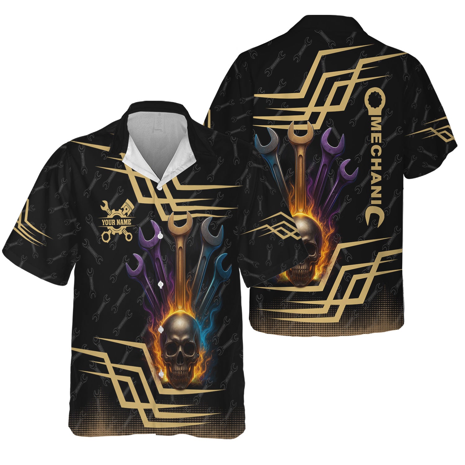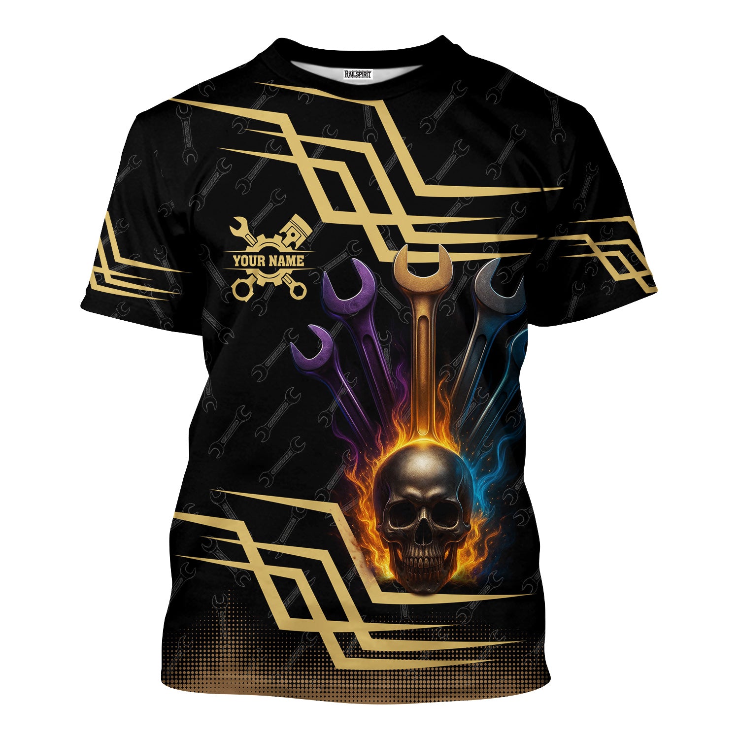 Personalized Mechanic Shirt, Skull Colorful Wrenches Design, Mechanic Uniforms, Gift For Men