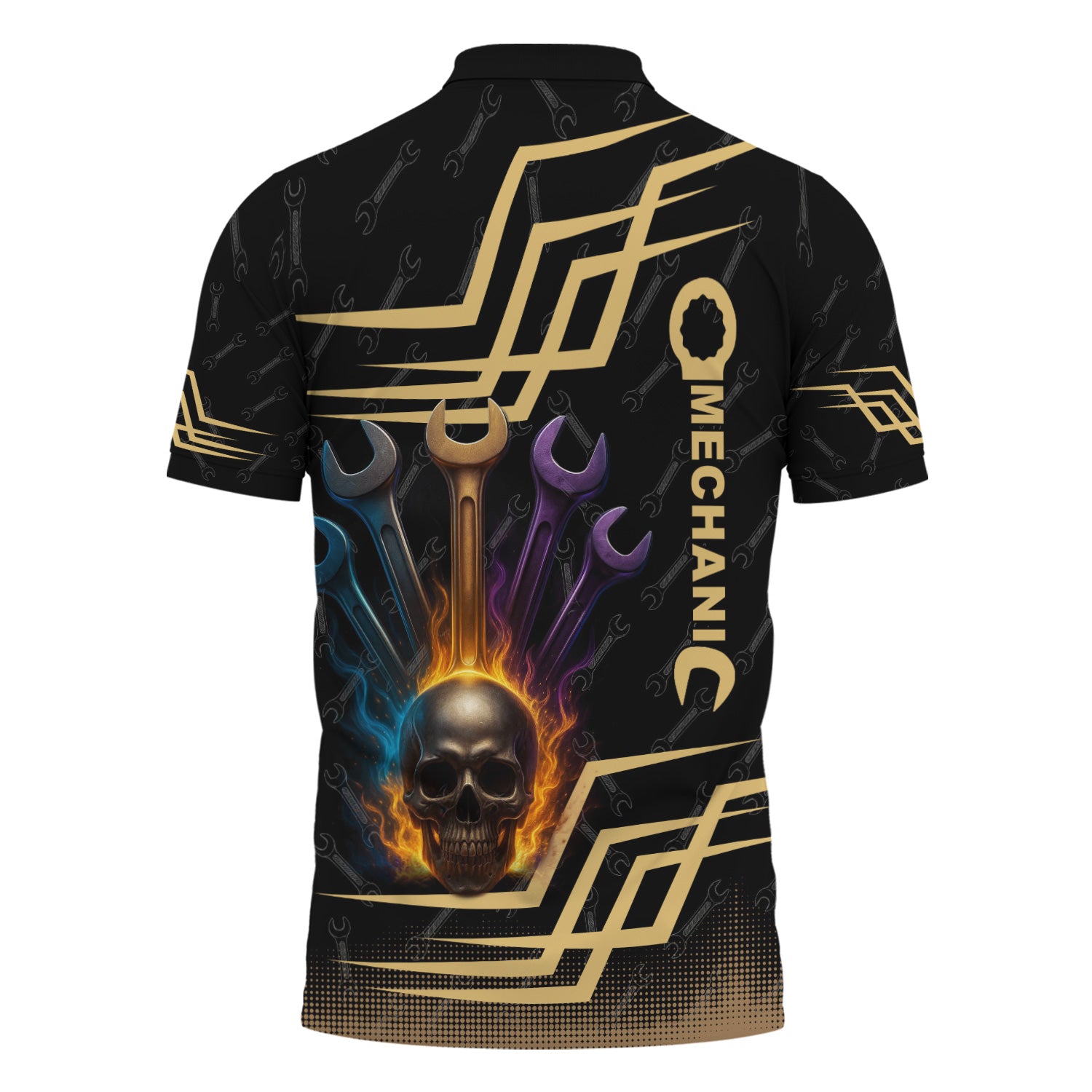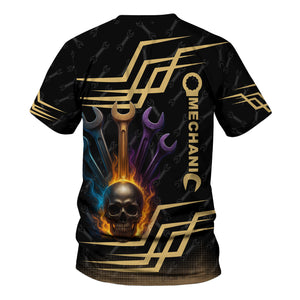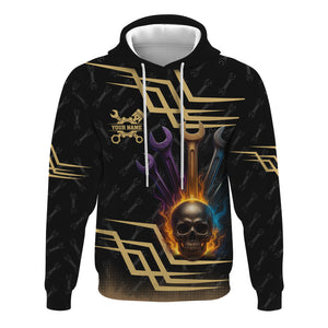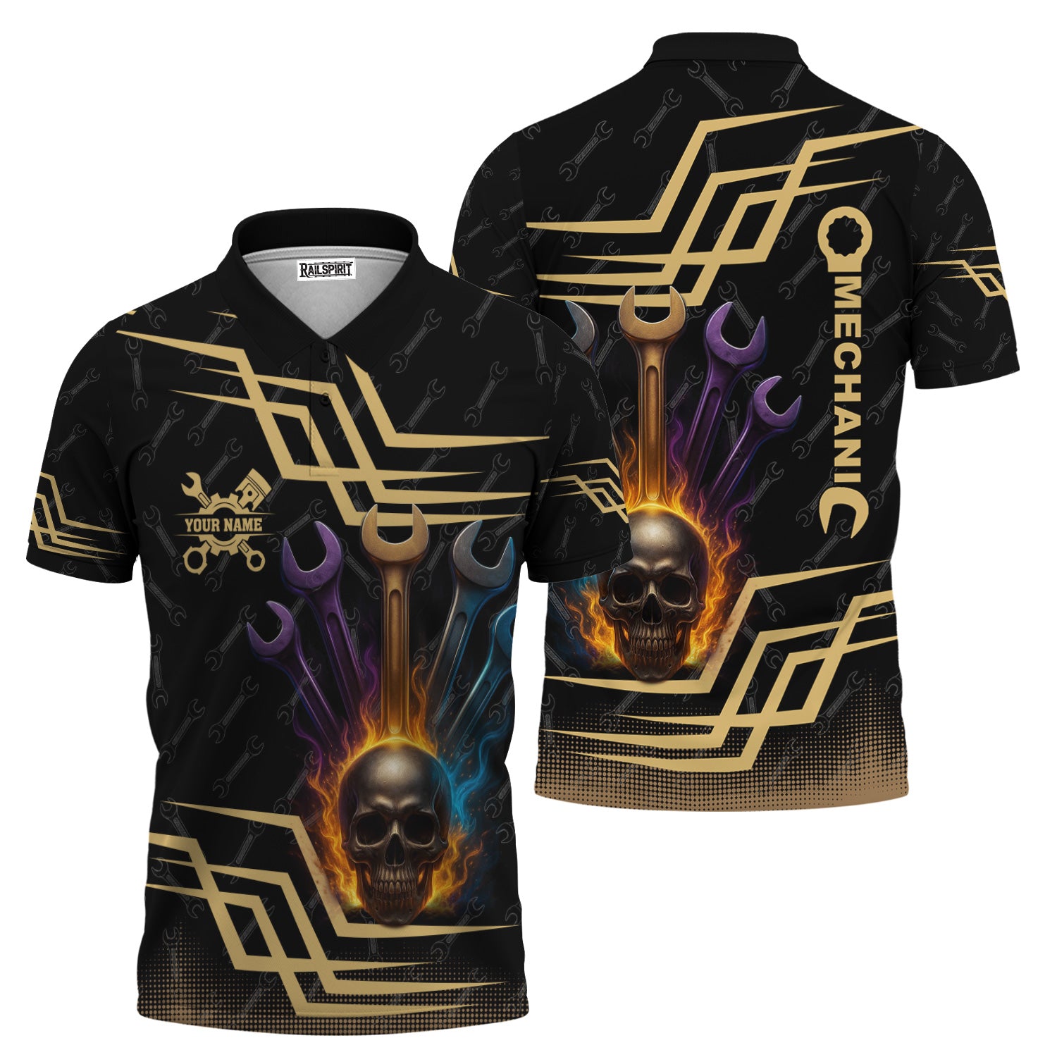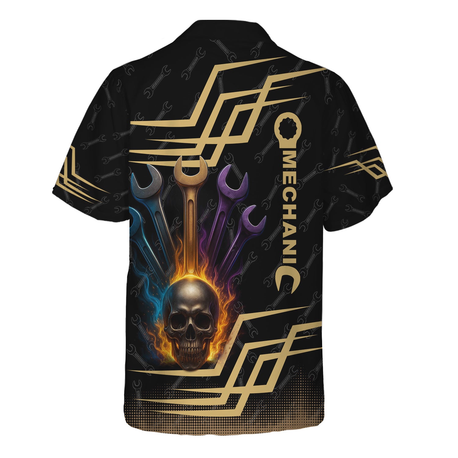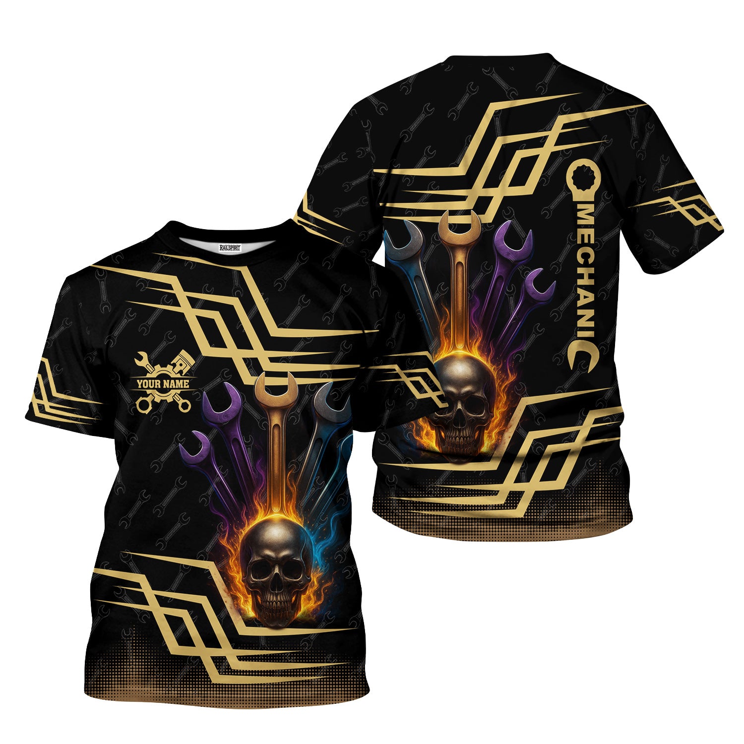 Personalized Mechanic Shirt, Skull Colorful Wrenches Design, Mechanic Uniforms, Gift For Men