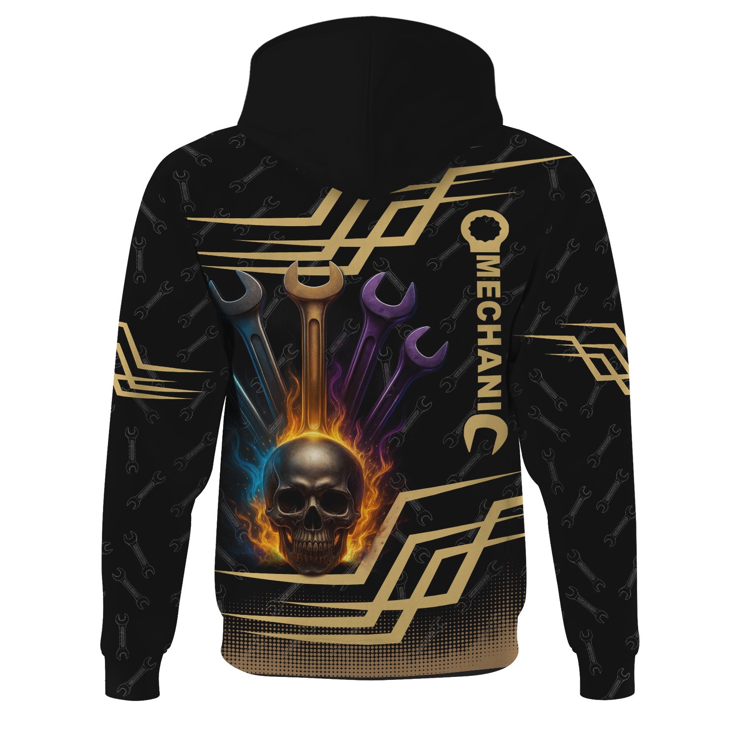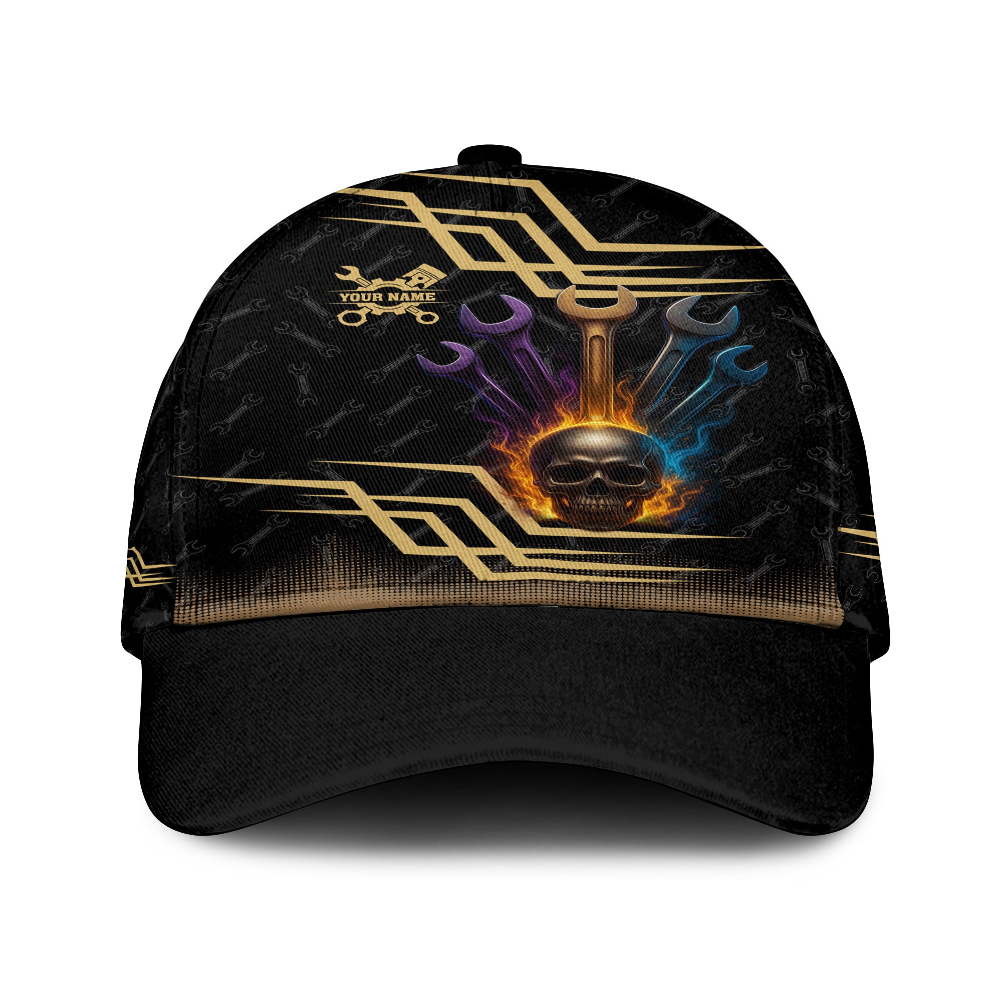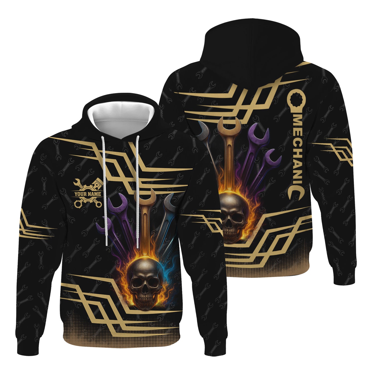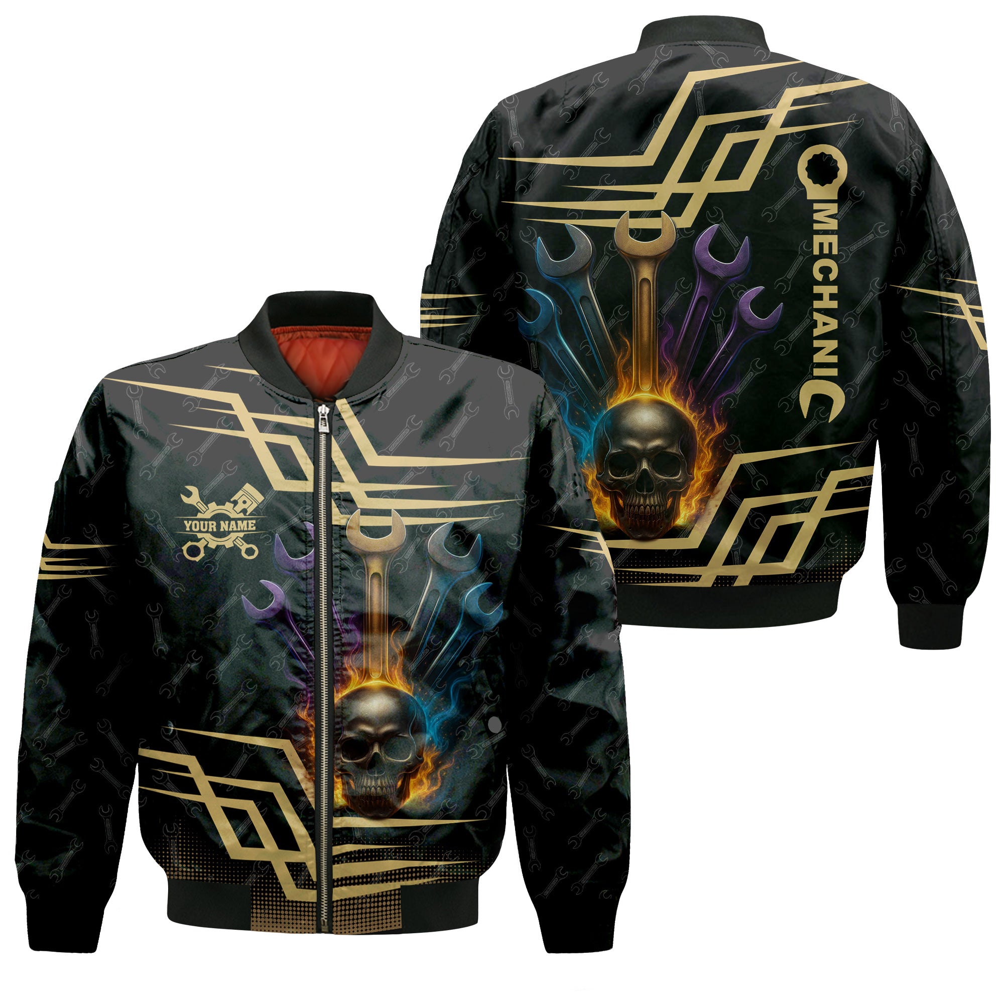 Personalized Mechanic Shirt, Skull Colorful Wrenches Design, Mechanic Uniforms, Gift For Men