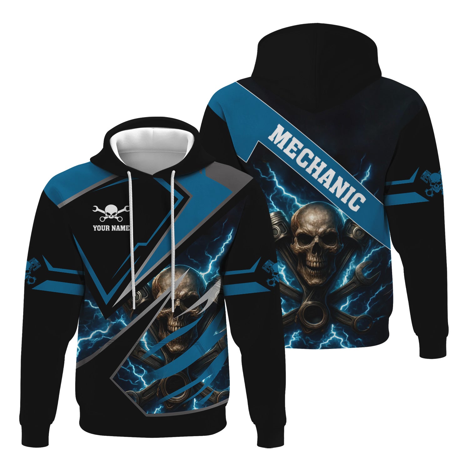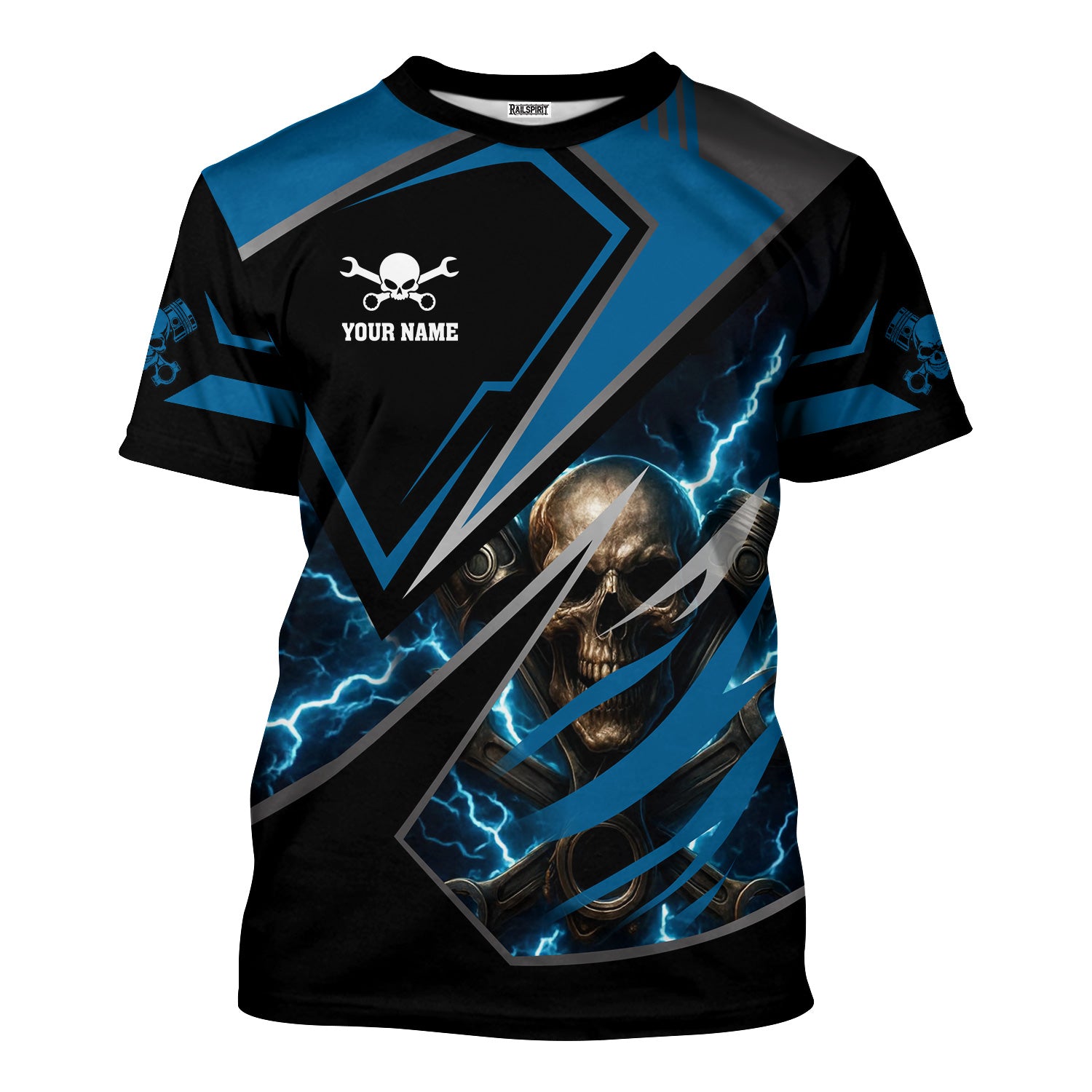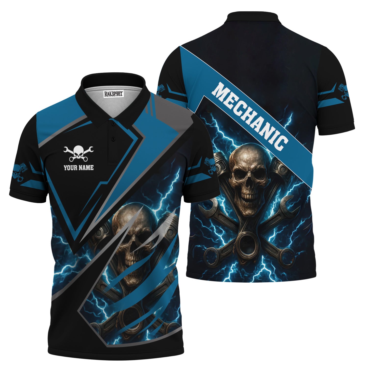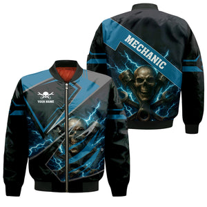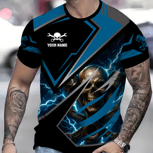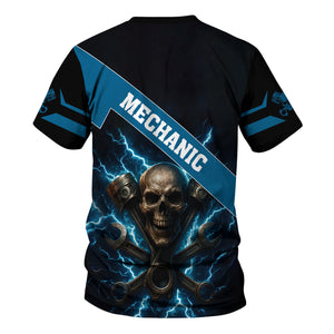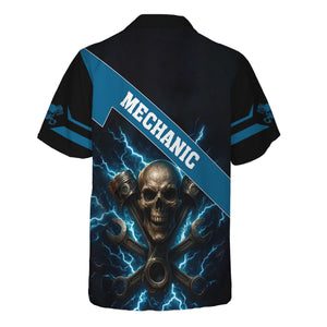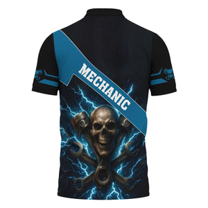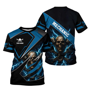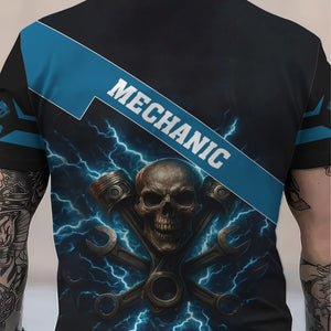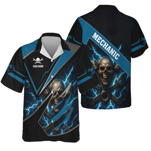 Personalized Mechanic Shirt, Skull Engine Piston Wrench Lighting Design, Mechanic Uniforms, Gift For Men