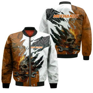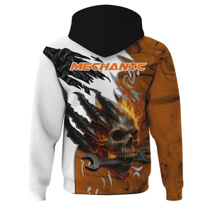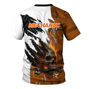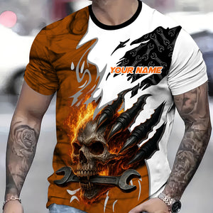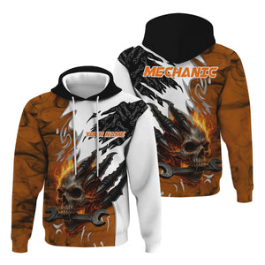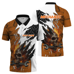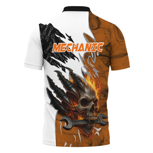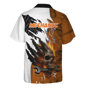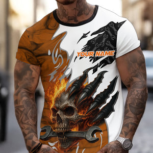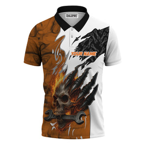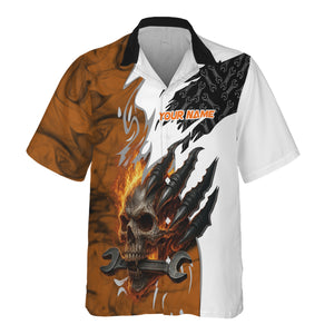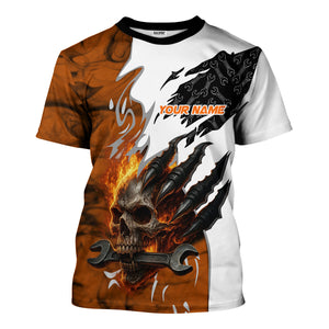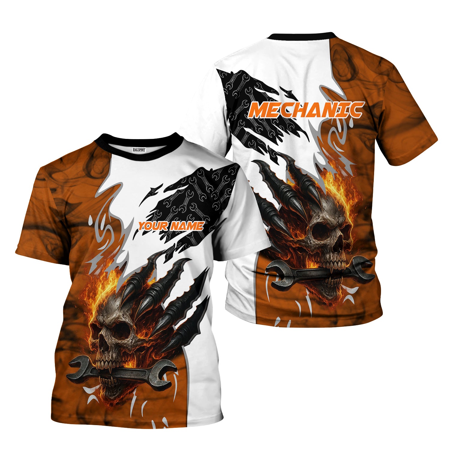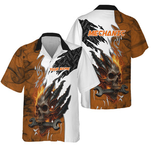 Personalized Mechanic Shirt, Skull Wrench Flame Claw Design, Mechanic Uniforms, Gift For Men