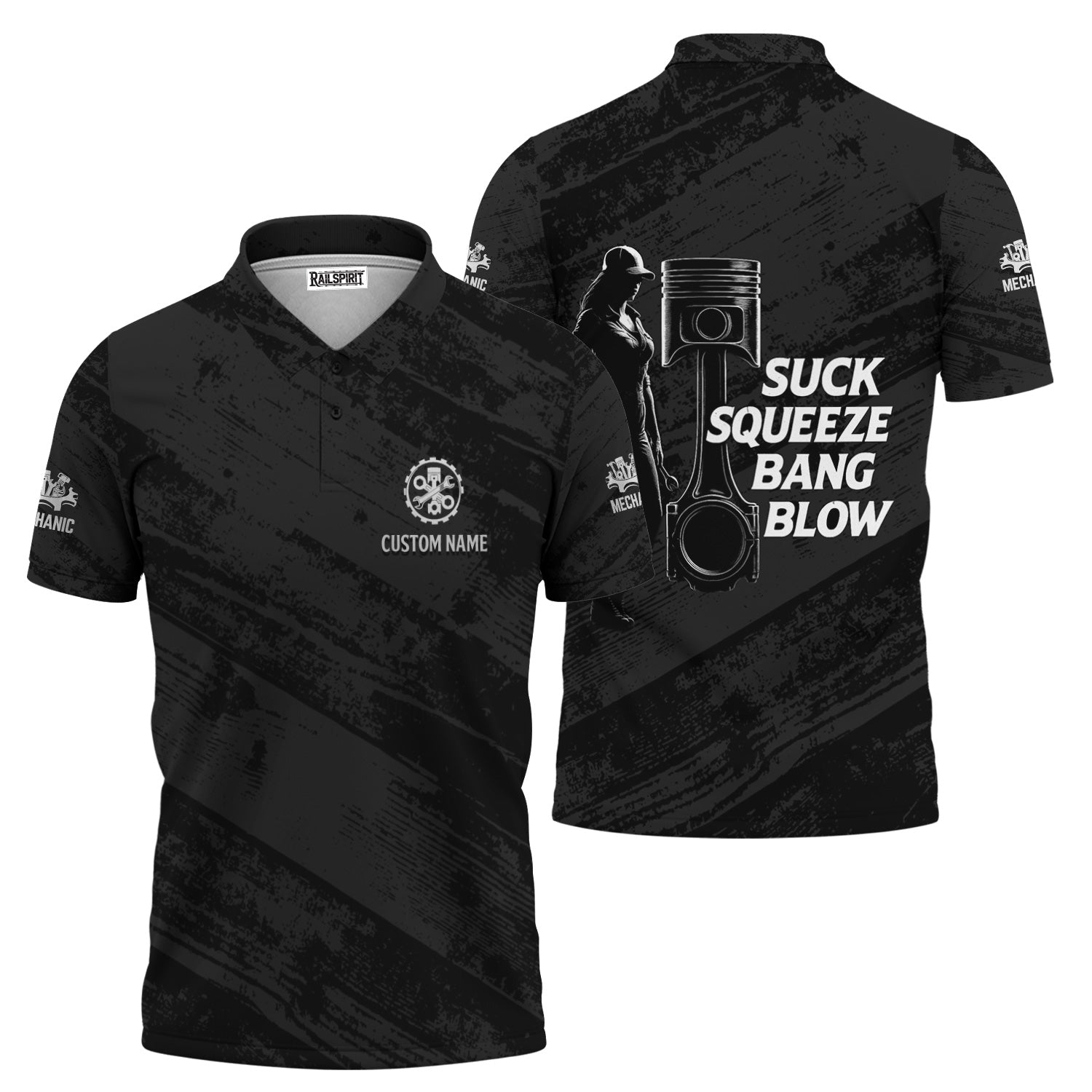 Personalized Mechanic Shirt, Suck Squeeze Bang Blow, Funny Quote Design, Gift For Men