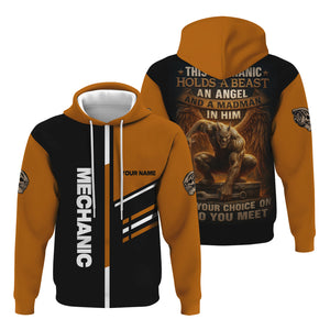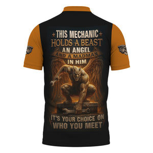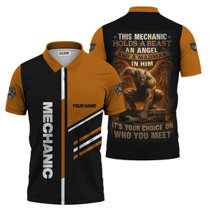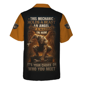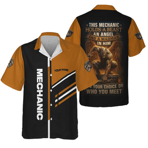 Personalized Mechanic Shirt, This Mechanic Holds A Beast An Angel And A Madman In Him, Mechanic Uniforms, Gift For Men