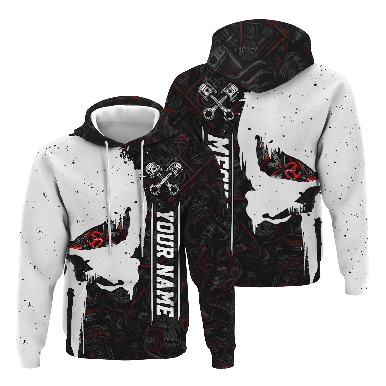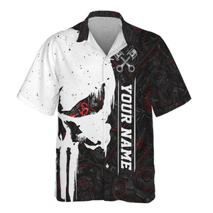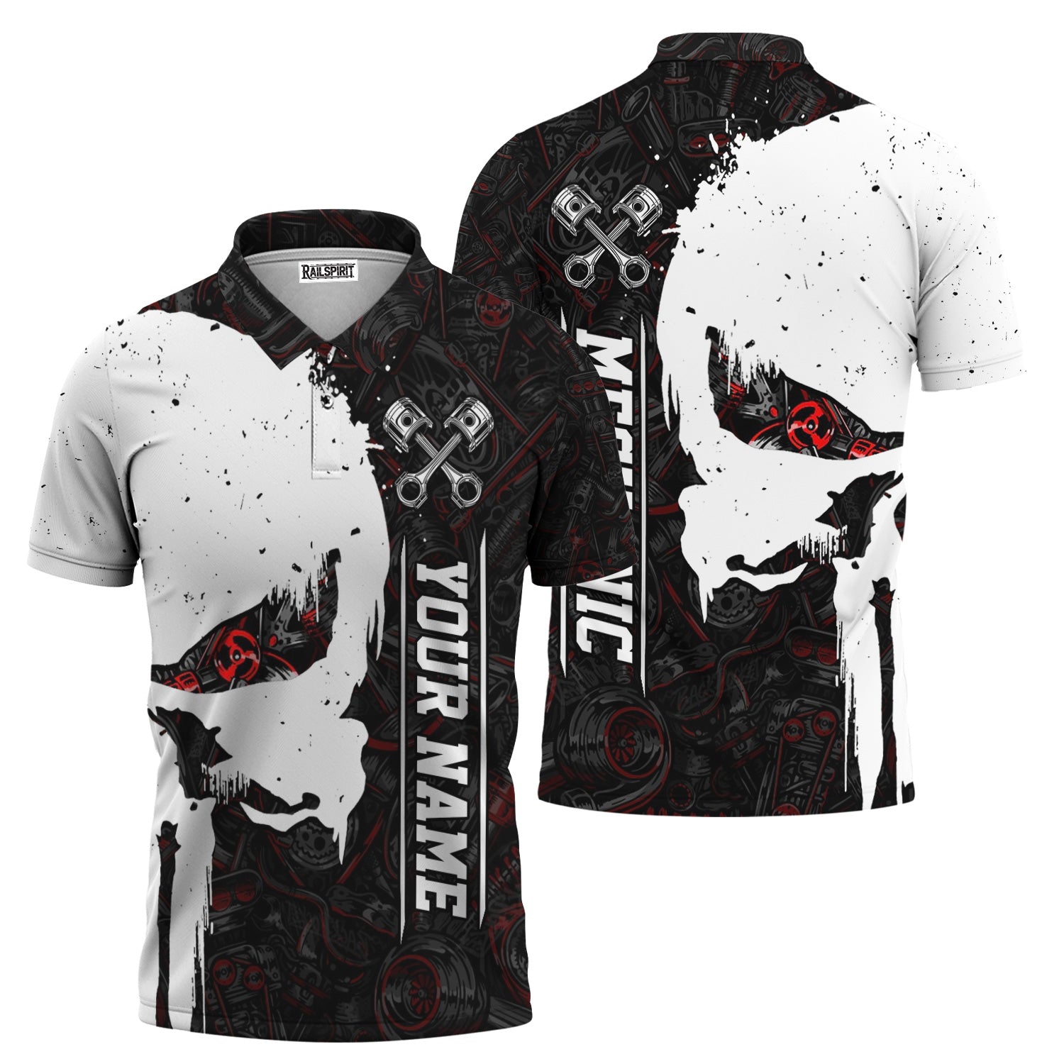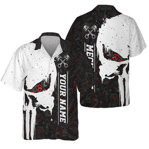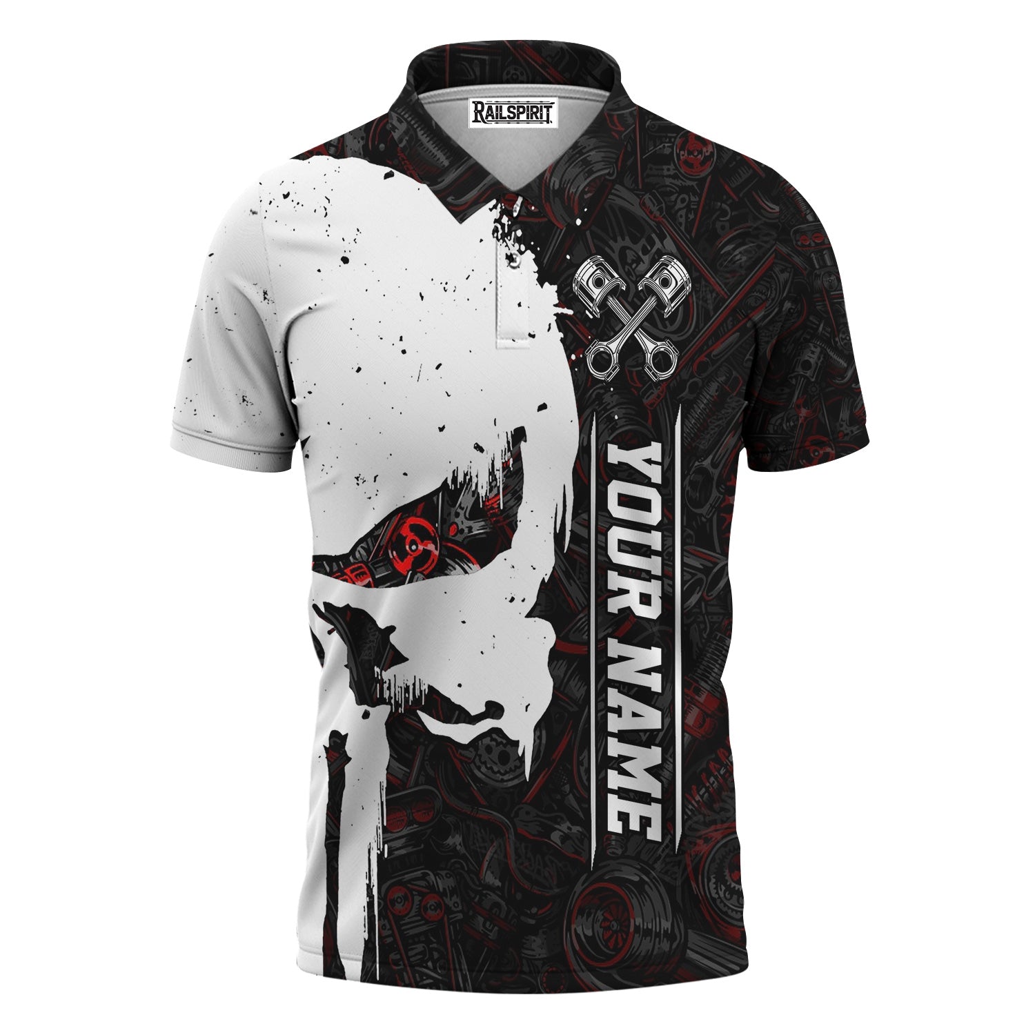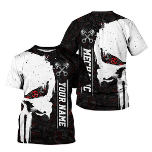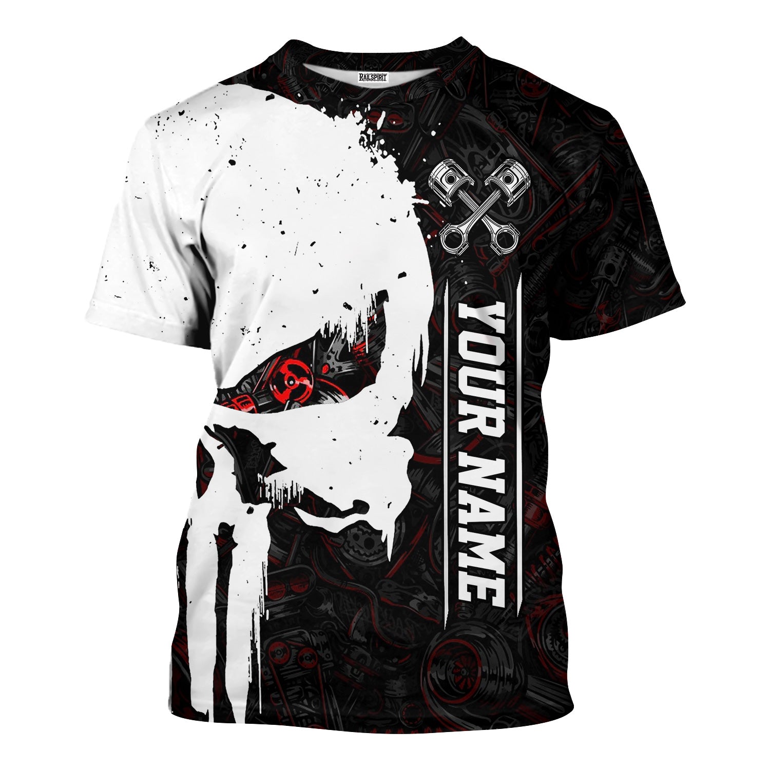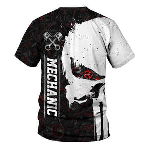 Personalized Mechanic Skull Shirt, Unique Gear Design, Gift for Mechanics & Motorheads, Funny Skull Shirt