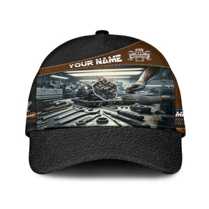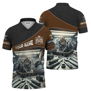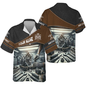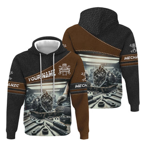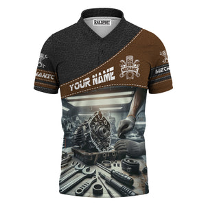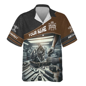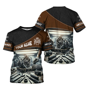 Personalized Mechanic T Shirt Custom Name Auto Repair Garage Workwear Tee Car Engine Tools Graphic Funny Car Repair Shirt Gift for Men