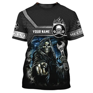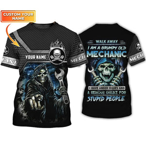 Personalized Name Grumpy Old Mechanic 3D Shirts, Skull Mechanical Tshirt For Him, Mechanic Men Shirt