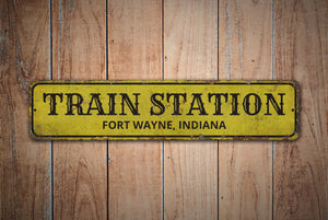 Personalized Rustic Train Station Metal Sign For Grandpa Room - Custom Model Railroad Room Home Decor