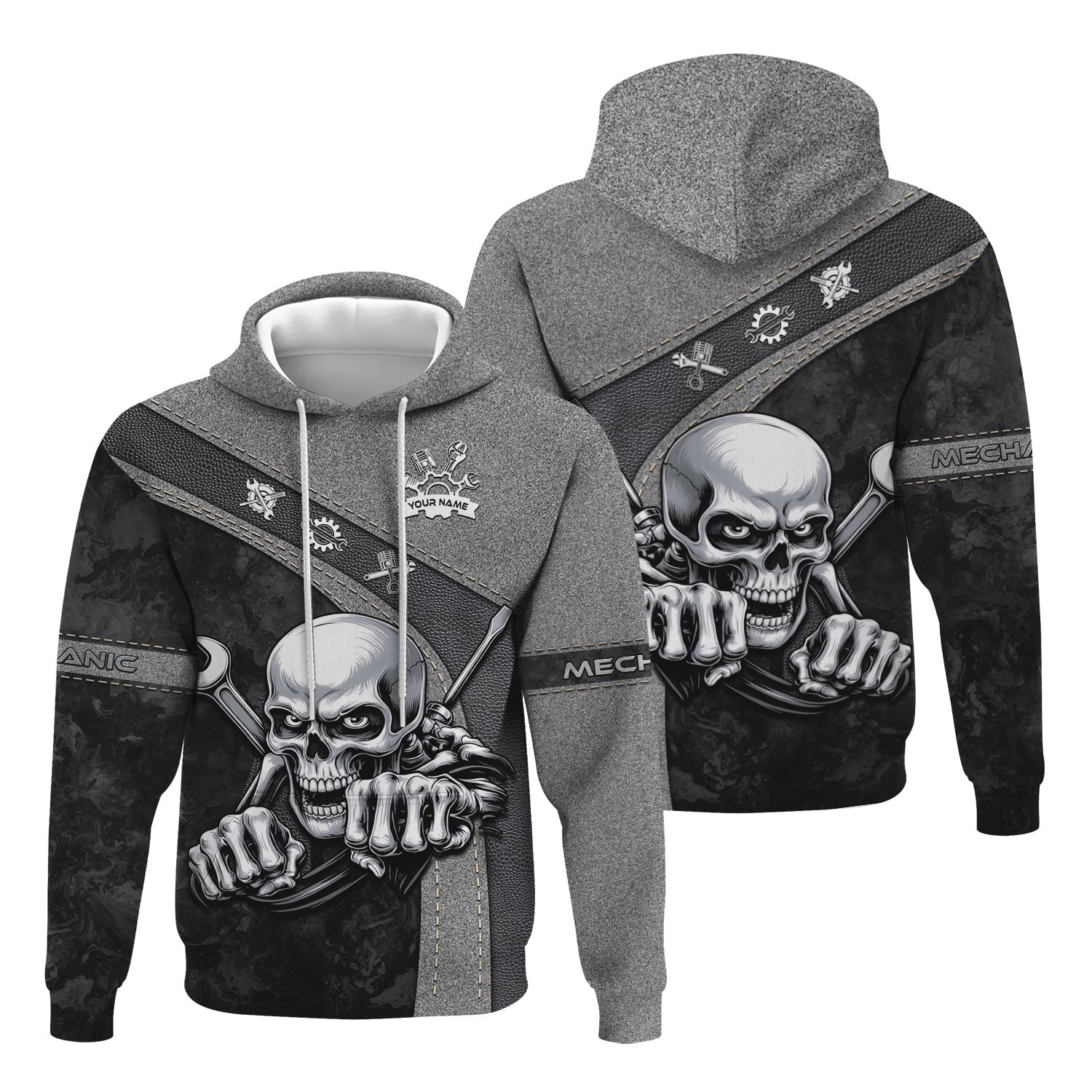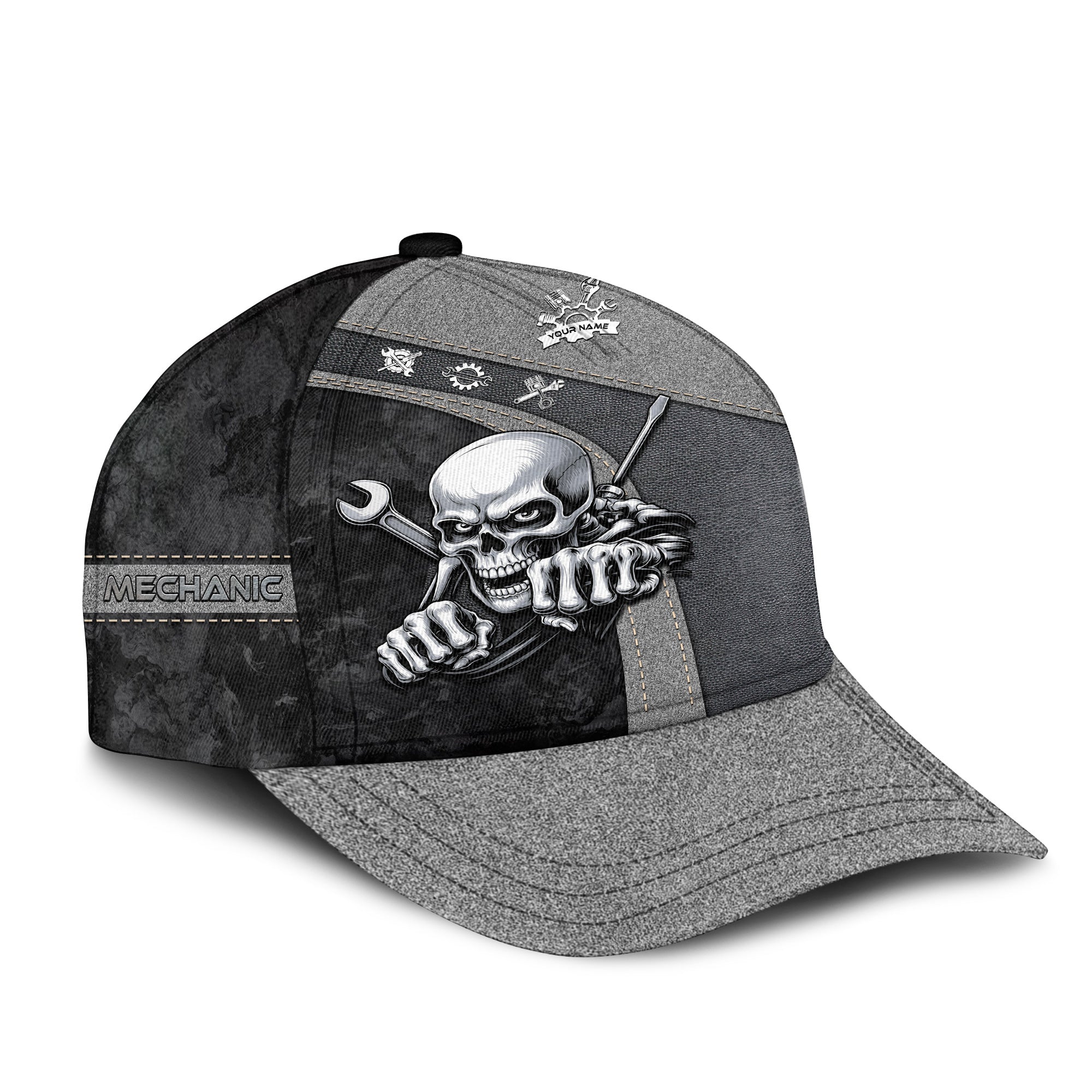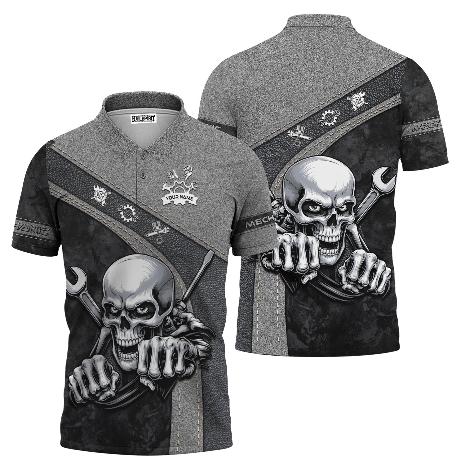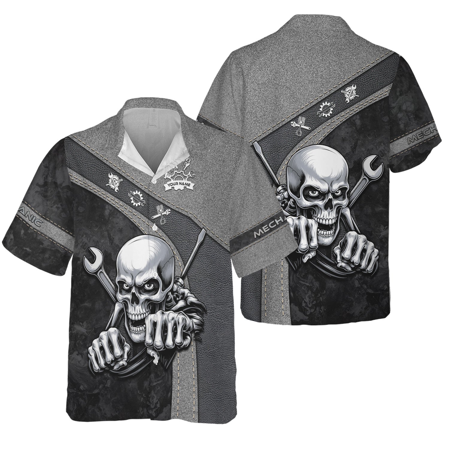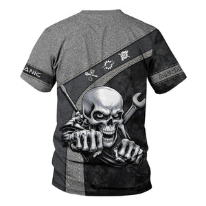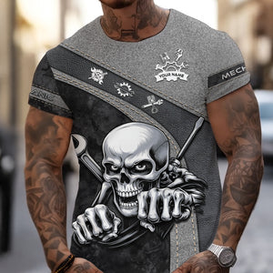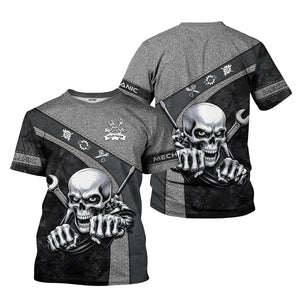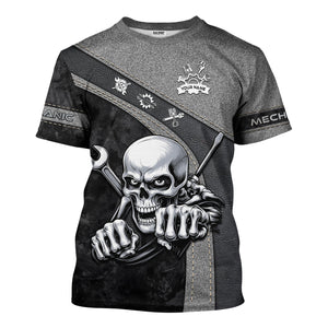 Personalized Skull Mechanic Shirt, Custom Name Mechanic Shirt, Unique Gift for Mechanics, Cool Mechanic Apparel