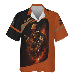 The print is awesome and the shirt fits just right. Perfect for any mechanic who loves bold style.