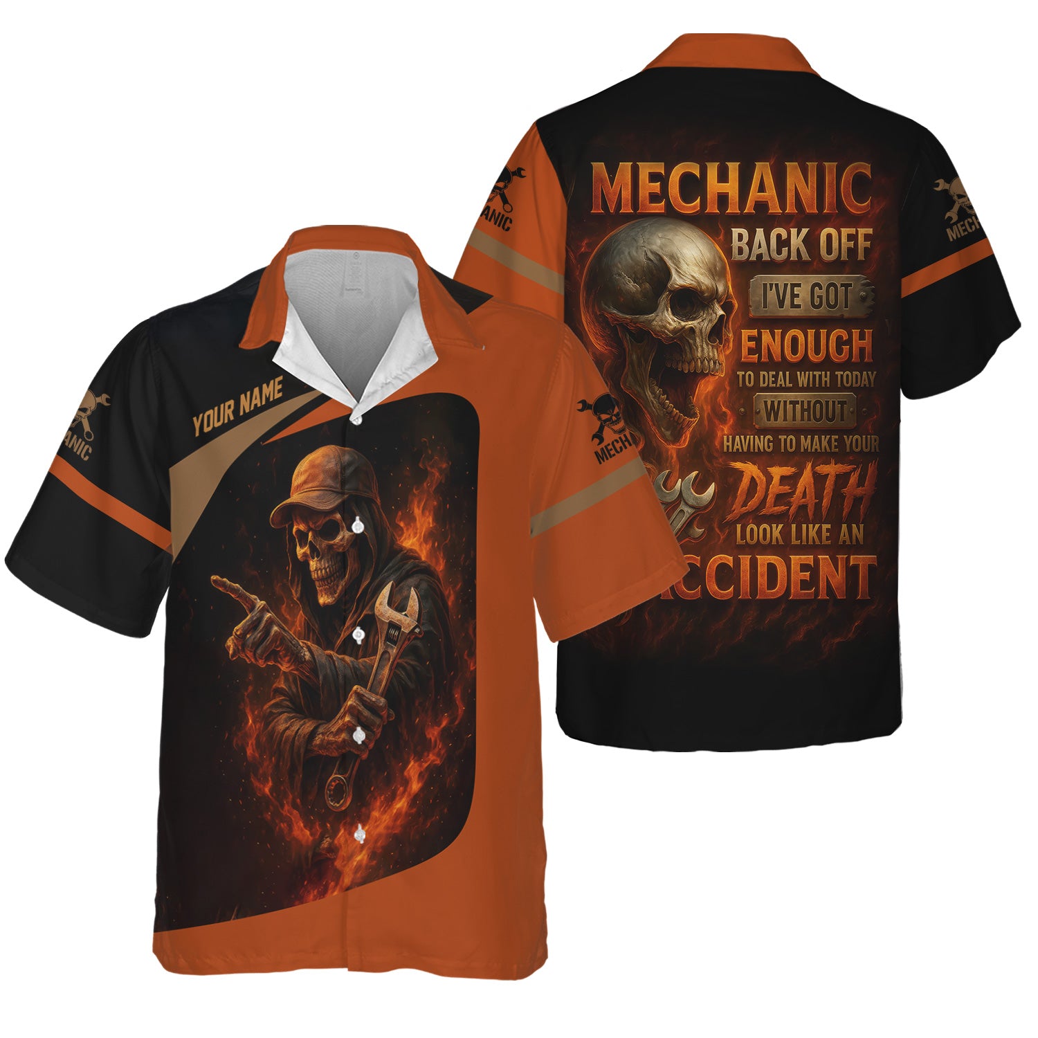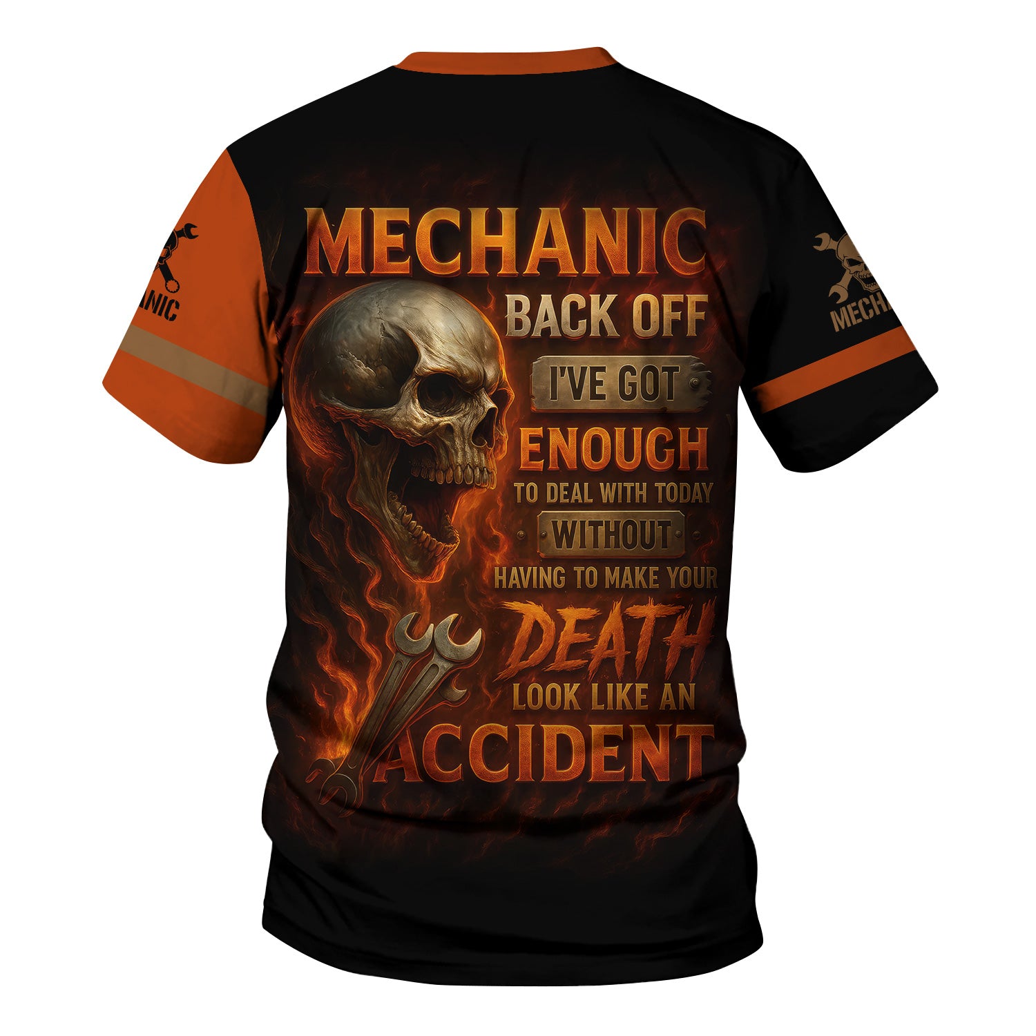 Personalized T-Shirt Back Off I've Got Enough To Deal With Today Grim Reaper Design Shirt For Mechanics