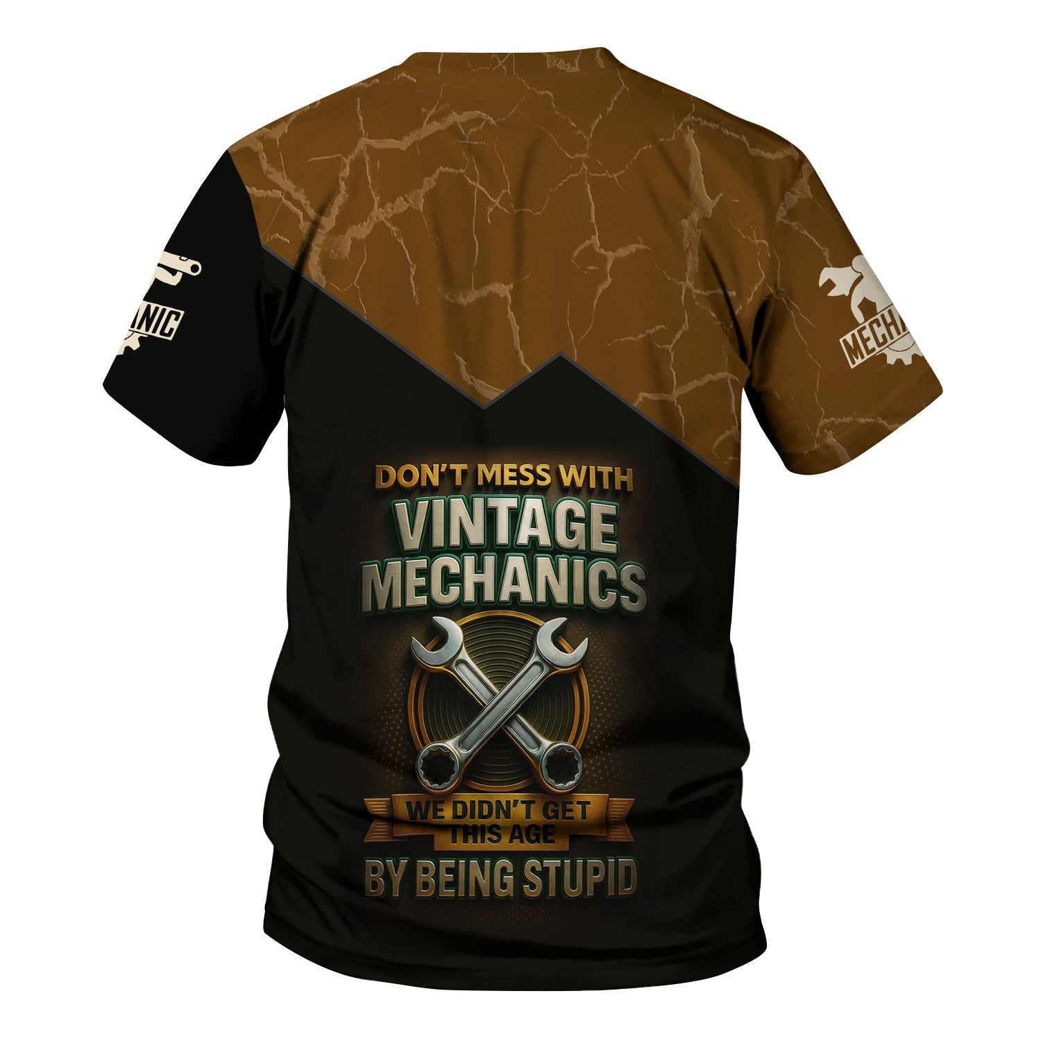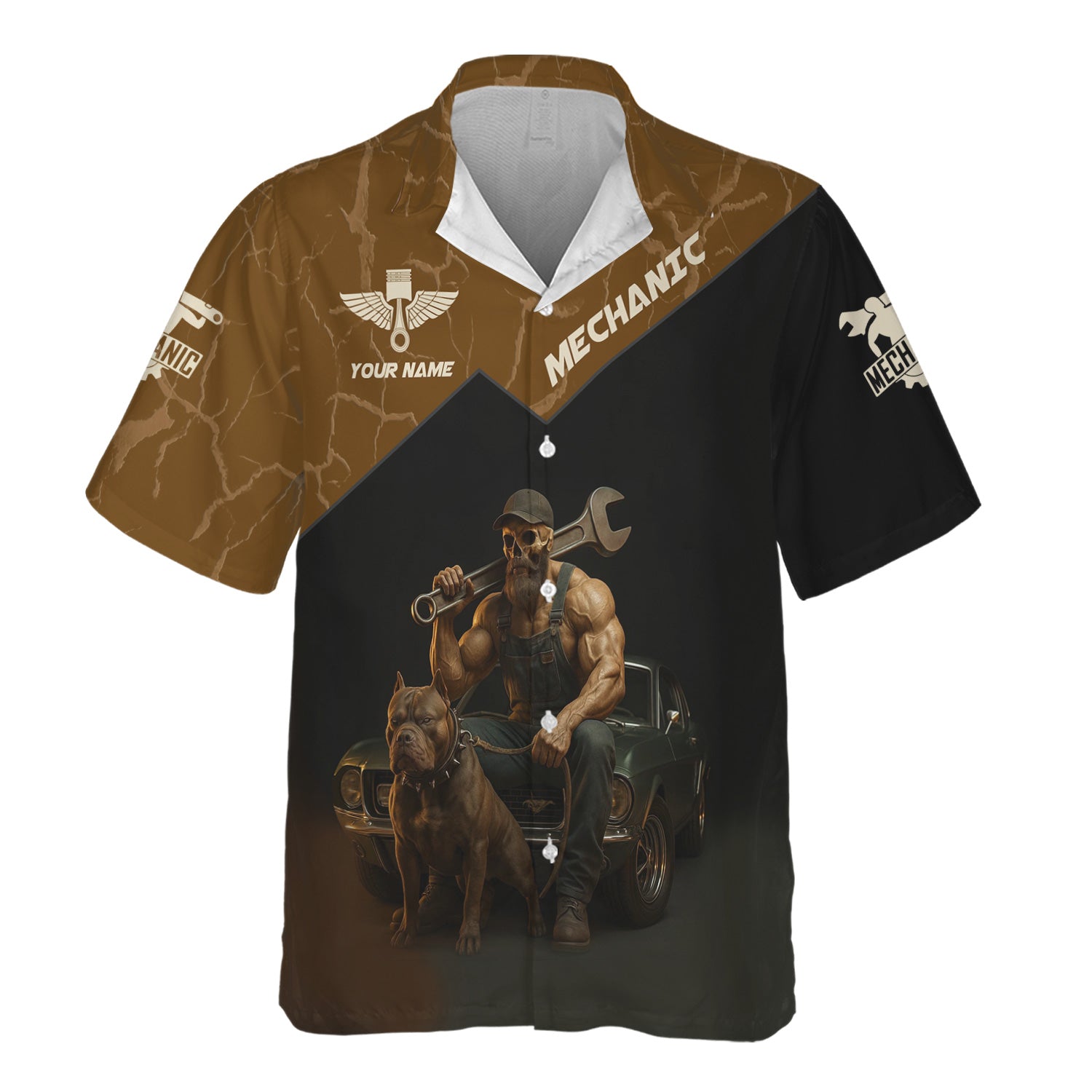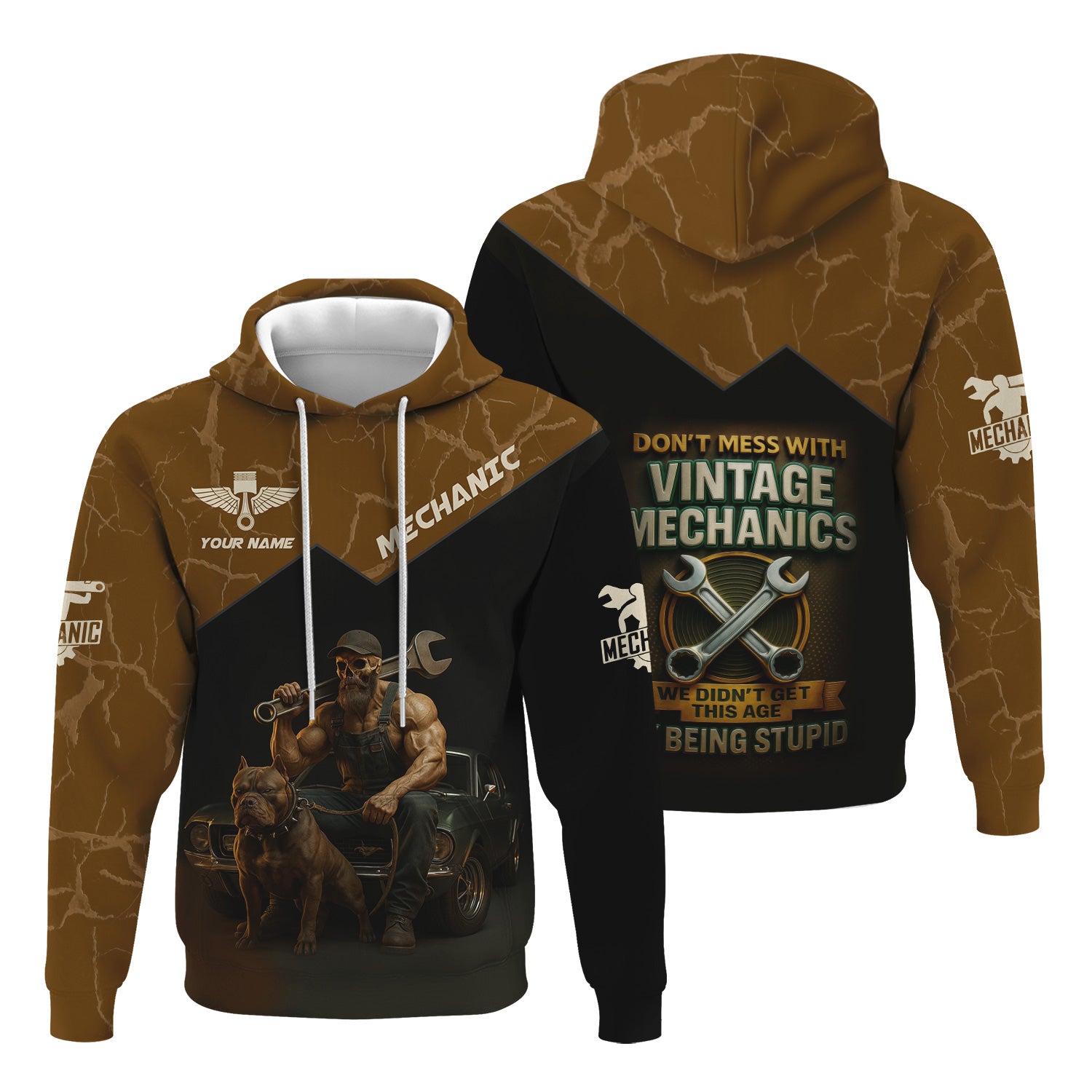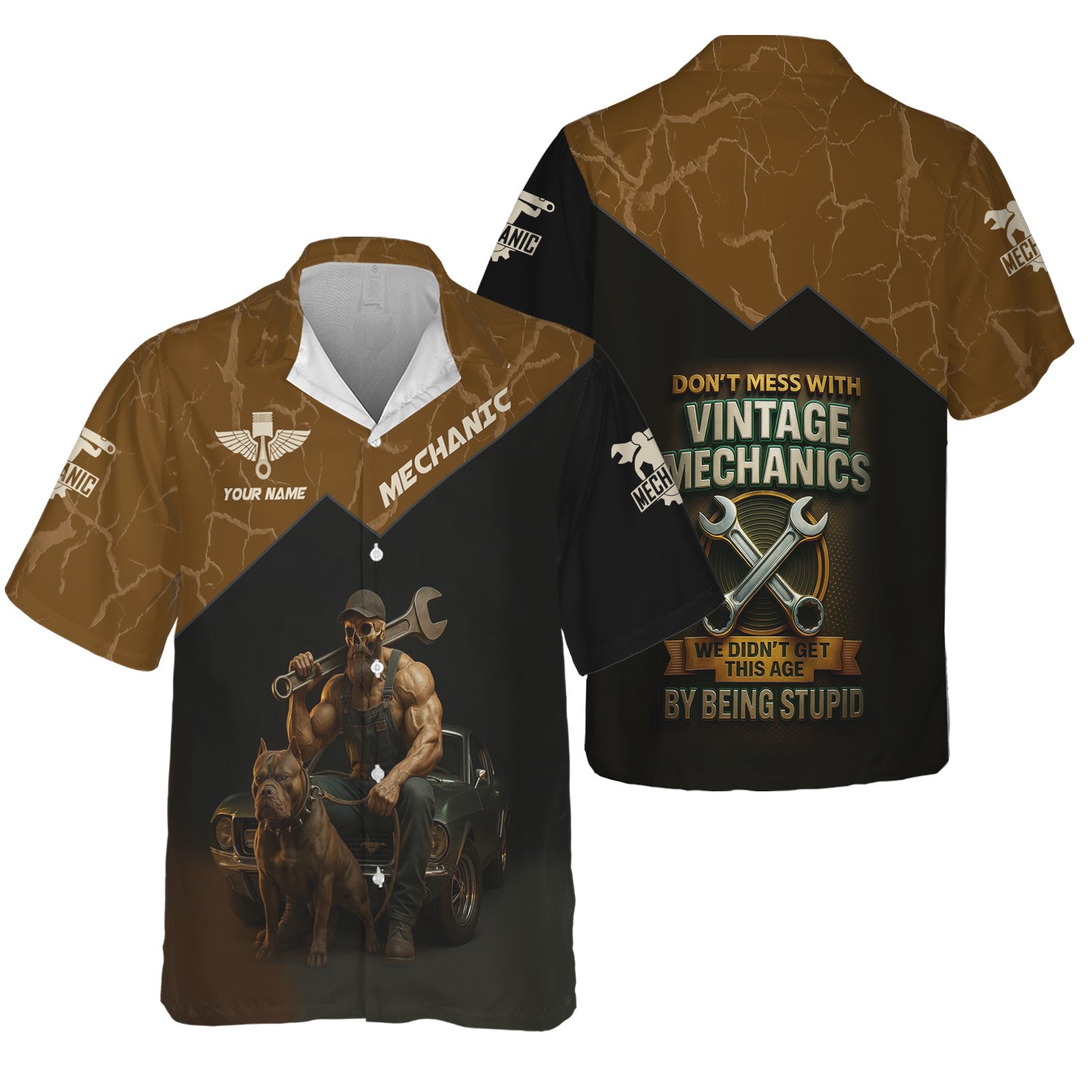 Personalized T-Shirt Don't Mess With Vintage Mechanics Skull with Dog and Classic Car Design Shirt For Mechanics
